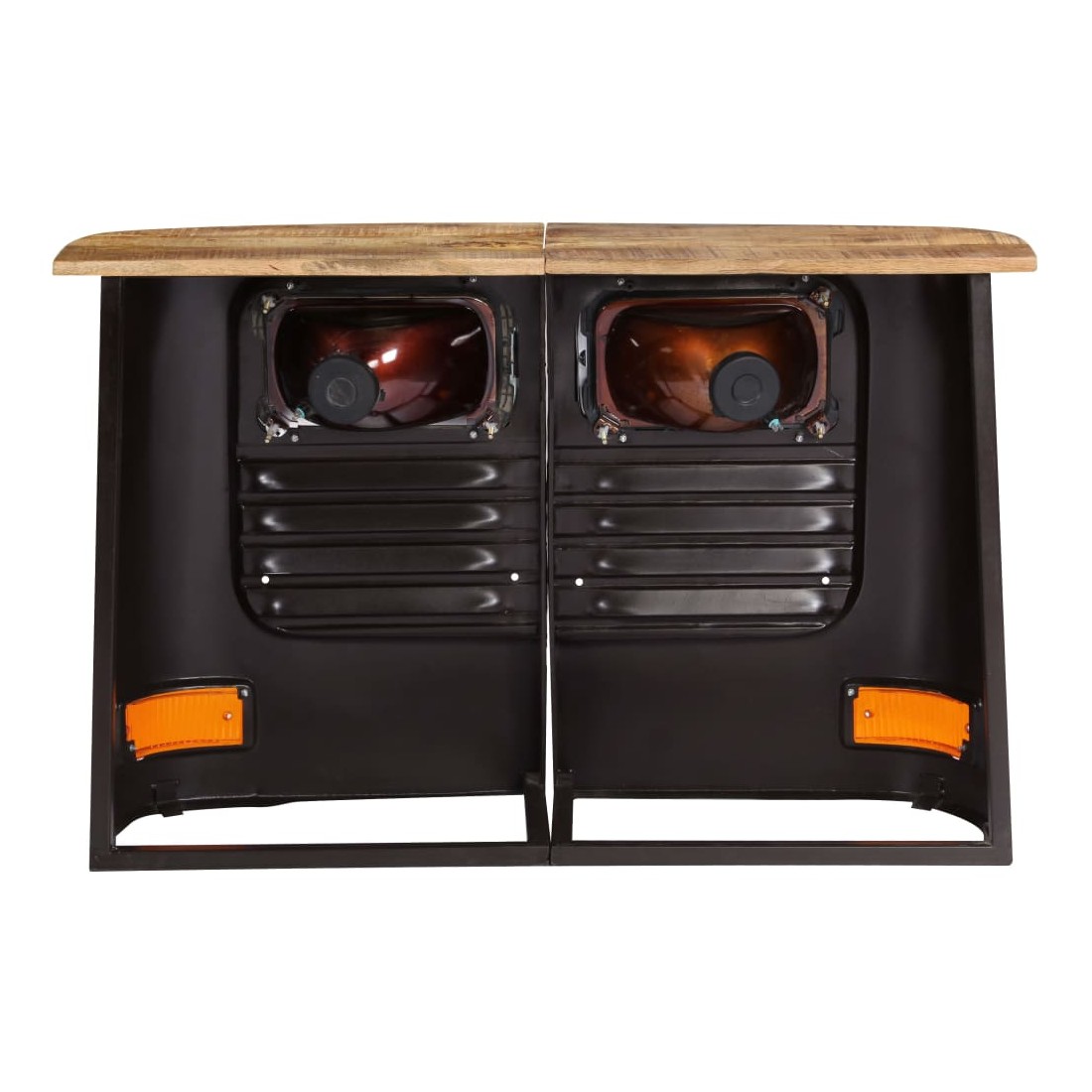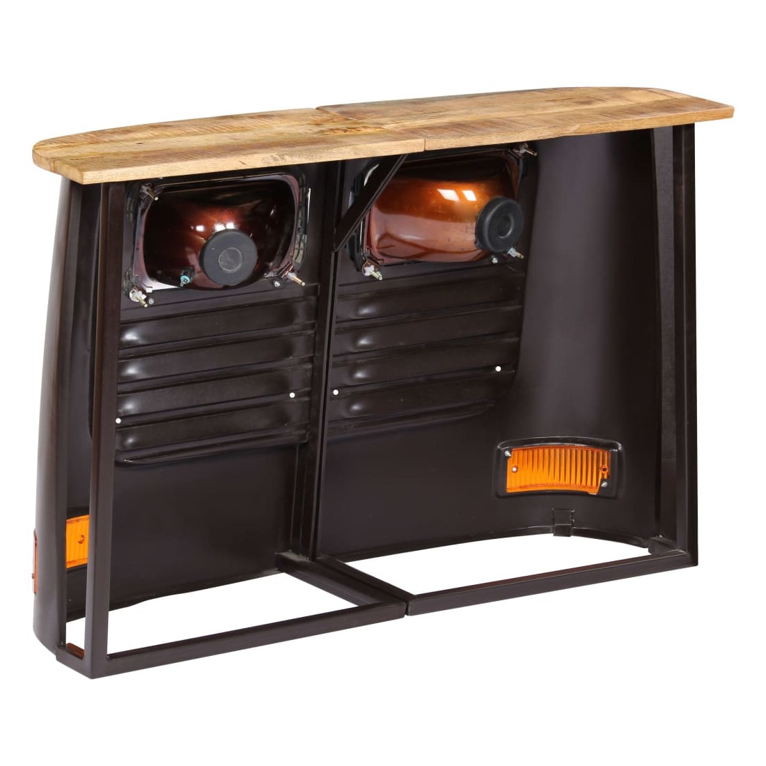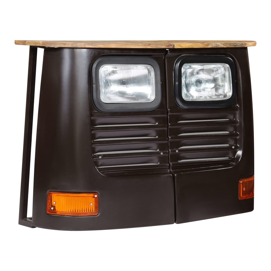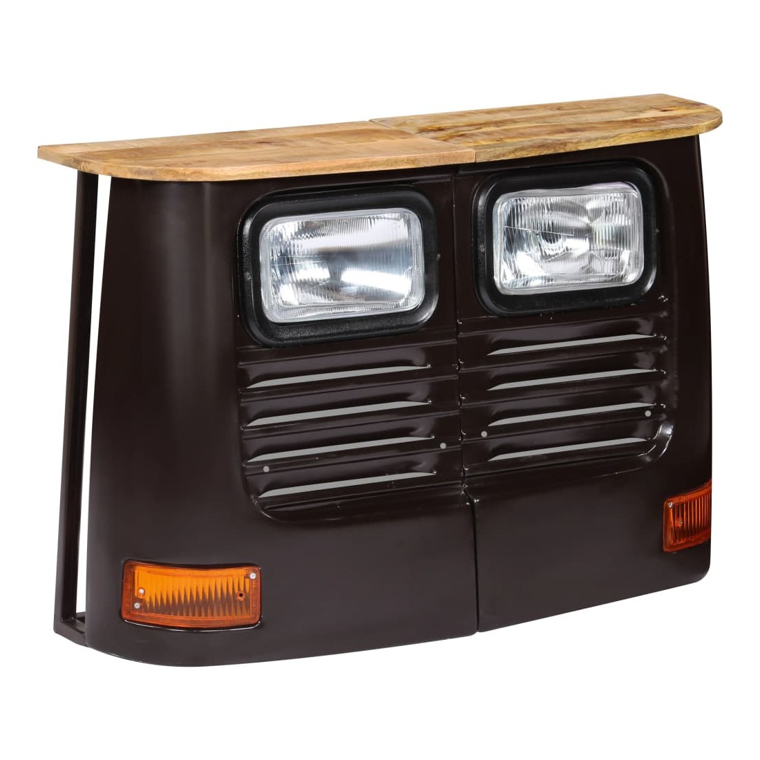 Ce buffet en forme de camion en bois dégage un style rustique et industriel et sera un excellent supplément à votre décoration intérieure. Avec un dessus de table en bois de manguier massif et un cadre en acier robuste, ce buffet est robuste et durable. La fabrication à l'aspect d'avant d'un camion authentique et en acier contribuent au charme vintage du buffet. Chaque étape du processus de fabrication est réalisée avec le plus grand soin, que ce soit le polissage, la peinture ou le laquage. Le buffet est facile à assembler. La livraison comprend 1 buffet composé de 2 parties. Remarque importante : la couleur et les grains de bois peuvent varier d'une pièce à l'autre, ce qui rend chaque article unique et légèrement différent l'un de l'autre. La livraison est aléatoire, garantissant l'exclusivité et l'individualité de votre produit.