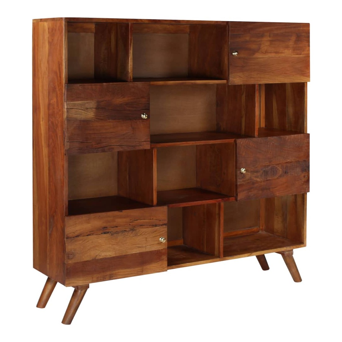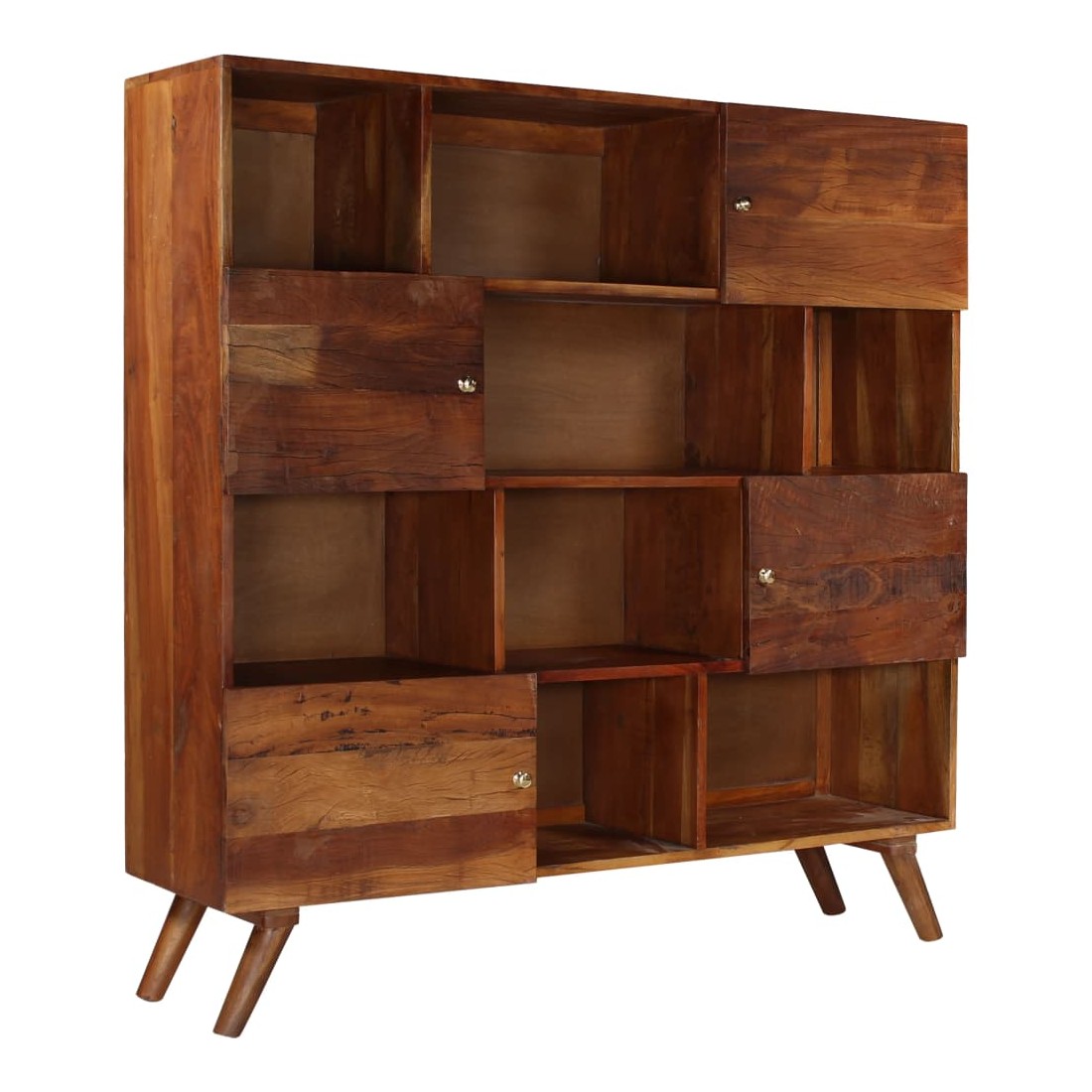 Le buffet en bois sera un excellent supplément décoratif à votre intérieur. Le meuble de télévision est fait de bois de récupération solide provenant des solives, des planchers et des poutres de soutènement de vieux bâtiments démolis et peut comprendre différents types de bois tels que la pinède, le teck, le hêtre, le chêne, le cèdre, le bois de manguier, d'acacia, etc. Cela signifie que le bois de récupération conserve les caractéristiques de ces différents types de bois. Le bois de récupération est déjà vieilli, érodé et séché, donc il ne rétrécit pas et se plie pas. Les signes d'usure et la structure de grain visible confèrent à chaque pièce sa propre histoire et son aspect unique. Le buffet offre suffisamment d'espace de rangement pour ranger vos divers objets de façon ordonnée. Le