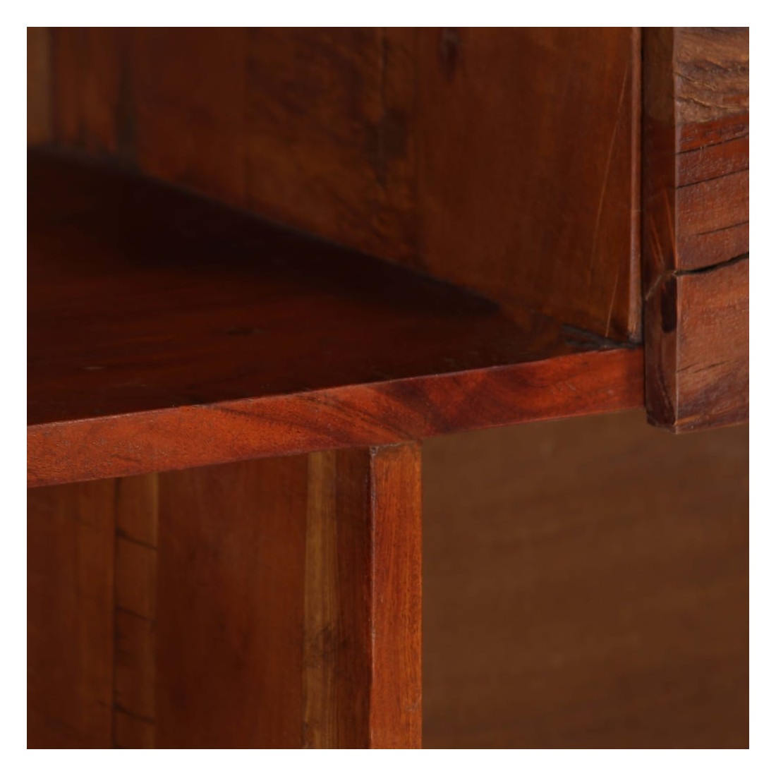 Le buffet en bois sera un excellent supplément décoratif à votre intérieur. Le meuble de télévision est fait de bois de récupération solide provenant des solives, des planchers et des poutres de soutènement de vieux bâtiments démolis et peut comprendre différents types de bois tels que la pinède, le teck, le hêtre, le chêne, le cèdre, le bois de manguier, d'acacia, etc. Cela signifie que le bois de récupération conserve les caractéristiques de ces différents types de bois. Le bois de récupération est déjà vieilli, érodé et séché, donc il ne rétrécit pas et se plie pas. Les signes d'usure et la structure de grain visible confèrent à chaque pièce sa propre histoire et son aspect unique. Le buffet offre suffisamment d'espace de rangement pour ranger vos divers objets de façon ordonnée. Le travail artisanal s'ajoute au style vintage de l'armoire. Chaque étape du processus de fabrication est réalisée avec le plus grand soin, que ce soit le polissage, la peinture et le laquage. Il est facile à assembler. Remarque importante : les couleurs et les grains de bois peuvent varier d'une pièce à l'autre, ce qui rend chaque pièce unique et légèrement différente l'une de l'autre. La livraison est aléatoire, ce qui garantit l'exclusivité et l'individualité de votre produit.