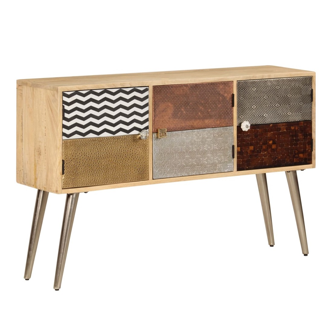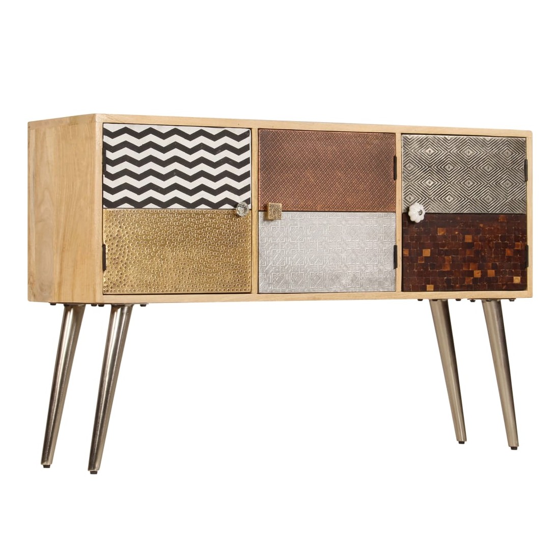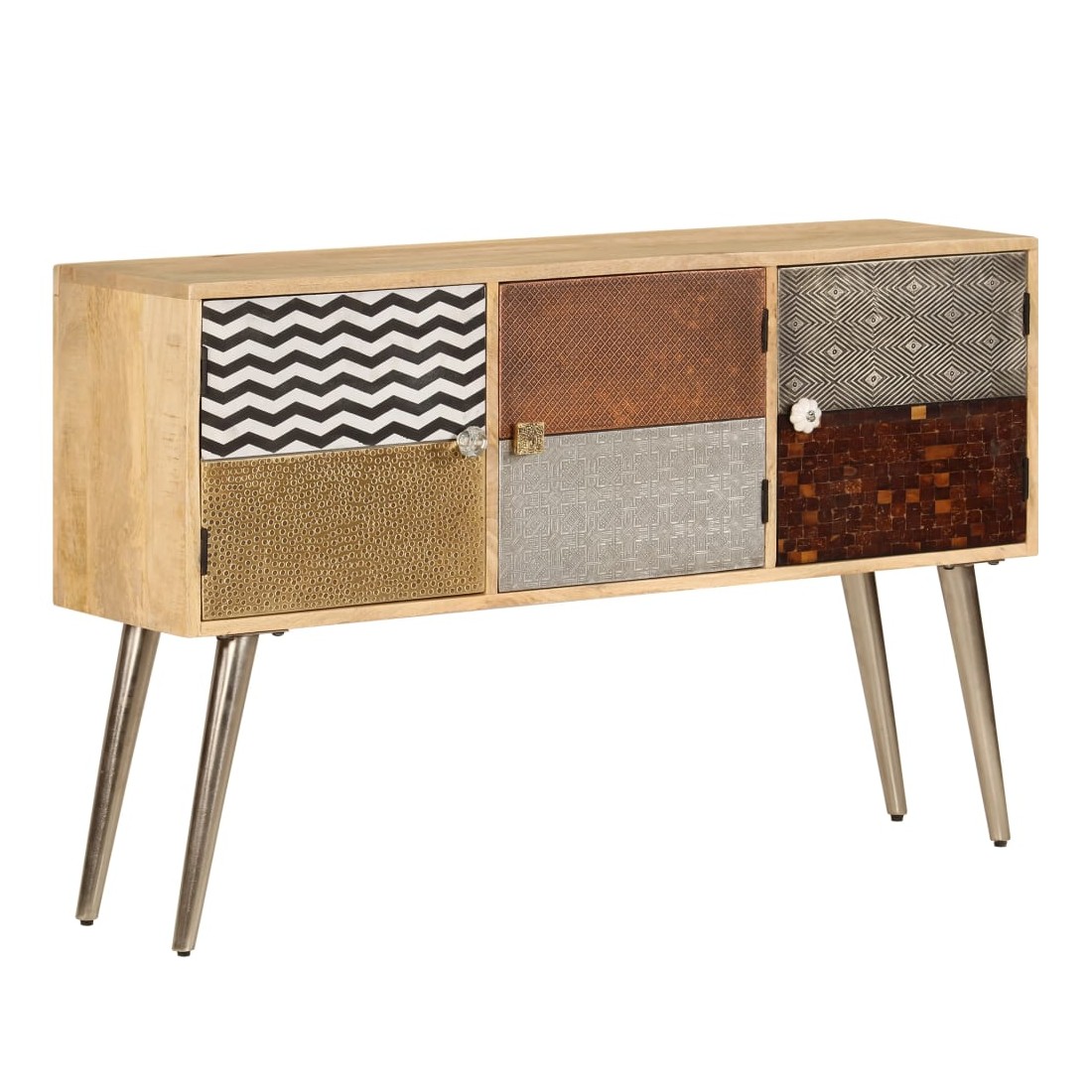 Le buffet en bois sera un ajout intemporel à votre décoration intérieure. Le buffet est en bois de manguier massif, très stable et durable. Son dessus robuste est idéal pour placer des objets décoratifs tels que des vases ou des plantes en pot. L'armoire offre suffisamment d'espace de rangement pour ranger vos divers objets de façon ordonnée. Ses motifs décoratifs uniques rehaussent le charme moderne du buffet. Le produit est facile à assembler. Remarque importante : les couleurs et les grains de bois peuvent varier d'une pièce à l'autre, ce qui rend chaque pièce unique et légèrement différente l'une de l'autre. La livraison est aléatoire, ce qui garantit l'exclusivité et l'individualité de votre produit.