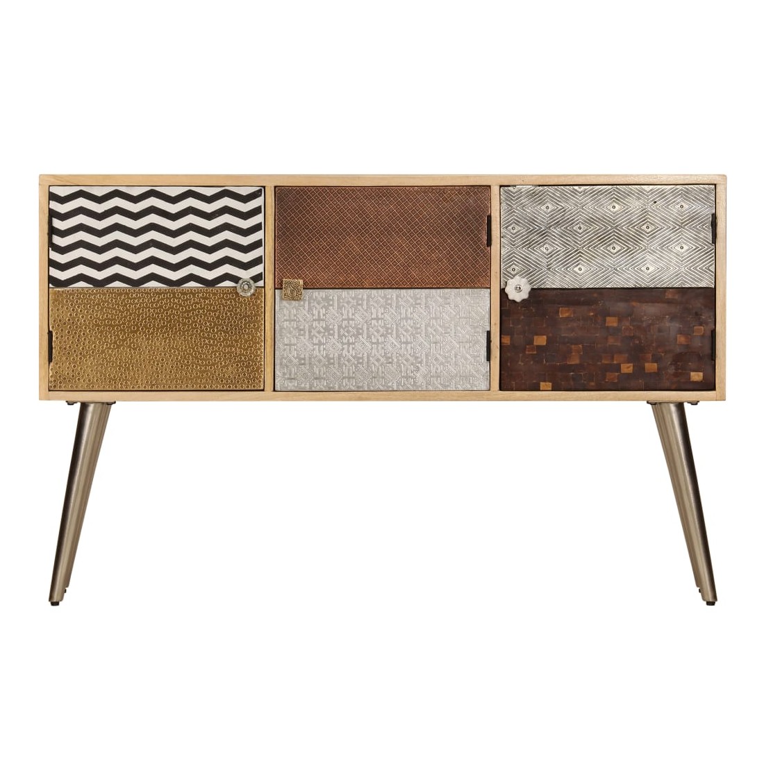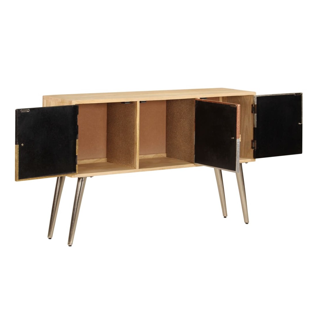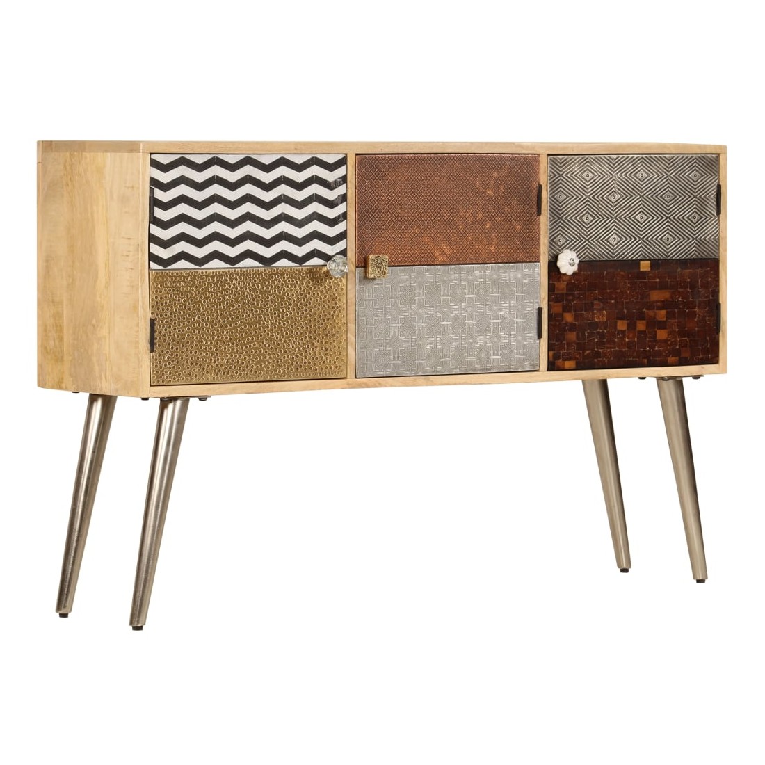 Le buffet en bois sera un ajout intemporel à votre décoration intérieure. Le buffet est en bois de manguier massif, très stable et durable. Son dessus robuste est idéal pour placer des objets décoratifs tels que des vases ou des plantes en pot. L'armoire offre suffisamment d'espace de rangement pour ranger vos divers objets de façon ordonnée. Ses motifs décoratifs uniques rehaussent le charme moderne du buffet. Le produit est facile à assembler. Remarque importante : les couleurs et les grains de bois peuvent varier d'une pièce à l'autre, ce qui rend chaque pièce unique et légèrement différente l'une de l'autre. La livraison est aléatoire, ce qui garantit l'exclusivité et l'individualité de votre produit.