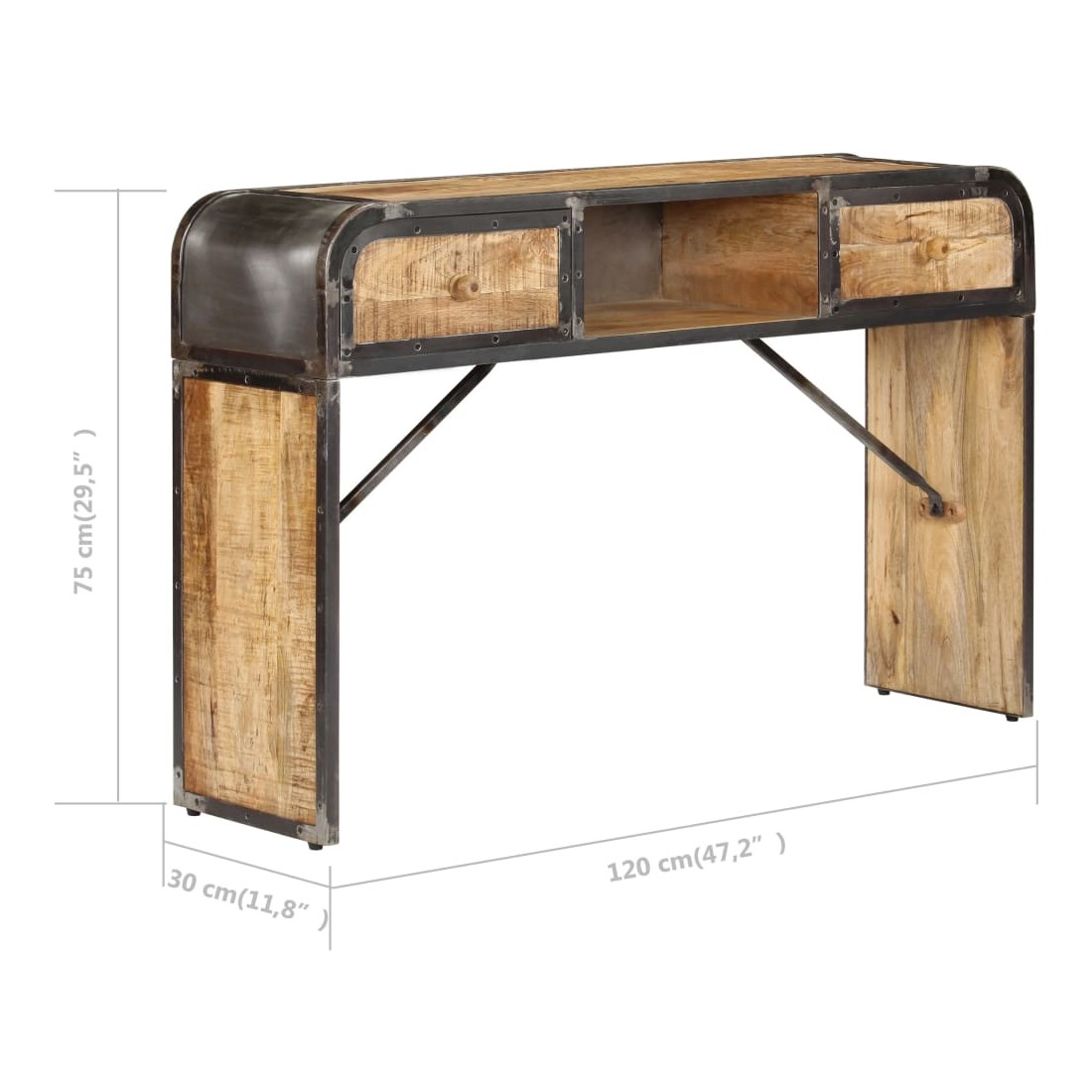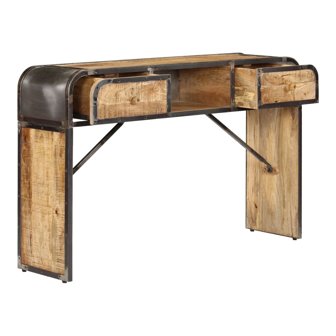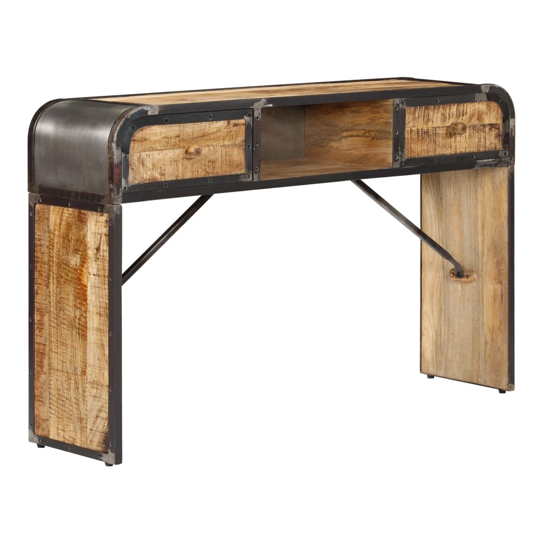 Ce buffet de style antique, fait de bois massif de manguier, dégage un charme vintage et sera un supplément intemporel à votre intérieur. Les variations de grain et de couleur confèrent à ce buffet un caractère unique. Robuste et stable : le bois de manguier massif est un bois dur tropical solide qui permet de fabriquer des meubles robustes. Ses belles veines de bois font que chaque pièce de meuble soit légèrement différente l'une de l'autre. Grand espace de rangement : l'armoire de rangement dispose de 2 tiroirs et d'un compartiment, offrant suffisamment d'espace pour ranger vos livres et divers autres articles. Fonction d'exposition : la partie supérieure robuste de l'armoire d'entrée est idéale pour exposer des objets décoratifs, des cadres photo ou des plantes en pot. Remarque : Le