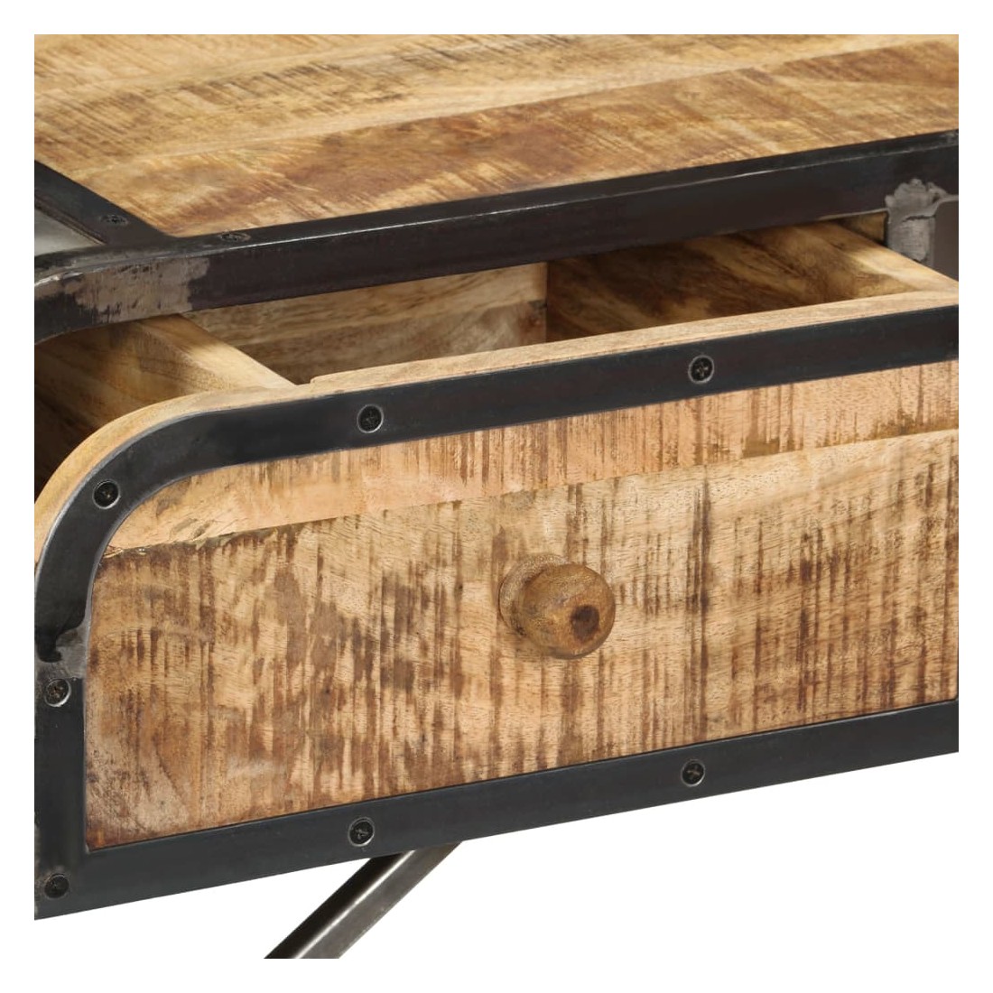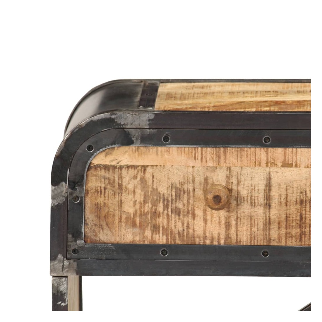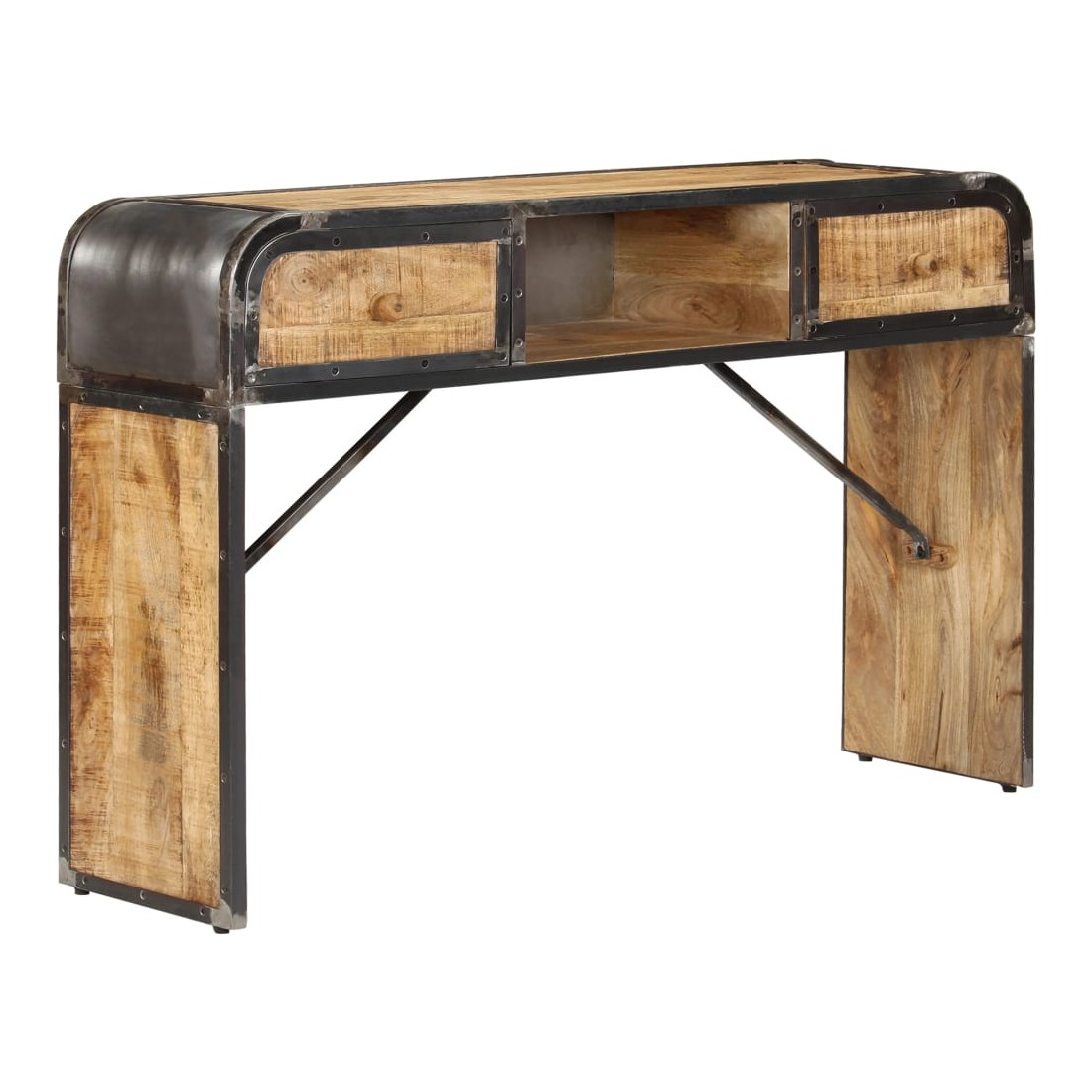 Ce buffet de style antique, fait de bois massif de manguier, dégage un charme vintage et sera un supplément intemporel à votre intérieur. Les variations de grain et de couleur confèrent à ce buffet un caractère unique. Robuste et stable : le bois de manguier massif est un bois dur tropical solide qui permet de fabriquer des meubles robustes. Ses belles veines de bois font que chaque pièce de meuble soit légèrement différente l'une de l'autre. Grand espace de rangement : l'armoire de rangement dispose de 2 tiroirs et d'un compartiment, offrant suffisamment d'espace pour ranger vos livres et divers autres articles. Fonction d'exposition : la partie supérieure robuste de l'armoire d'entrée est idéale pour exposer des objets décoratifs, des cadres photo ou des plantes en pot. Remarque : Le
