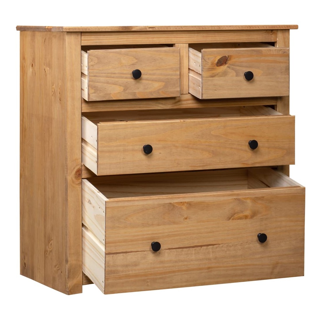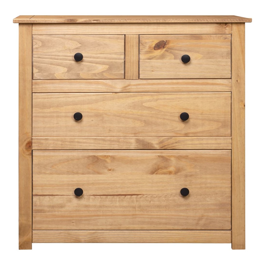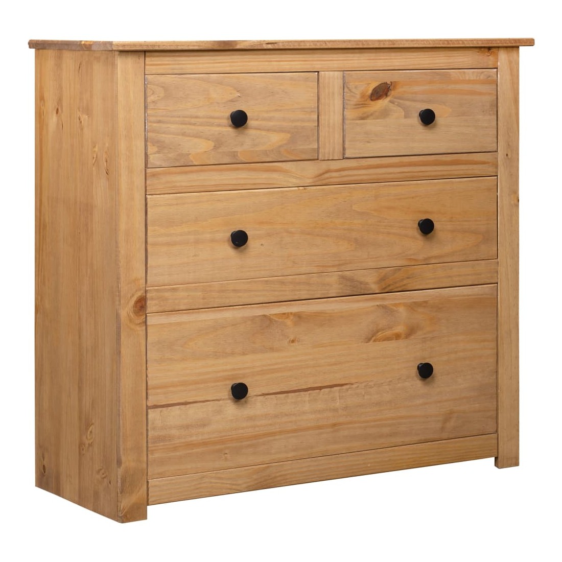 Doté d'un design rustique et tendance, ce buffet en bois solide sera un supplément décoratif et pratique à votre espace de vie. Conçu avec 4 tiroirs, le buffet garde vos magazines, livres, DVD et appareils multimédias bien organisés et à portée de main. Son dessus robuste est idéal pour placer des objets décoratifs tels que des vases ou des plantes en pot. L'armoire est fabriquée en bois de pin massif. Chaque étape du processus est réalisée avec un soin exceptionnel, qu'il s'agisse du polissage, de la peinture ou du laquage. L’artisanat exquis et les grains de bois esthétiquement attrayants rendent chaque pièce de meubles unique et légèrement différente l'une de l'autre. Remarque importante : les couleurs et les grains peuvent varier d'une pièce à l'autre, rendant chacune de nos armoires unique. La livraison est aléatoire, garantissant l'exclusivité et l'individualité de votre produit.