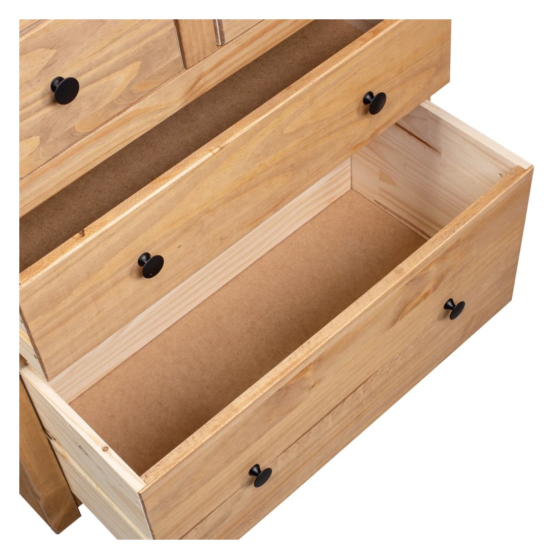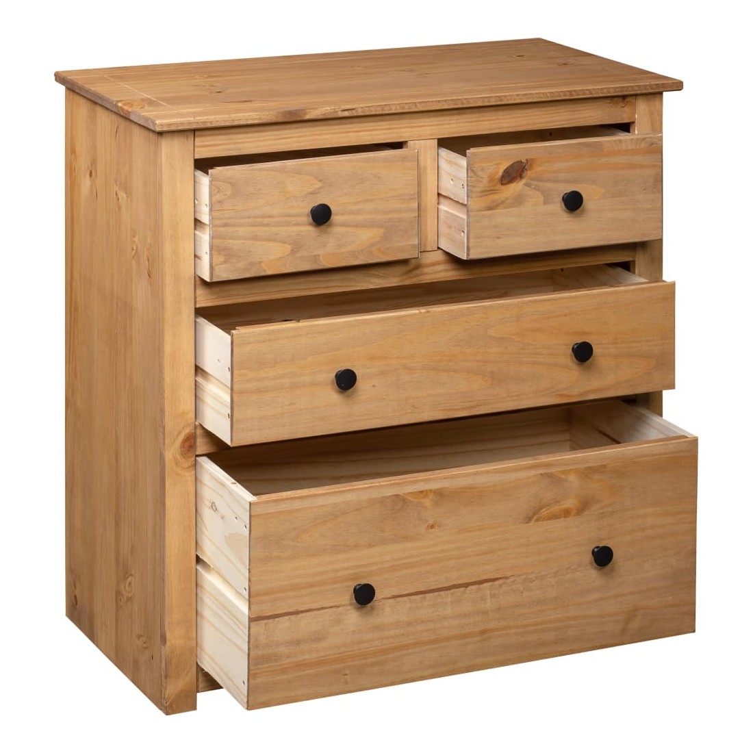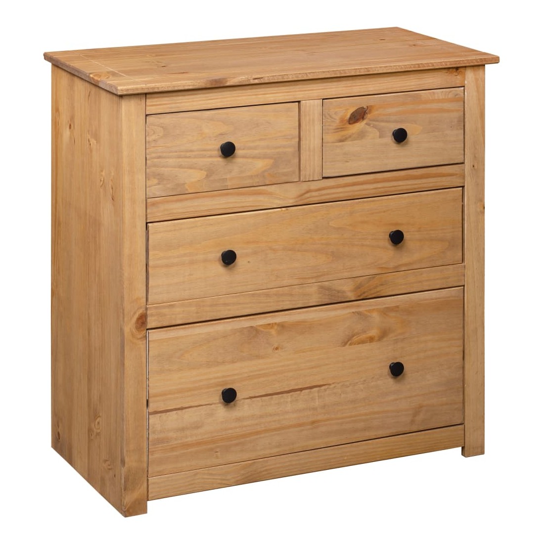 Doté d'un design rustique et tendance, ce buffet en bois solide sera un supplément décoratif et pratique à votre espace de vie. Conçu avec 4 tiroirs, le buffet garde vos magazines, livres, DVD et appareils multimédias bien organisés et à portée de main. Son dessus robuste est idéal pour placer des objets décoratifs tels que des vases ou des plantes en pot. L'armoire est fabriquée en bois de pin massif. Chaque étape du processus est réalisée avec un soin exceptionnel, qu'il s'agisse du polissage, de la peinture ou du laquage. L’artisanat exquis et les grains de bois esthétiquement attrayants rendent chaque pièce de meubles unique et légèrement différente l'une de l'autre. Remarque importante : les couleurs et les grains peuvent varier d'une pièce à l'autre, rendant chacune de nos armoires unique. La livraison est aléatoire, garantissant l'exclusivité et l'individualité de votre produit.