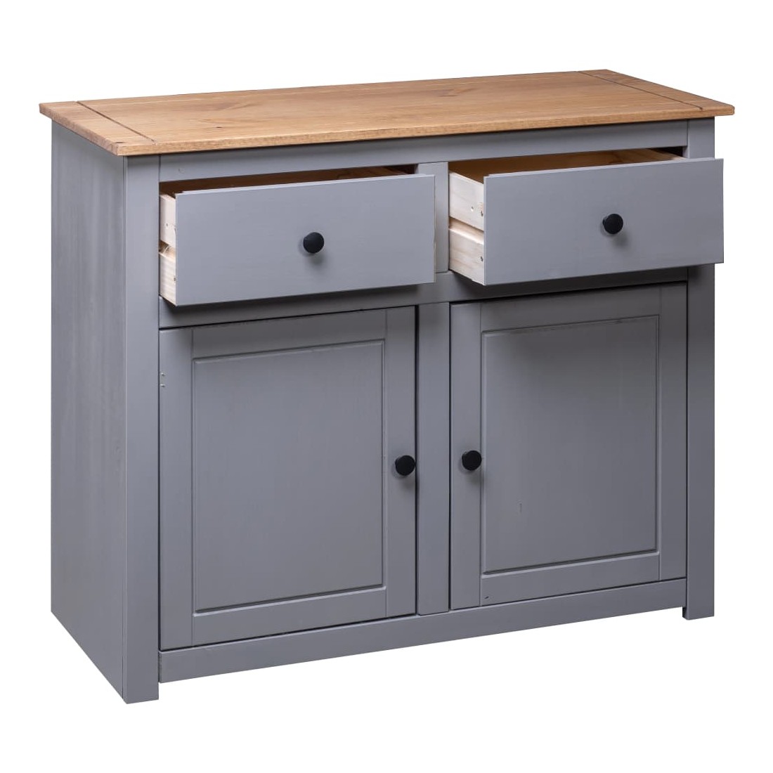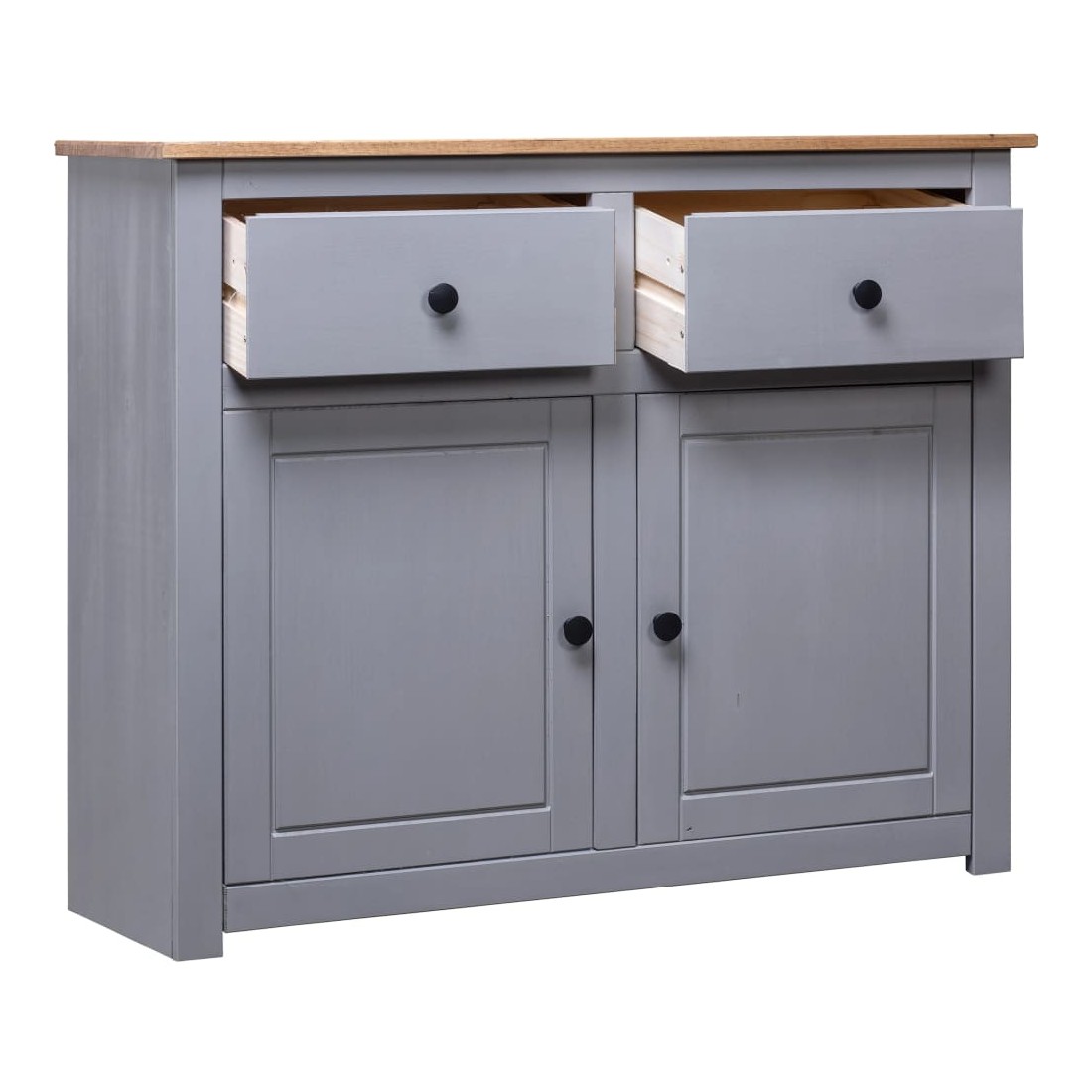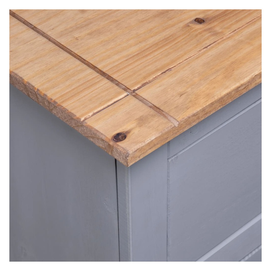 Doté d'un design rustique et tendance, ce buffet en bois solide sera un supplément décoratif et pratique à votre espace de vie. Bois de pin massif : l'armoire est fabriquée en bois de pin massif. Le bois de pin solide est un beau matériau naturel. Le bois de pin a un grain droit et les nœuds donnent au matériau son aspect caractéristique et rustique.Grand espace de rangement : conçu avec 4 tiroirs et 2 portes, le buffet garde vos magazines, livres, DVD et appareils multimédias bien organisés et à portée de main.Dessus robuste : son dessus robuste est idéal pour placer des objets décoratifs tels que des vases ou des plantes en pot. Bon à savoir :Chaque article est unique, avec des variations de couleurs et de grains. La livraison est aléatoire, ce qui garantit l'exclusivité et l'individualité de votre produit.