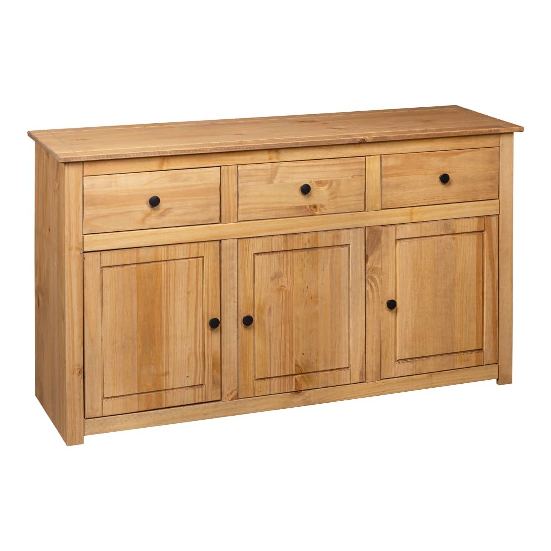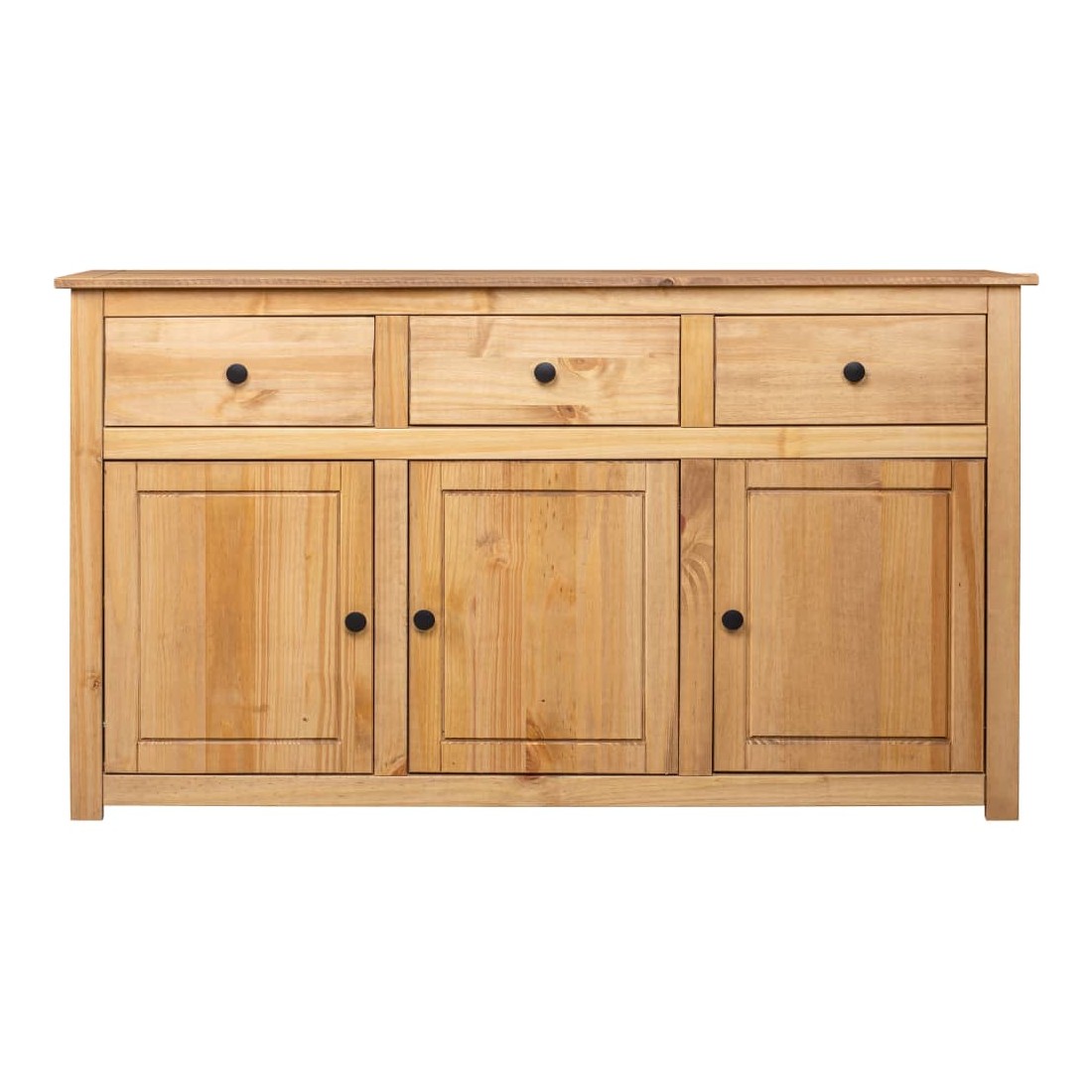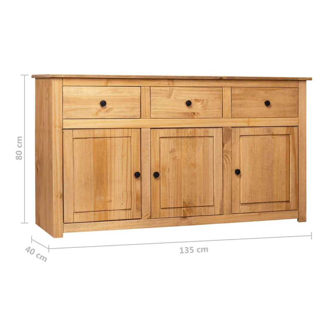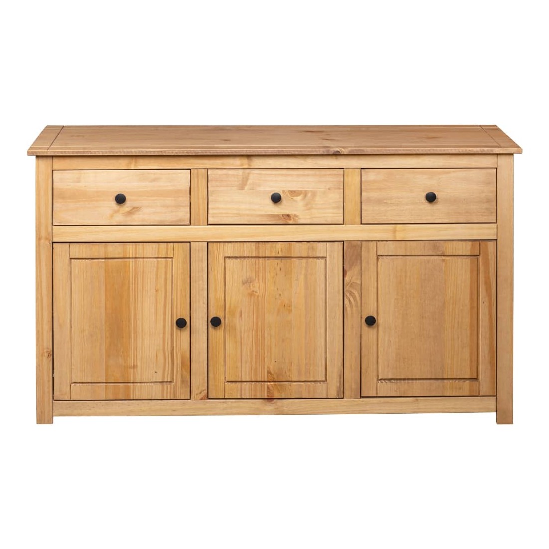 Introduisez un air d’élégance et de commodité dans votre intérieur avec notre buffet en bois massif ! Fabriquée en bois de pin massif, cette armoire à tiroirs est extrêmement durable et robuste. L'armoire latérale offre un grand espace de rangement avec 3 tiroirs et 3 compartiments. De plus, le dessus robuste est parfait pour exposer des objets décoratifs tels que des cadres photo, des plantes en pot, etc. Elle est facile à essuyer avec un chiffon sec. Le coffre de rangement est facile à assembler.