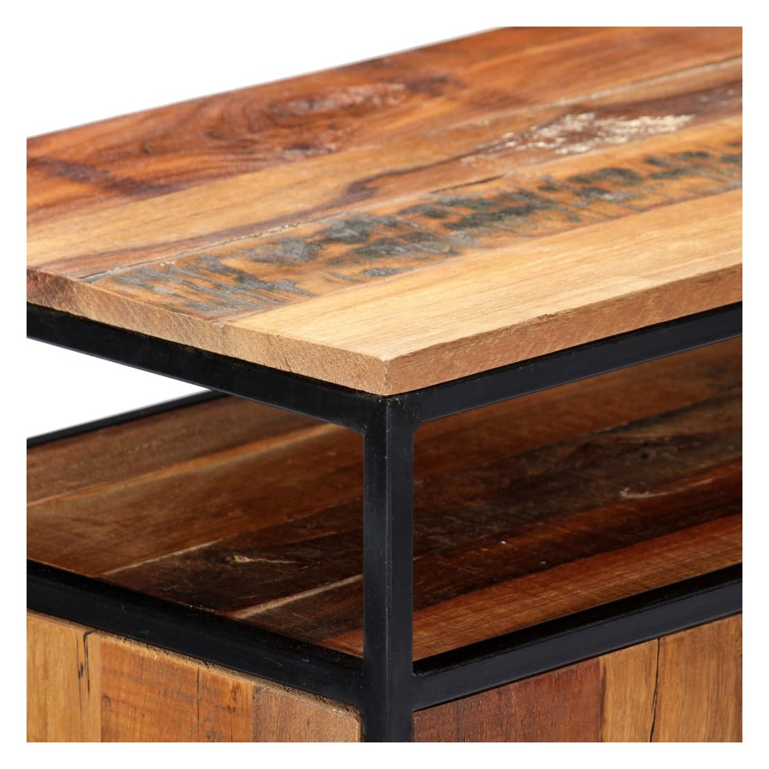 • Matériau : bois de récupération massif + cadre en acier enduit de poudre + MDF