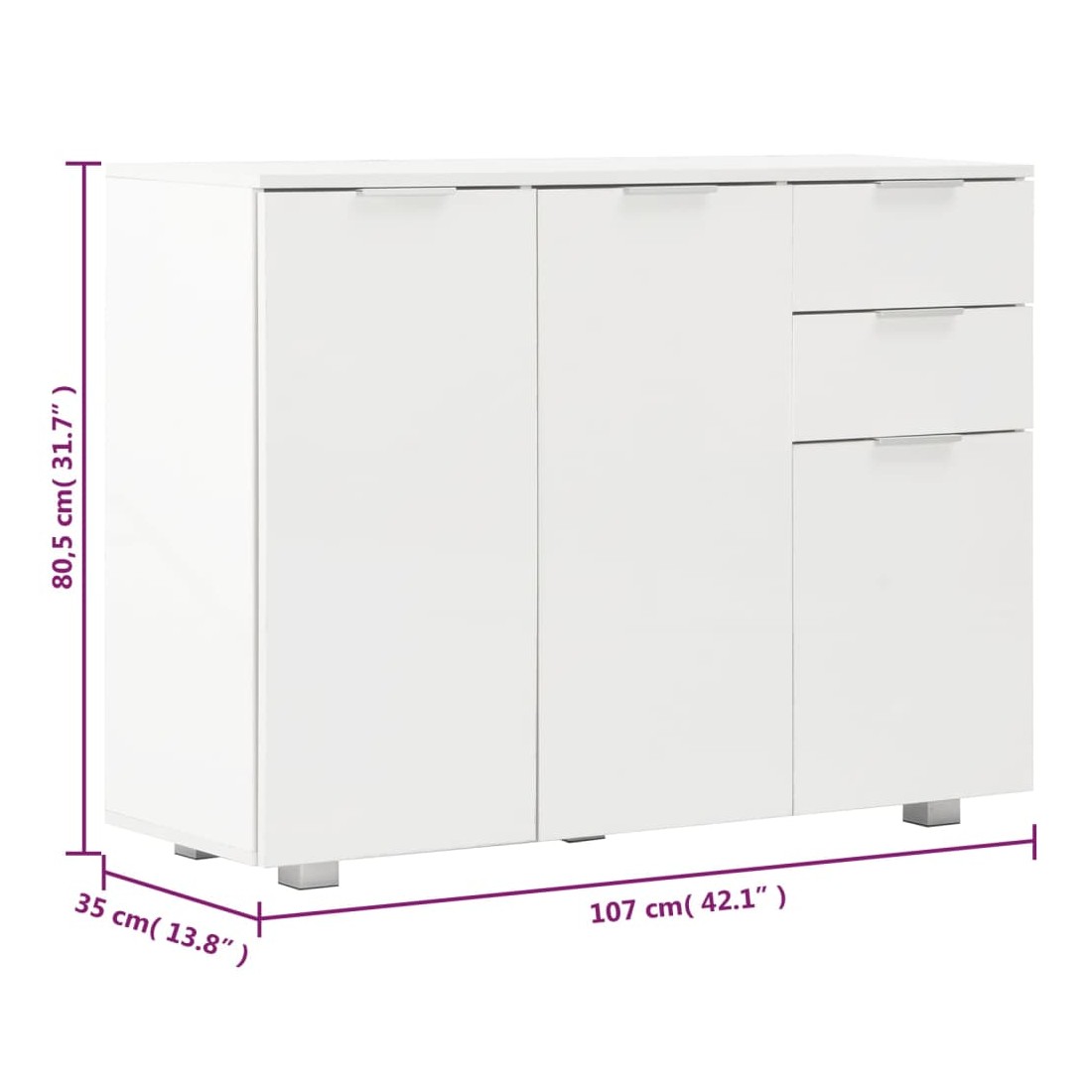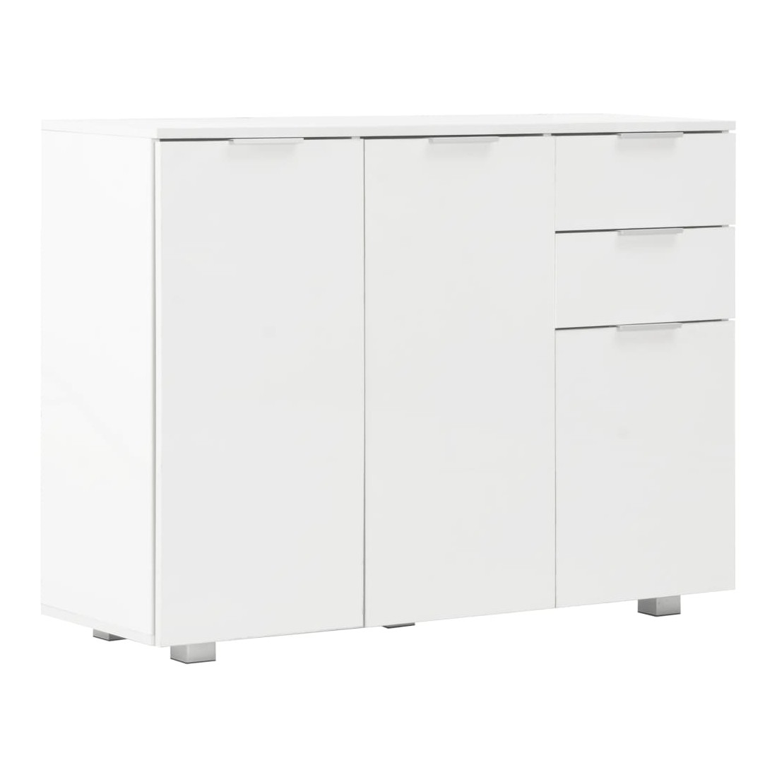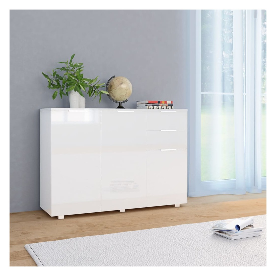 Gardez tout bien rangé dans votre salon avec notre élégant buffet ! Ce buffet pratique répondra à vos diverses exigences et sera un complément idéal dans votre chambre. Fabriqué en bois d'ingénierie avec une finition blanche brillante, le meuble à tiroirs dégage une apparence raffinée et est extrêmement stable et durable. De plus, équipé de 2 tiroirs et de 3 portes, le buffet offre un grand espace de rangement pour vos divers objets, rendant votre pièce propre et bien rangée. Ce meuble de rangement très brillant est facile à nettoyer. Améliorez votre décoration intérieure avec notre élégant buffet !
