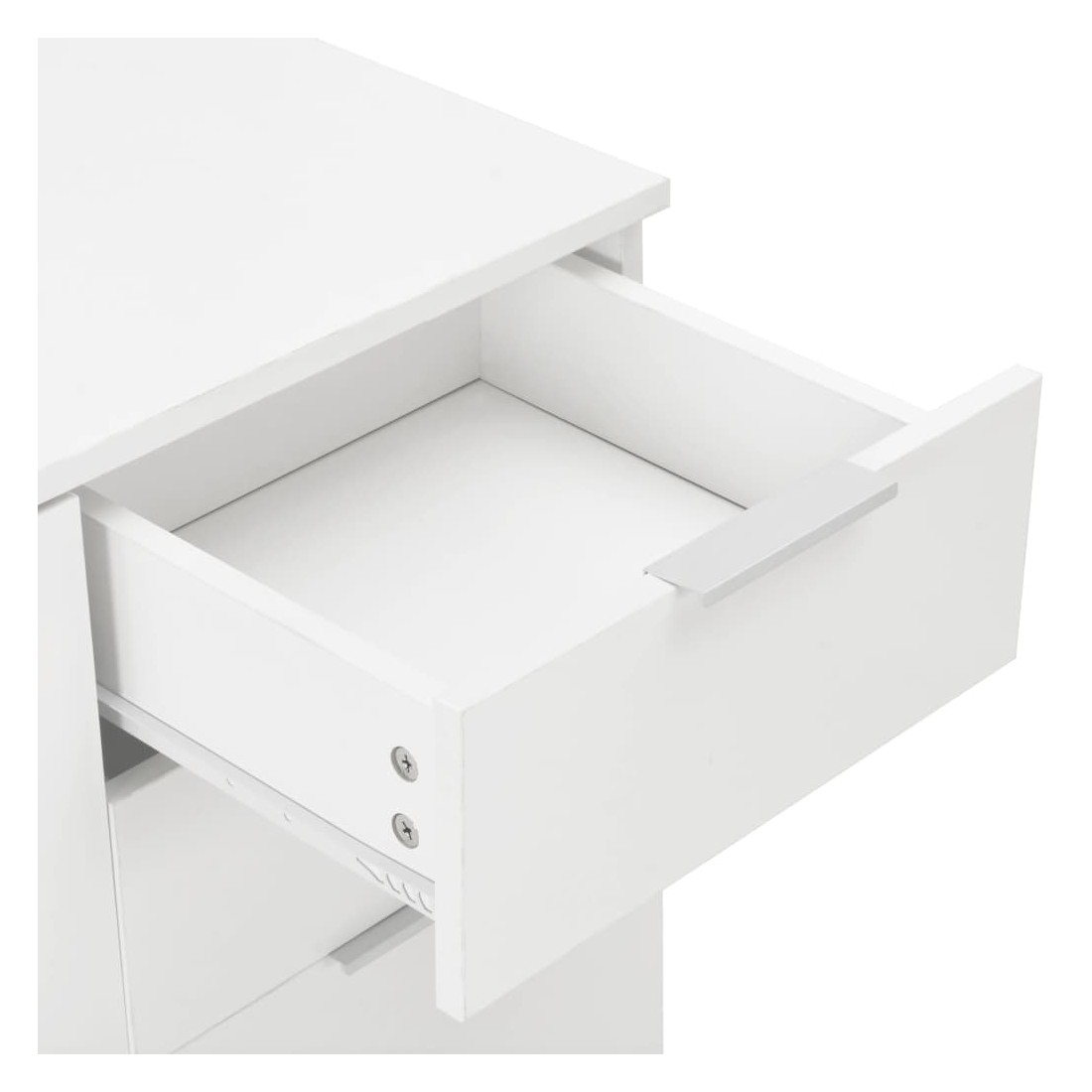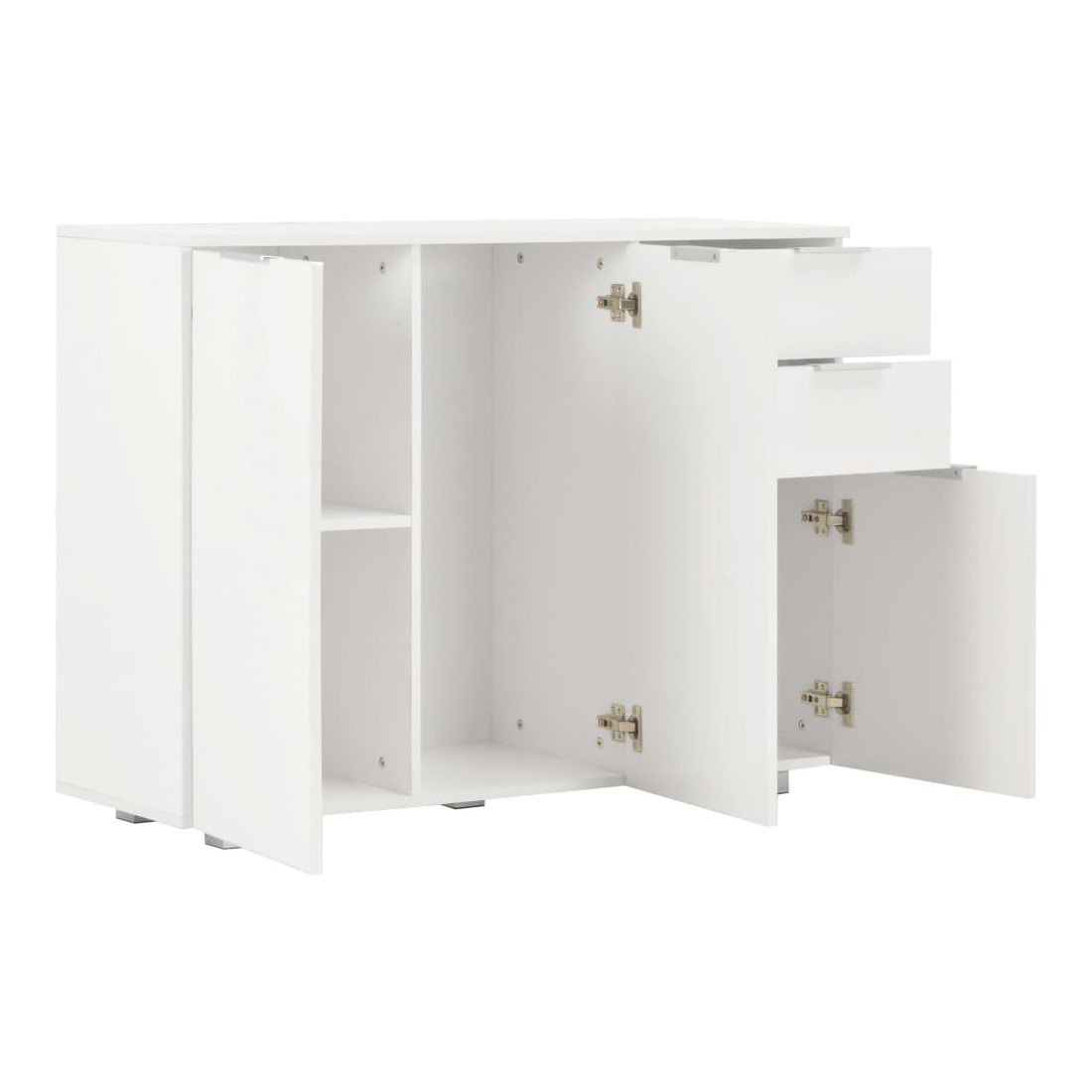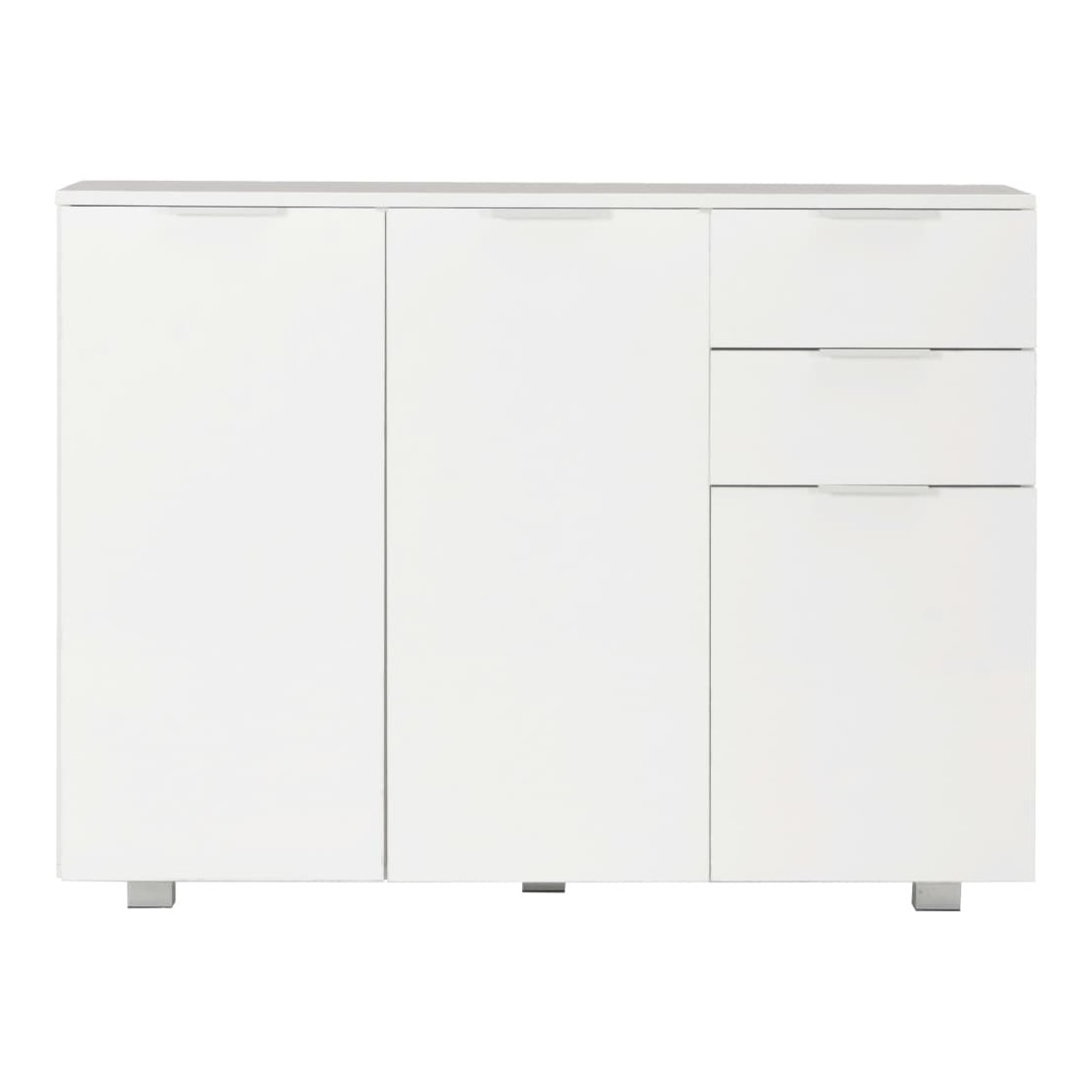 Gardez tout bien rangé dans votre salon avec notre élégant buffet ! Ce buffet pratique répondra à vos diverses exigences et sera un complément idéal dans votre chambre. Fabriqué en bois d'ingénierie avec une finition blanche brillante, le meuble à tiroirs dégage une apparence raffinée et est extrêmement stable et durable. De plus, équipé de 2 tiroirs et de 3 portes, le buffet offre un grand espace de rangement pour vos divers objets, rendant votre pièce propre et bien rangée. Ce meuble de rangement très brillant est facile à nettoyer. Améliorez votre décoration intérieure avec notre élégant buffet !