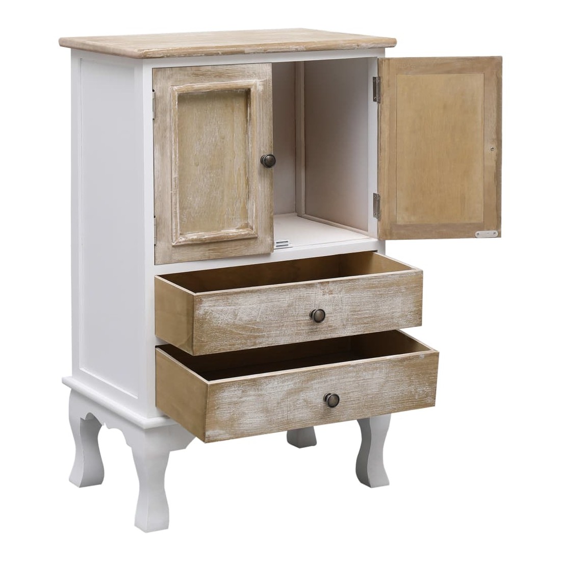 Avec son utilité élégante et pratique, cette armoire à tiroirs en bois deviendra le complément idéal dans votre maison existante ! Faite de paulownia de qualité, de bois de peuplier et de panneaux de MDF, cette armoire est extrêmement robuste et durable. Elle se compose de 2 tiroirs et de 2 portes pour fournir un grand espace de rangement pour vos divers objets, tels que des clés, des bloc-notes, des livres, des magazines ou d’autres bibelots et d'objets de première nécessité. Améliorez votre décoration intérieure avec notre armoire à tiroirs moderne !