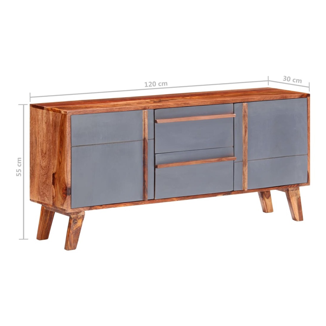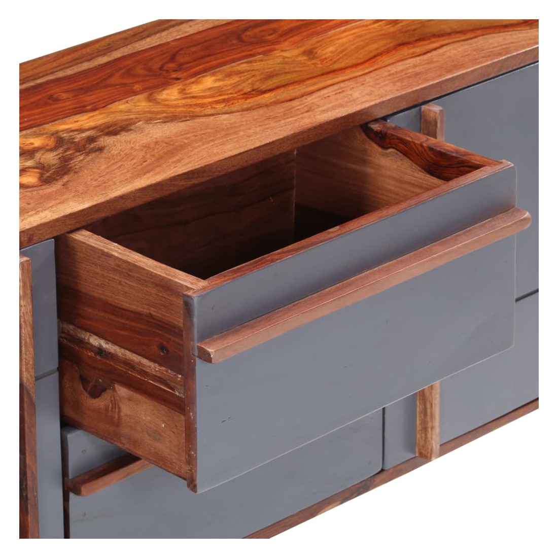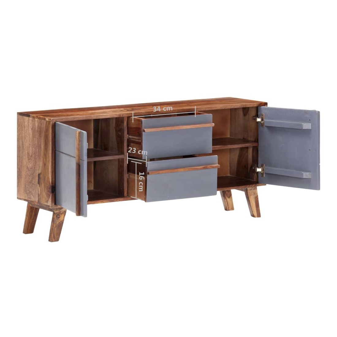 Ce buffet en bois massif au design pratique est parfait pour apporter une présence classique à votre espace de vie. Cette armoire latérale est en bois massif. Chaque étape du processus est réalisée avec le plus grand soin, que ce soit le polissage, la peinture ou le laquage. L’artisanat exquis et les belles veines de bois rendent chaque pièce de ce buffet en bois unique et légèrement différente l'une de l'autre. Son dessus large et robuste est idéal pour exposer des objets décoratifs, des cadres photo ou des plantes en pot. De plus, les 2 tiroirs et 4 étagères avec 2 portes offrent amplement d’espace pour les magazines, les livres ou garder toutes sortes de petits articles organisés et à portée de main. Remarque importante : les couleurs varient d'une pièce à l'autre, rendant chaque pièce unique. La livraison est aléatoire, garantissant l'exclusivité et l'individualité de votre produit.
