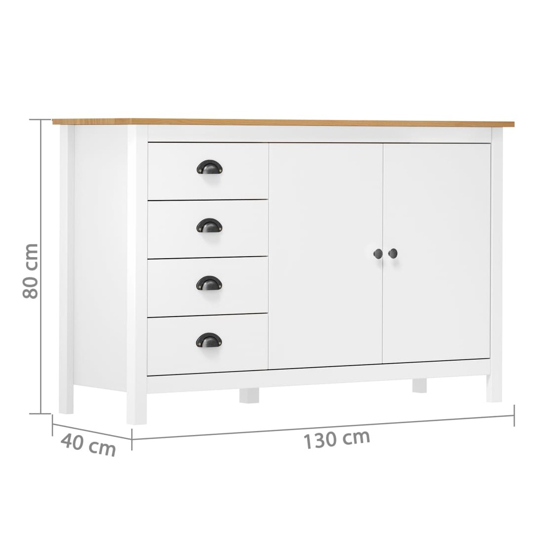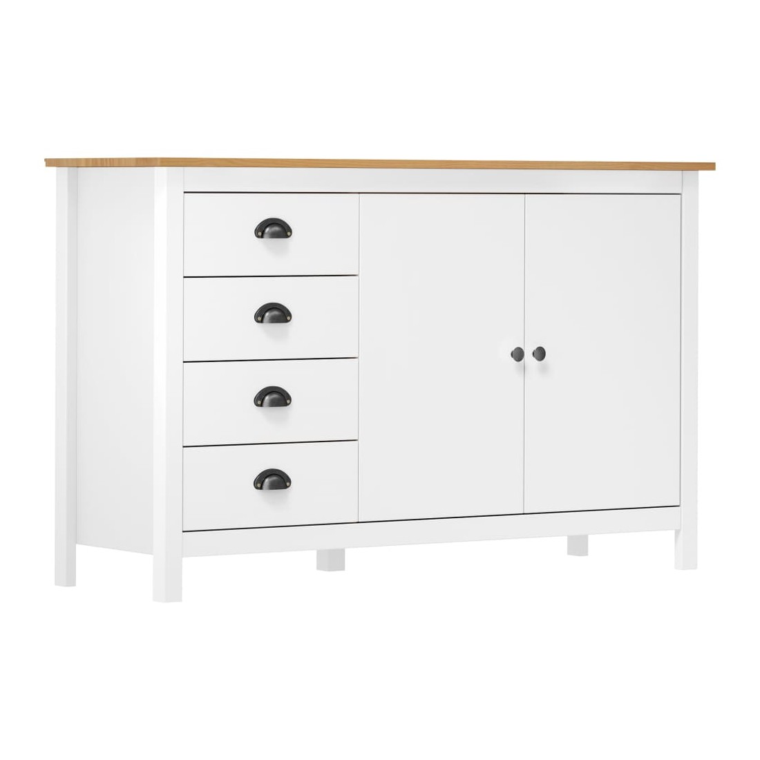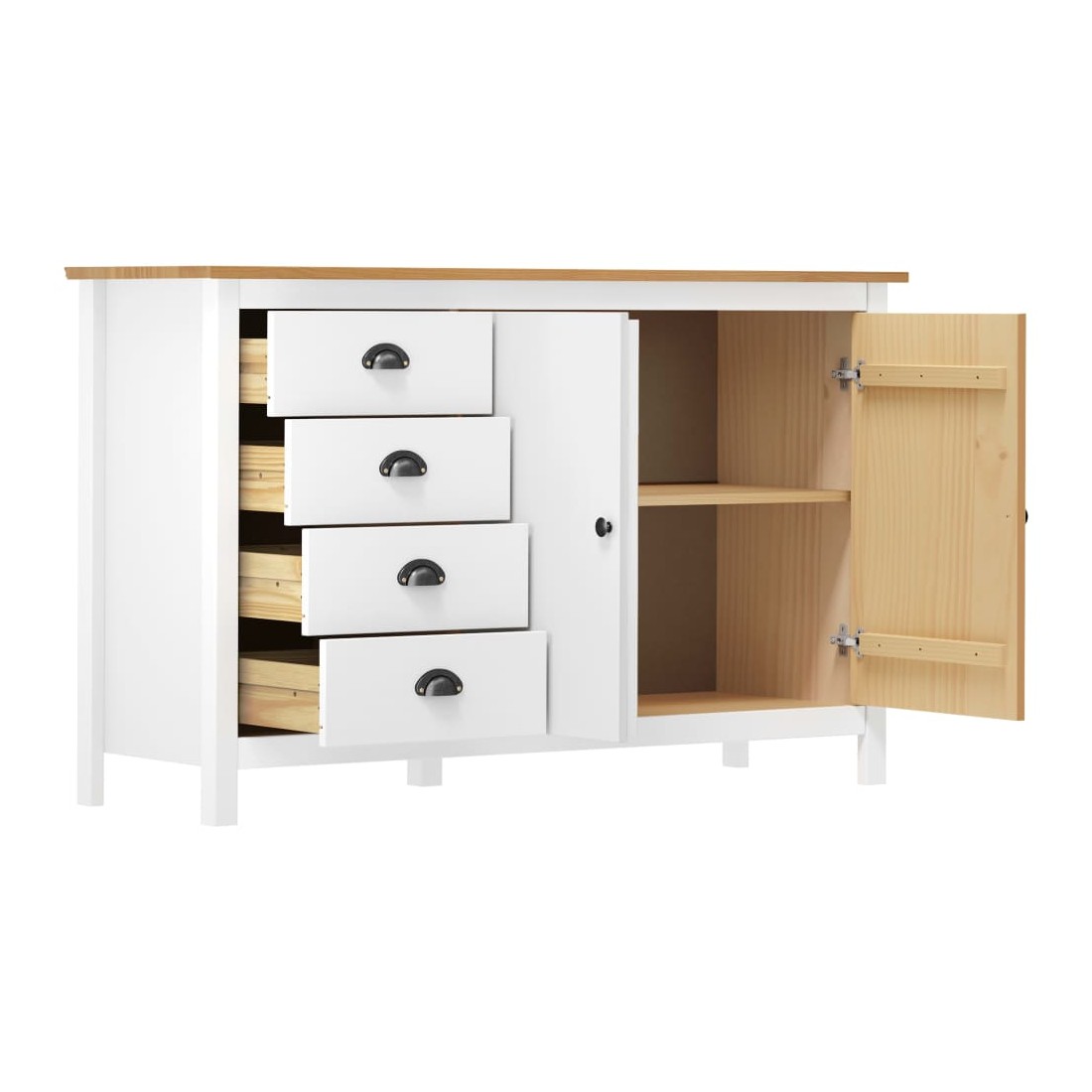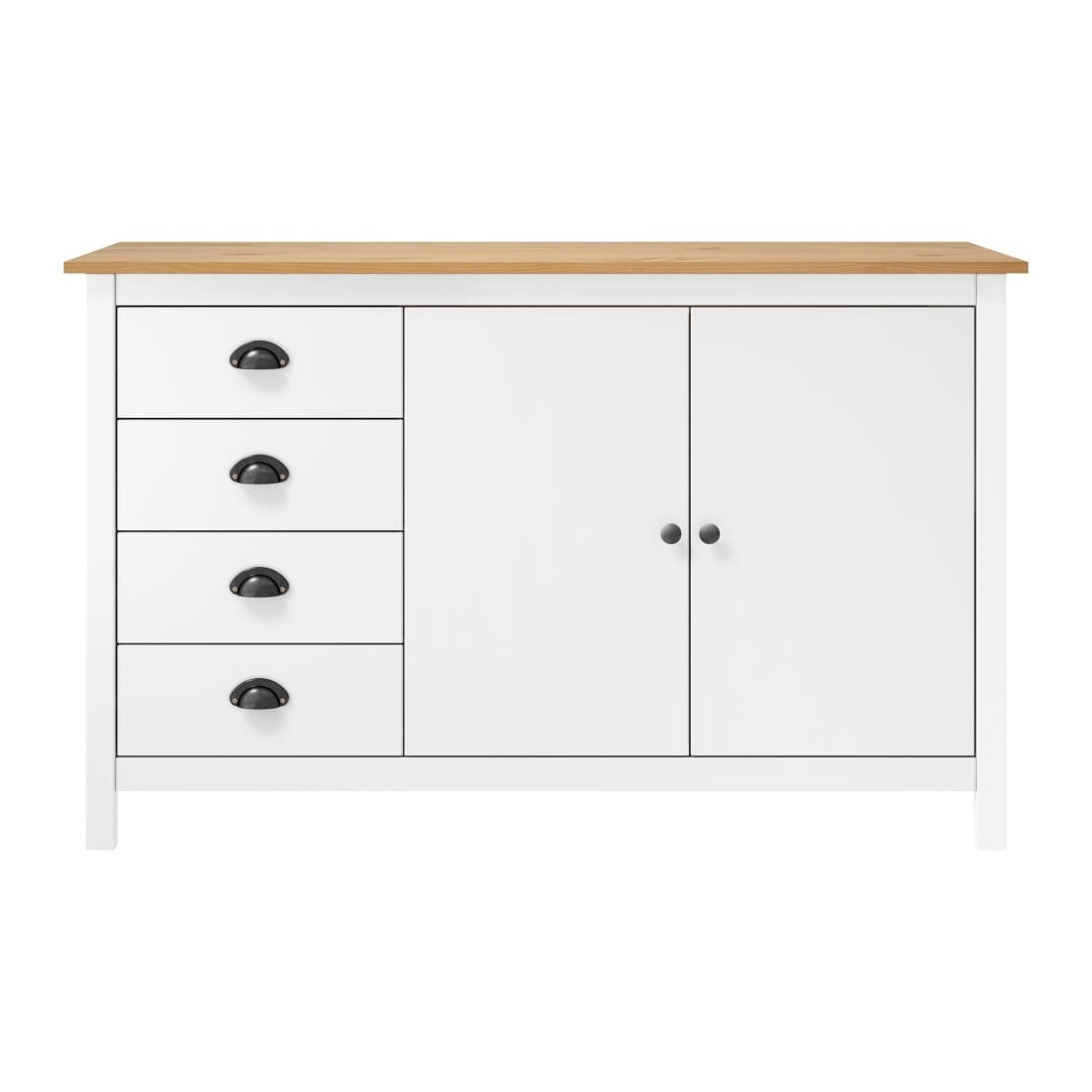 Gardez tout organisé dans votre intérieur avec notre élégant buffet en bois. Cette armoire latérale est en bois de pin massif, ce qui la rend stable et robuste. Grâce à ses 2 portes et ses 4 tiroirs spacieux avec poignées, l’armoire à tiroirs offre beaucoup d’espace de rangement pour garder toutes sortes d’articles dans l’ordre et à portée de main.