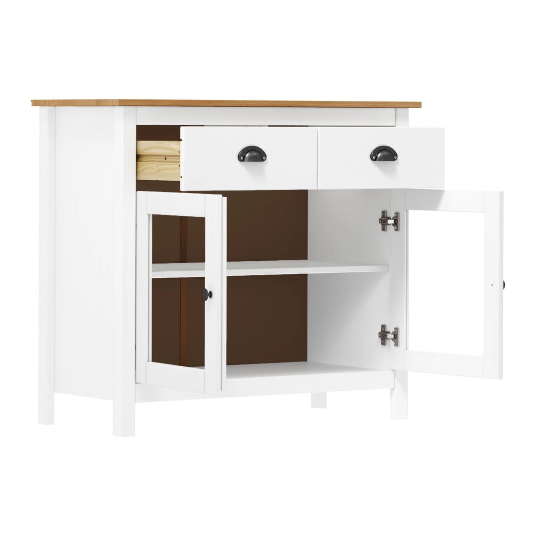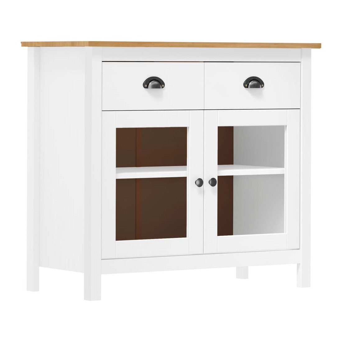 Gardez tout organisé dans votre intérieur avec notre élégant buffet en bois. Cette armoire latérale est en bois de pin massif, ce qui la rend stable et robuste. Grâce à ses 2 étagères et ses 2 tiroirs spacieux avec poignées, l’armoire à tiroirs offre beaucoup d’espace de rangement pour garder toutes sortes d’articles dans l’ordre et à portée de main.