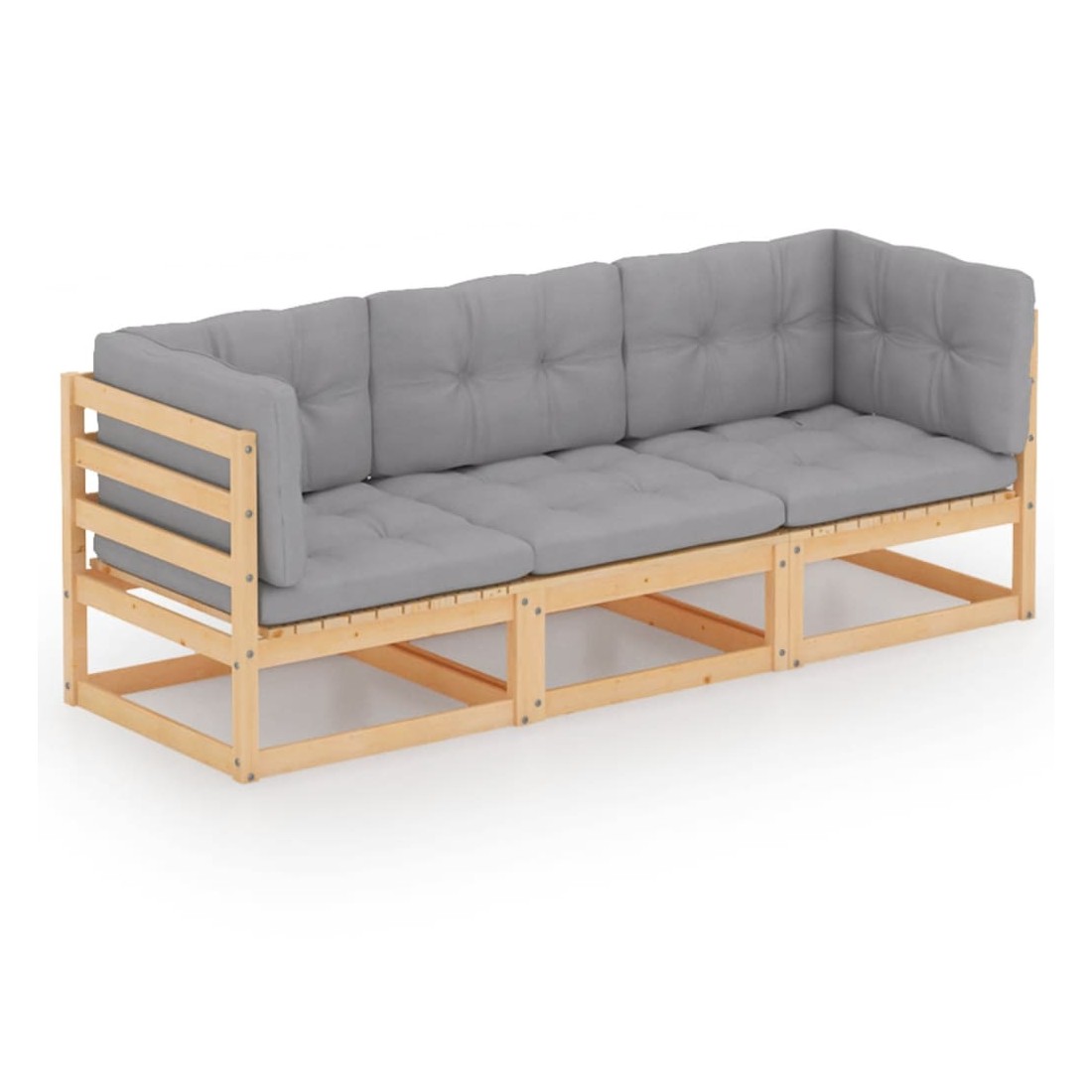Ce canapé 3 places de jardin est un choix idéal pour vous détendre et profiter du beau temps, faire une sieste ou discuter avec votre famille ou vos amis. Le canapés en bois est fabriqué en pin massif, ce qui le rend robuste et stable. Ce siège de jardin a une construction solide et nécessite peu d'entretien. Les coussins ajoutent un confort supplémentaire. Ce canapé d'extérieur ajoutera une touche de charme rustique à votre espace de vie extérieur. Remarque : afin de prolonger la durée de vie des meubles d'extérieur, nous vous recommandons de les protéger avec une housse imperméable.