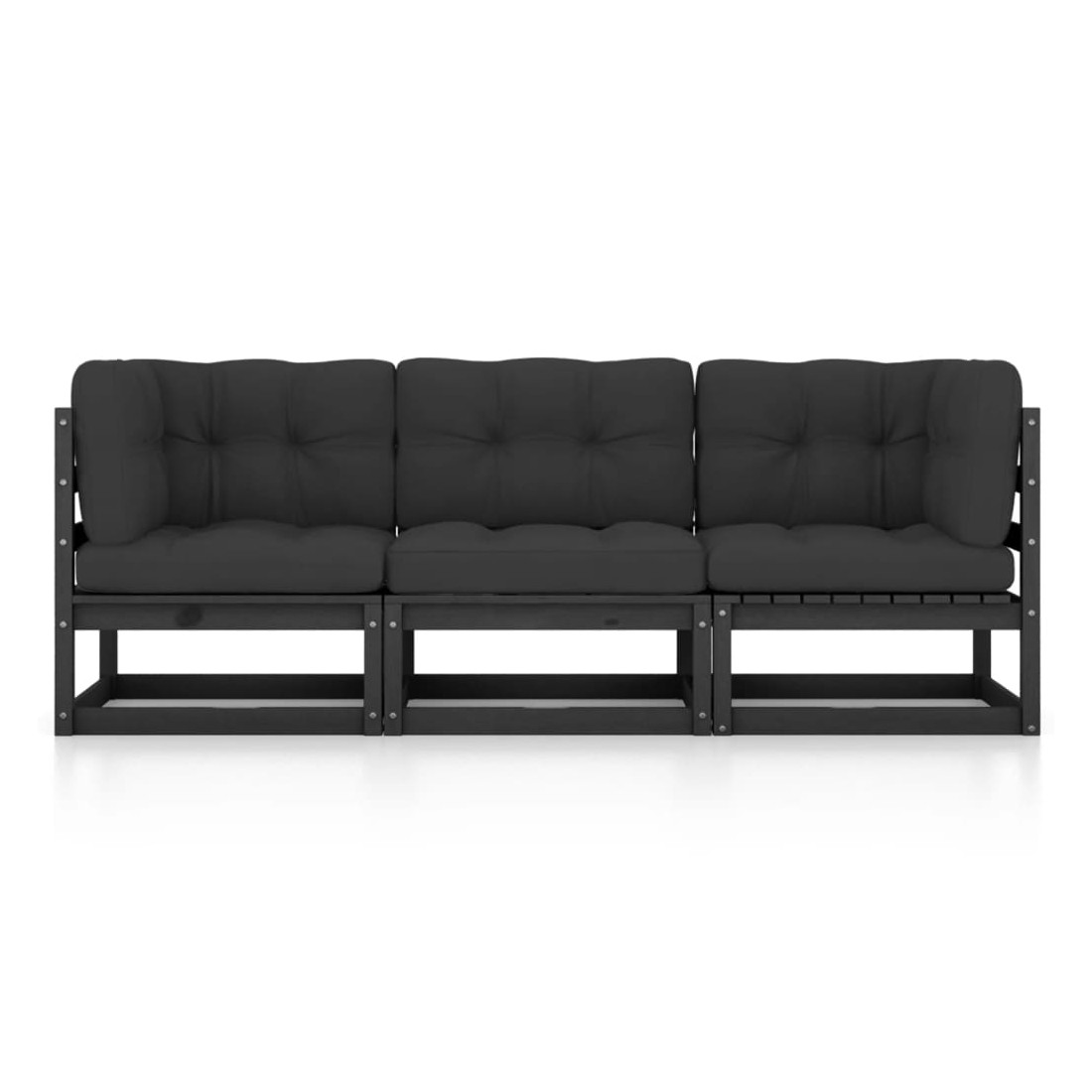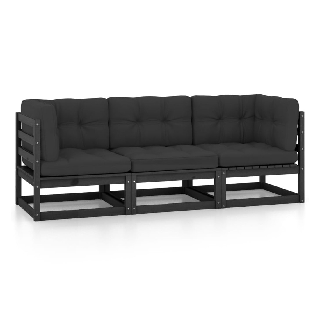 Canapé 3 places de jardin avec coussins Bois de pin massif