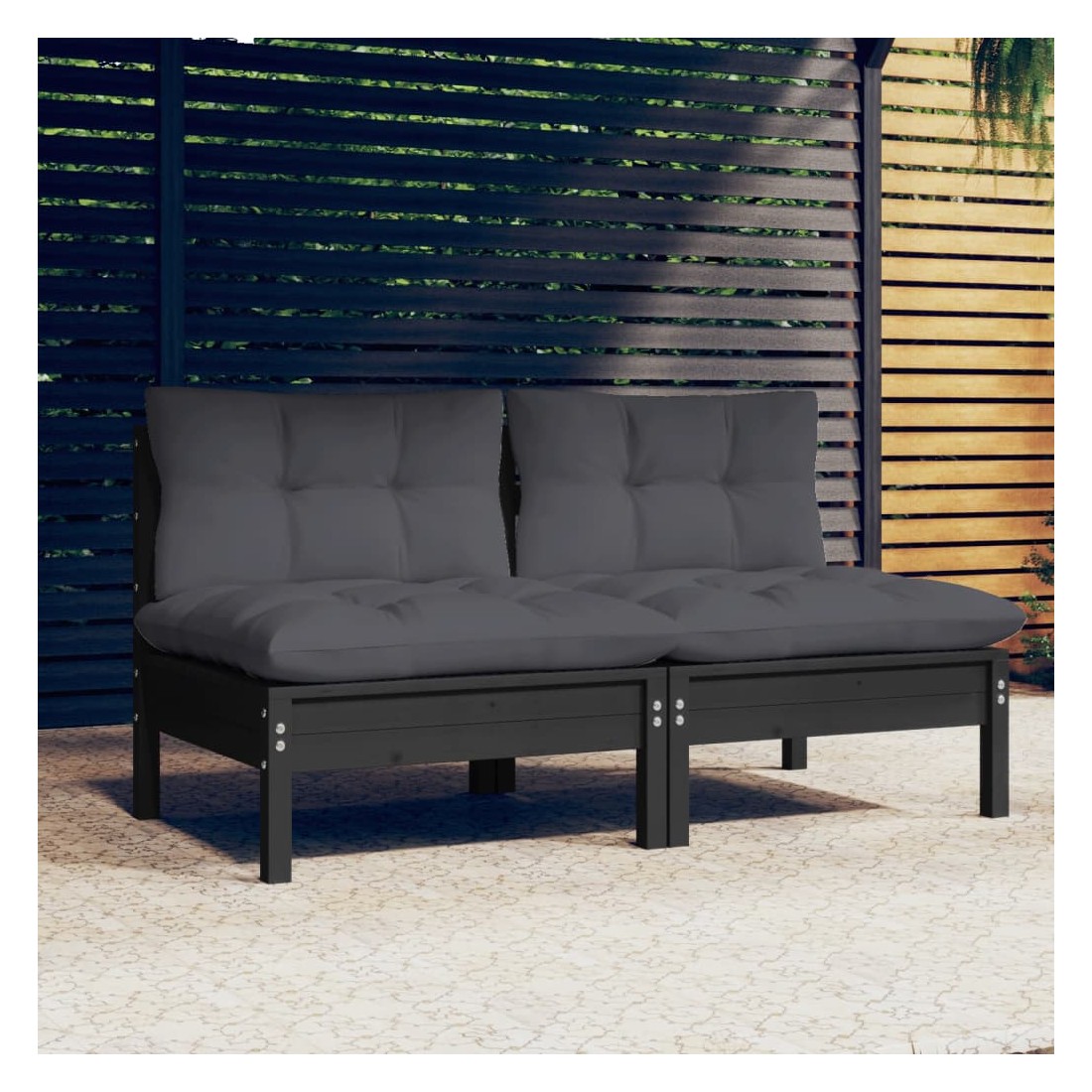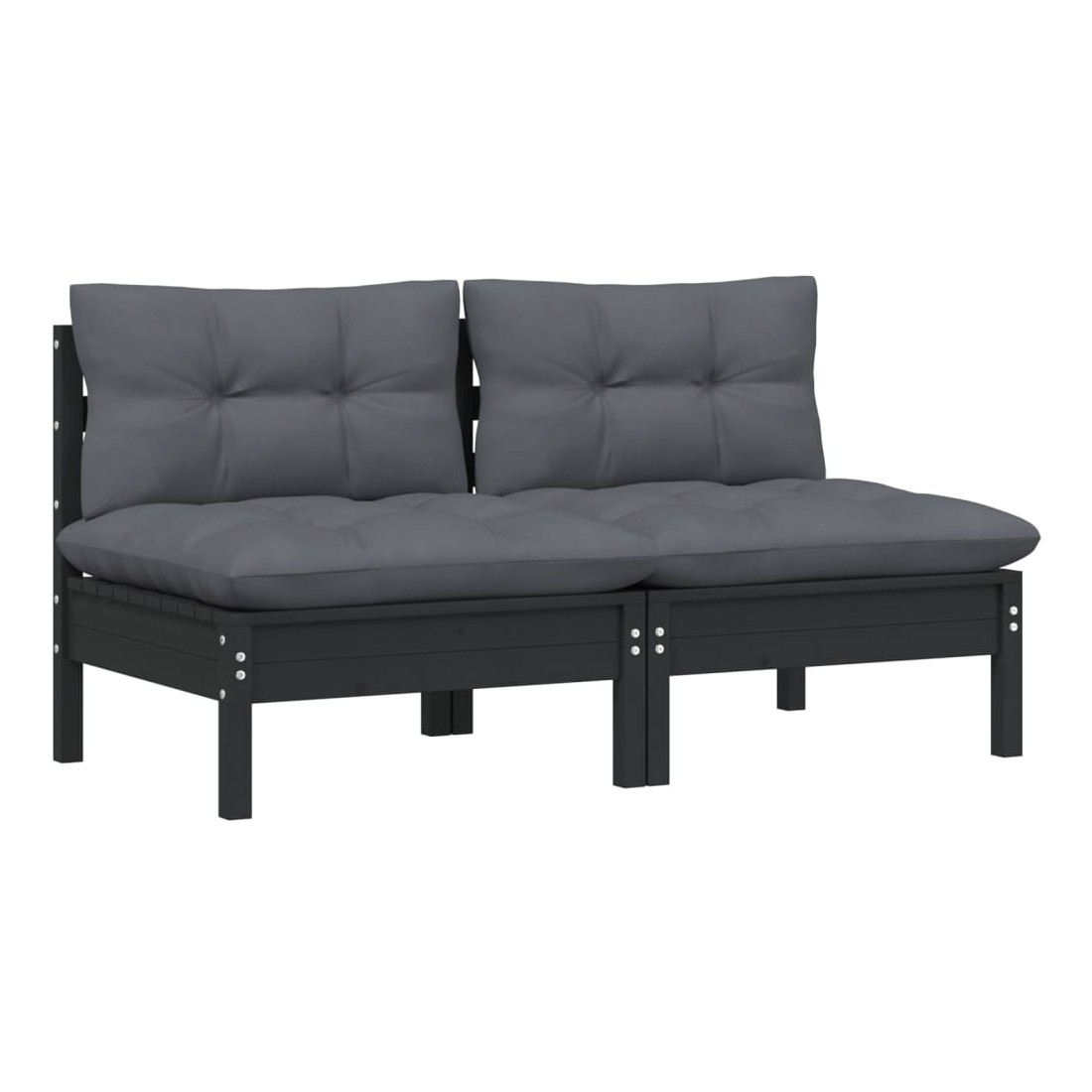 Canapé 2 places de jardin avec coussins anthracite Bois de pin