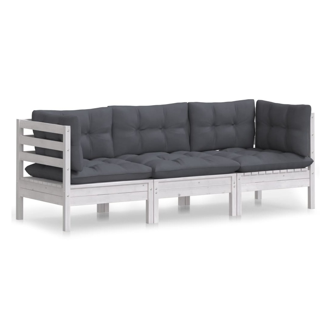 Canapé 3 places de jardin avec coussins anthracite Bois de pin