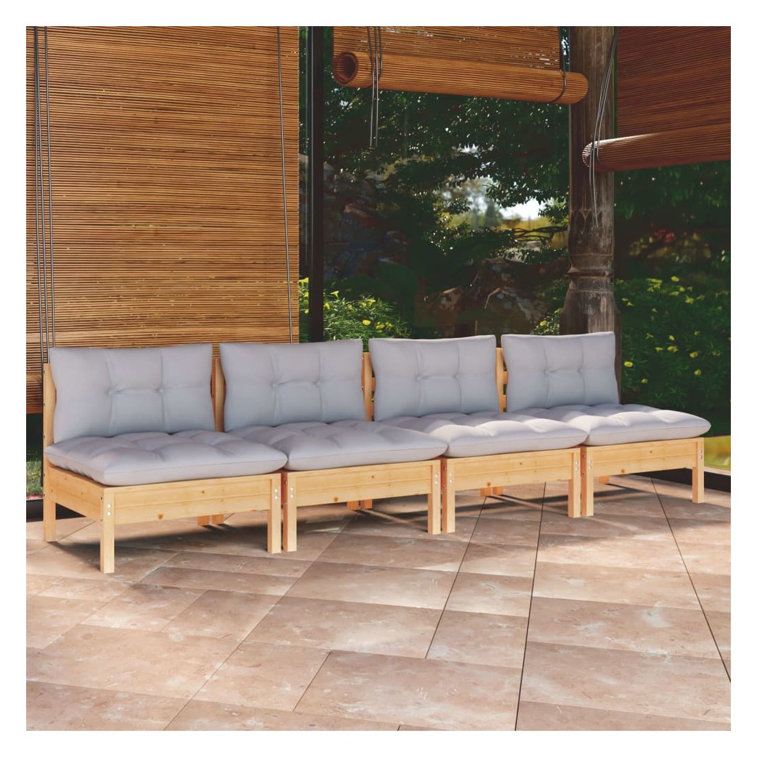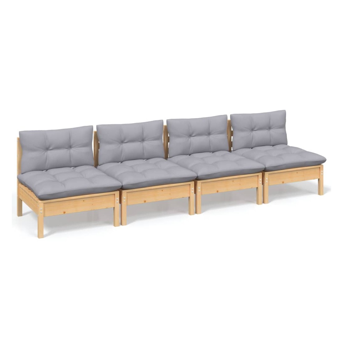 Canapé 4 places de jardin et coussins gris Bois de pin solide