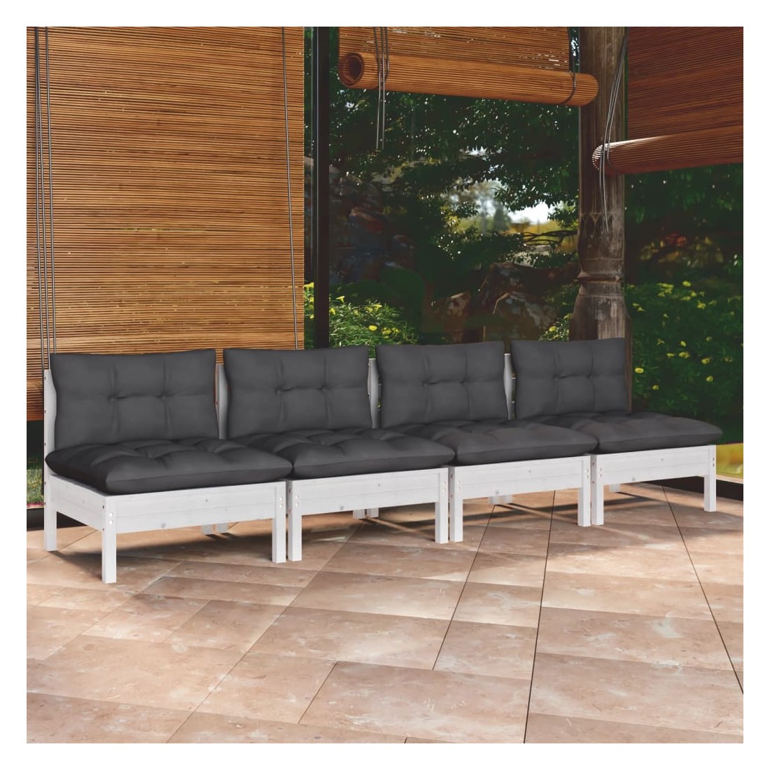 Canapé 4 places de jardin avec coussins anthracite Bois de pin