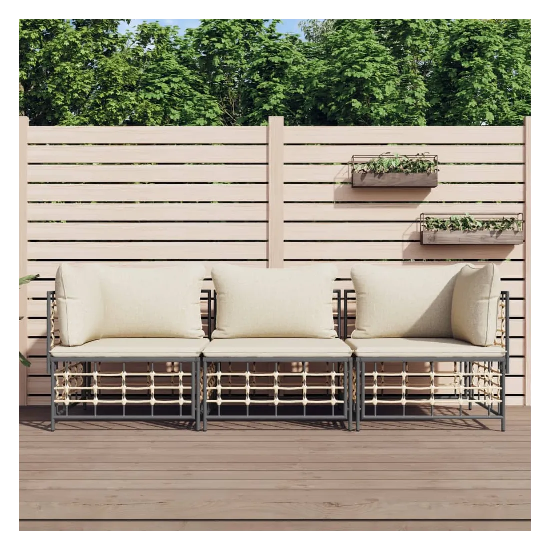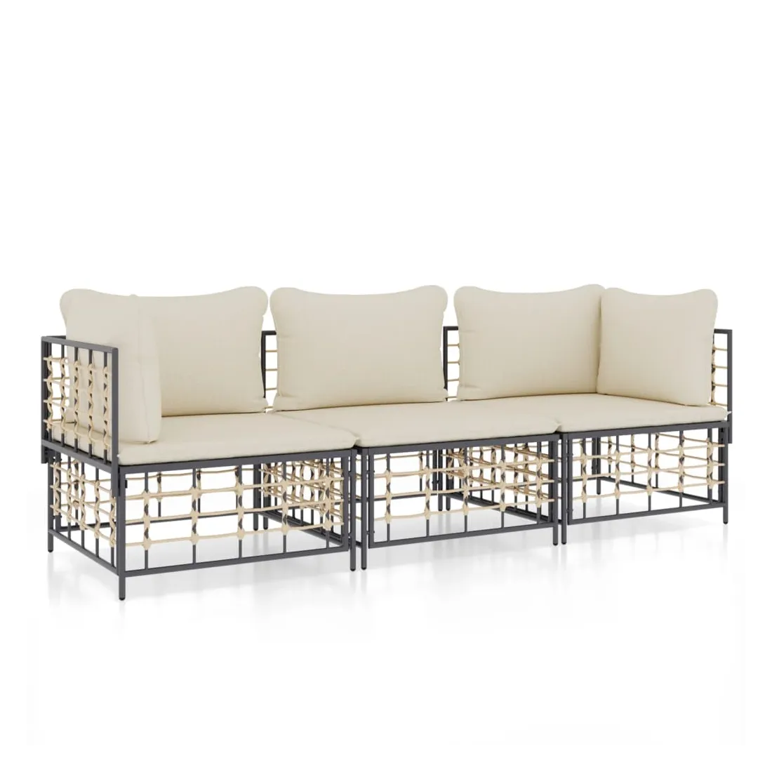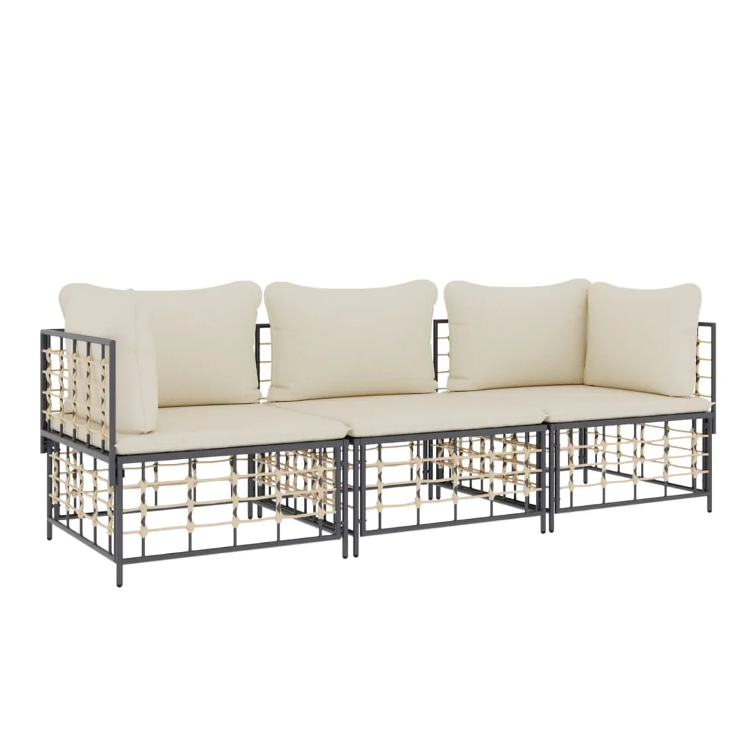 Profitez d'un moment de café confortable dans votre espace extérieur avec cet ensemble de salon de jardin ! C'est un complément parfait à votre jardin et à votre terrasse, créant une impression durable ! Matériau résistant aux intempéries : le poly rotin est résistant aux intempéries et facile à nettoyer. Il reste beau à l'extérieur pendant une longue période de temps. Il est plus économique que d'autres matériaux, tout en offrant une excellente qualité, une commodité et un aspect esthétique.Cadre robuste et stable : le cadre en acier de l'ensemble de salon assure robustesse et stabilité.Expérience d'assise confortable : le dossier ajoute un confort d'assise supplémentaire pour l'ensemble de salon. De plus, les coussins bien rembourrés offrent un confort pour votre temps d'assise.Conception modulaire : l'ensemble de salon de jardin est flexible et facile à déplacer, vous pouvez donc le combiner avec d'autres segments modulaires de la boutique en ligne pour créer vos propres configurations personnelles de salon de jardin ! Remarque :Pour que vos meubles d'extérieur restent beaux, nous vous recommandons de les protéger avec une housse imperméable.