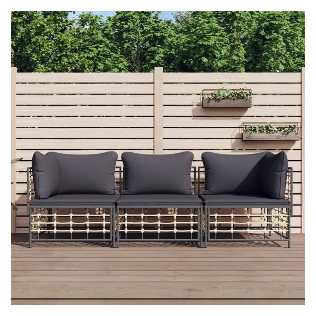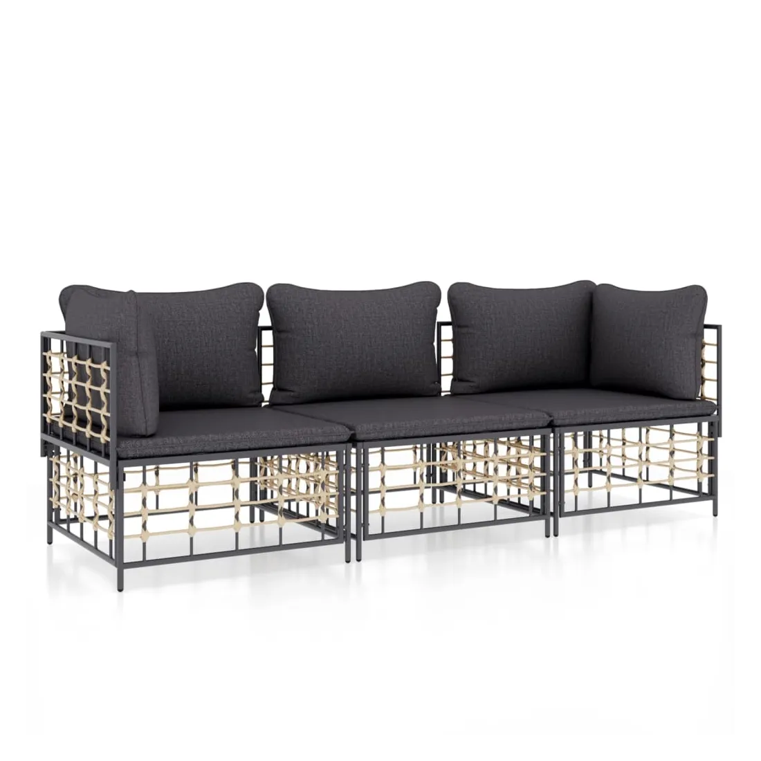 Profitez d'un moment de café confortable dans votre espace extérieur avec cet ensemble de salon de jardin ! C'est un complément parfait à votre jardin et à votre terrasse, créant une impression durable ! Matériau résistant aux intempéries : le poly rotin est résistant aux intempéries et facile à nettoyer. Il reste beau à l'extérieur pendant une longue période de temps. Il est plus économique que d'autres matériaux, tout en offrant une excellente qualité, une commodité et un aspect esthétique.Cadre robuste et stable : le cadre en acier de l'ensemble de salon assure robustesse et stabilité.Expérience d'assise confortable : le dossier ajoute un confort d'assise supplémentaire pour l'ensemble de salon. De plus, les coussins bien rembourrés offrent un confort pour votre temps d'assise.Conception modulaire : l'ensemble de salon de jardin est flexible et facile à déplacer, vous pouvez donc le combiner avec d'autres segments modulaires de la boutique en ligne pour créer vos propres configurations personnelles de salon de jardin ! Remarque :Pour que vos meubles d'extérieur restent beaux, nous vous recommandons de les protéger avec une housse imperméable.