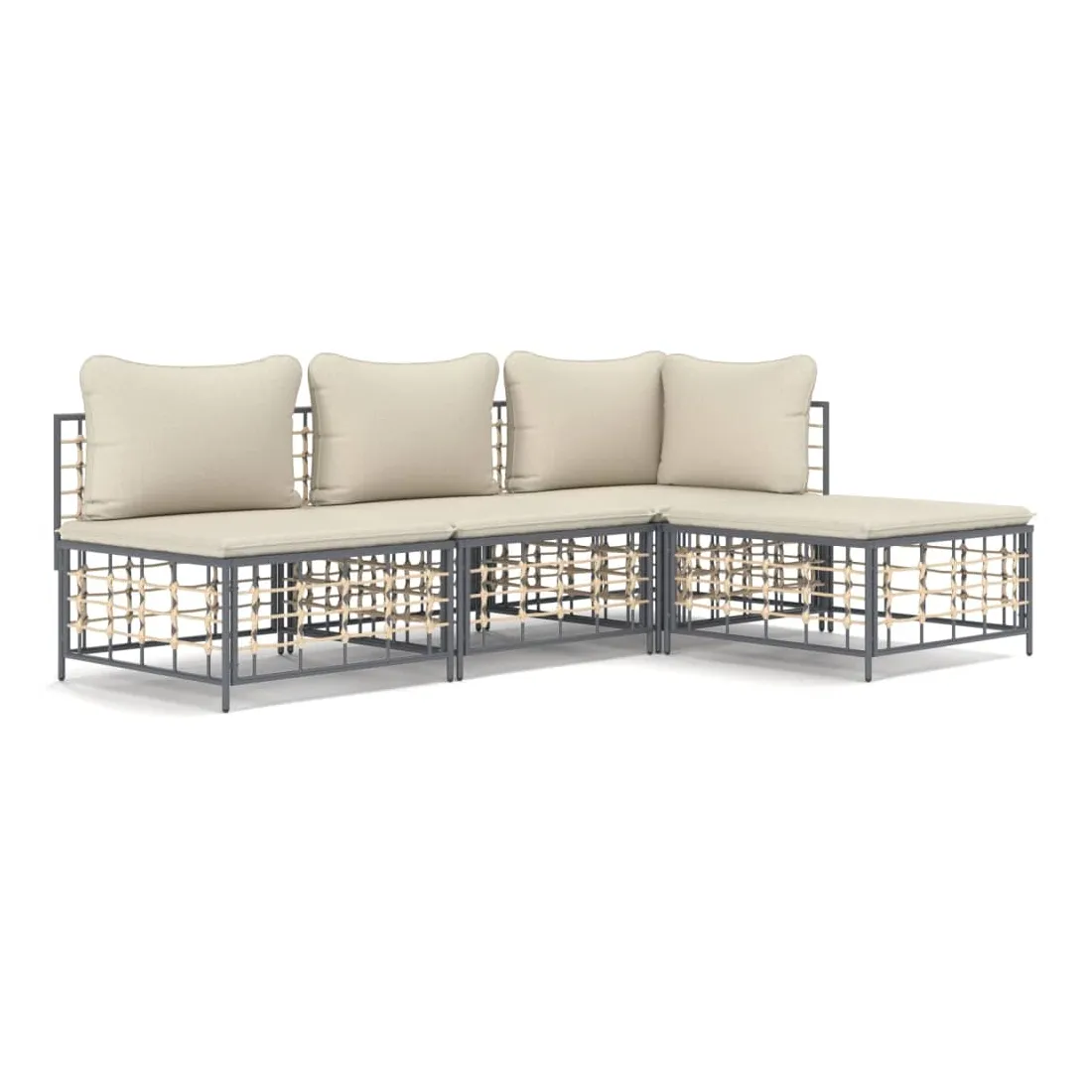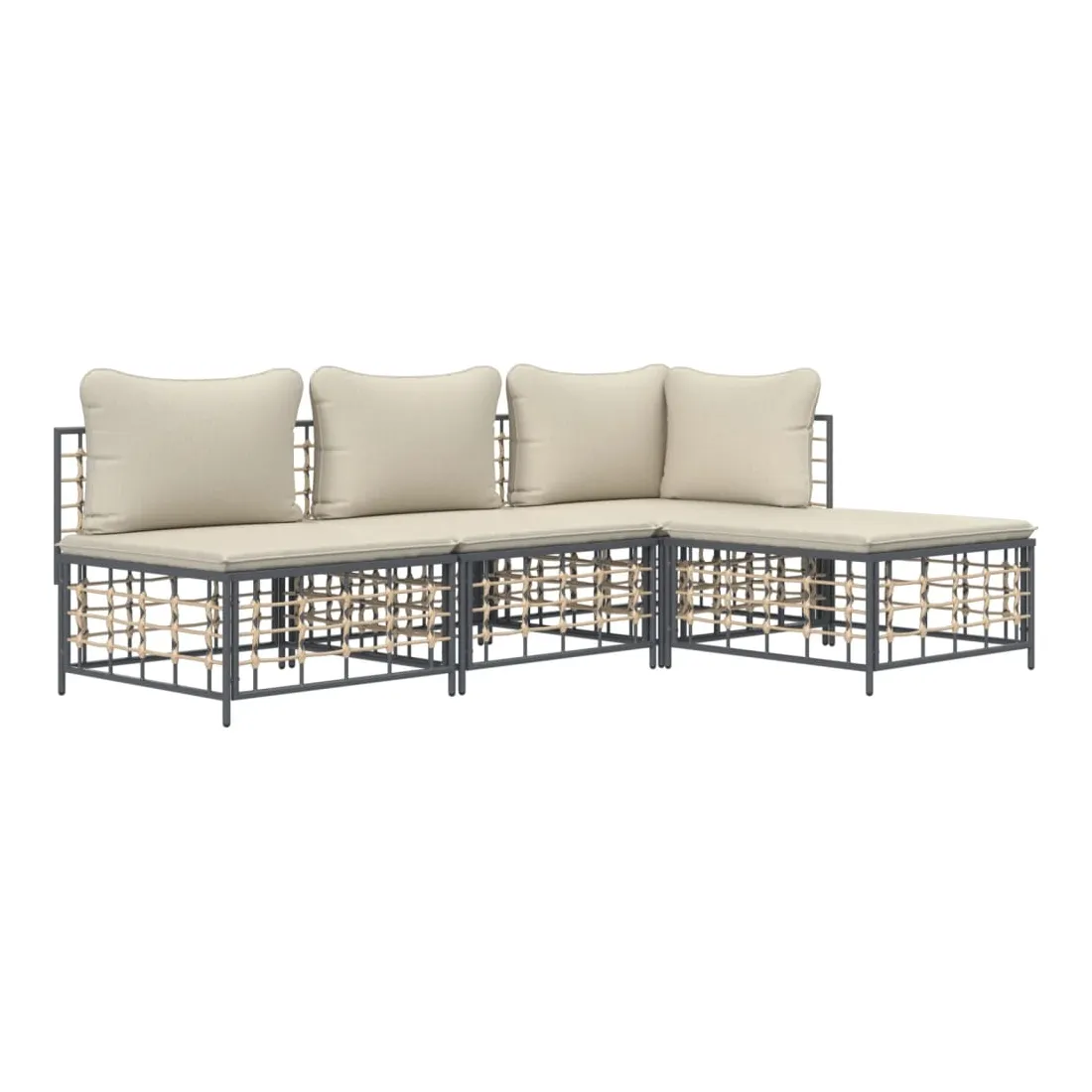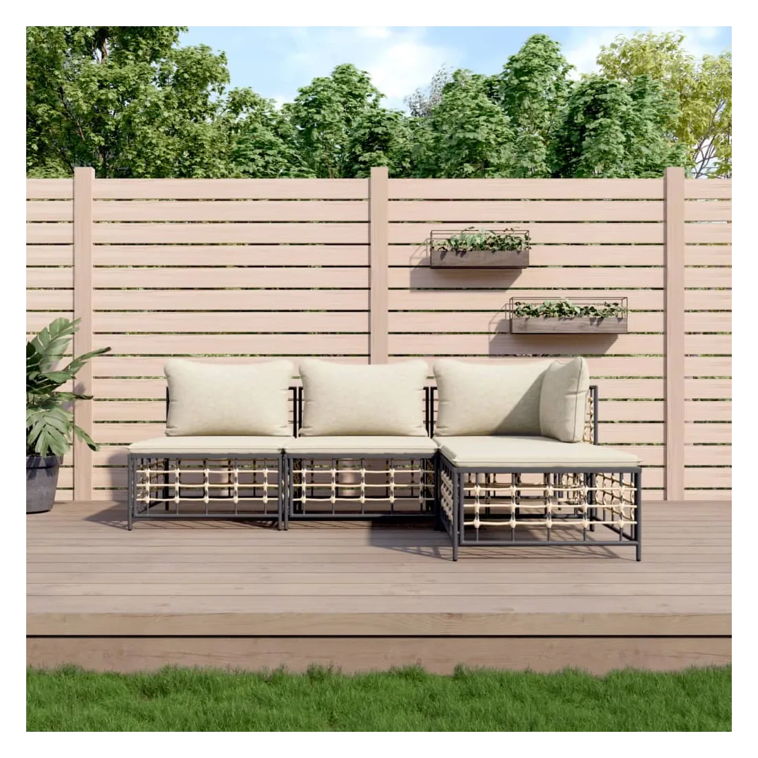 Profitez d'un moment de café confortable dans votre espace extérieur avec cet ensemble de salon de jardin ! C'est un complément parfait à votre jardin et à votre terrasse, créant une impression durable ! Matériau résistant aux intempéries : le poly rotin est résistant aux intempéries et facile à nettoyer. Il reste beau à l'extérieur pendant une longue période de temps. Il est plus économique que d'autres matériaux, tout en offrant une excellente qualité, une commodité et un aspect esthétique.Cadre robuste et stable : le cadre en acier de l'ensemble de salon assure robustesse et stabilité.Expérience d'assise confortable : le dossier ajoute un confort d'assise supplémentaire pour l'ensemble de salon. De plus, les coussins bien rembourrés offrent un confort pour votre temps d'assise.Conception modulaire : l'ensemble de salon de jardin est flexible et facile à déplacer, vous pouvez donc le combiner avec d'autres segments modulaires de la boutique en ligne pour créer vos propres configurations personnelles de salon de jardin ! Remarque :Pour que vos meubles d'extérieur restent beaux, nous vous recommandons de les protéger avec une housse imperméable.