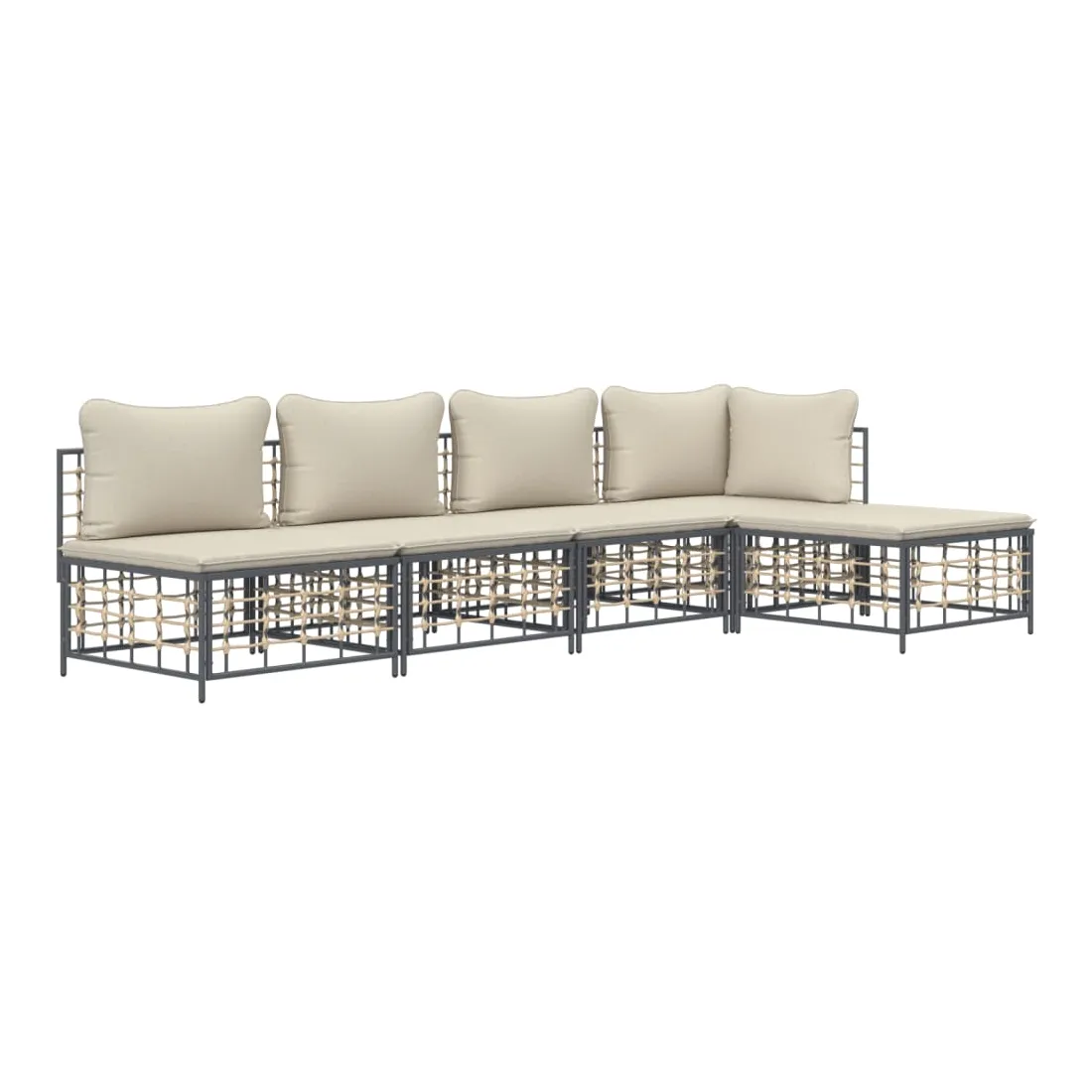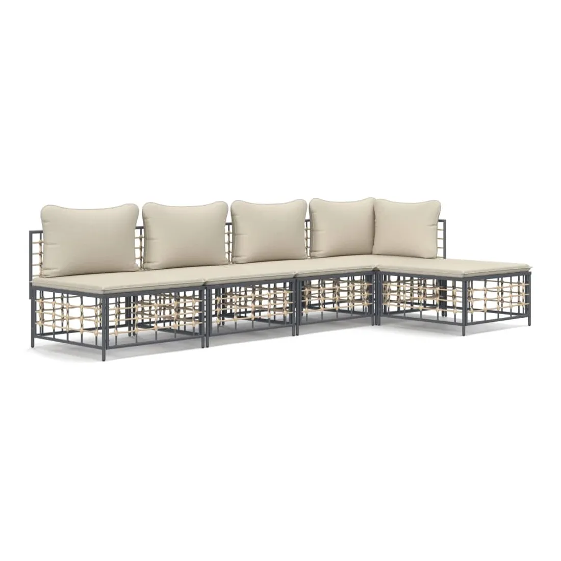 Profitez d'un moment de café confortable dans votre espace extérieur avec cet ensemble de salon de jardin ! C'est un complément parfait à votre jardin et à votre terrasse, créant une impression durable ! Matériau résistant aux intempéries : le poly rotin est résistant aux intempéries et facile à nettoyer. Il reste beau à l'extérieur pendant une longue période de temps. Il est plus économique que d'autres matériaux, tout en offrant une excellente qualité, une commodité et un aspect esthétique.Cadre robuste et stable : le cadre en acier de l'ensemble de salon assure robustesse et stabilité.Expérience d'assise confortable : le dossier ajoute un confort d'assise supplémentaire pour l'ensemble de salon. De plus, les coussins bien rembourrés offrent un confort pour votre temps d'assise.Conception modulaire : l'ensemble de salon de jardin est flexible et facile à déplacer, vous pouvez donc le combiner avec d'autres segments modulaires de la boutique en ligne pour créer vos propres configurations personnelles de salon de jardin ! Remarque :Pour que vos meubles d'extérieur restent beaux, nous vous recommandons de les protéger avec une housse imperméable.