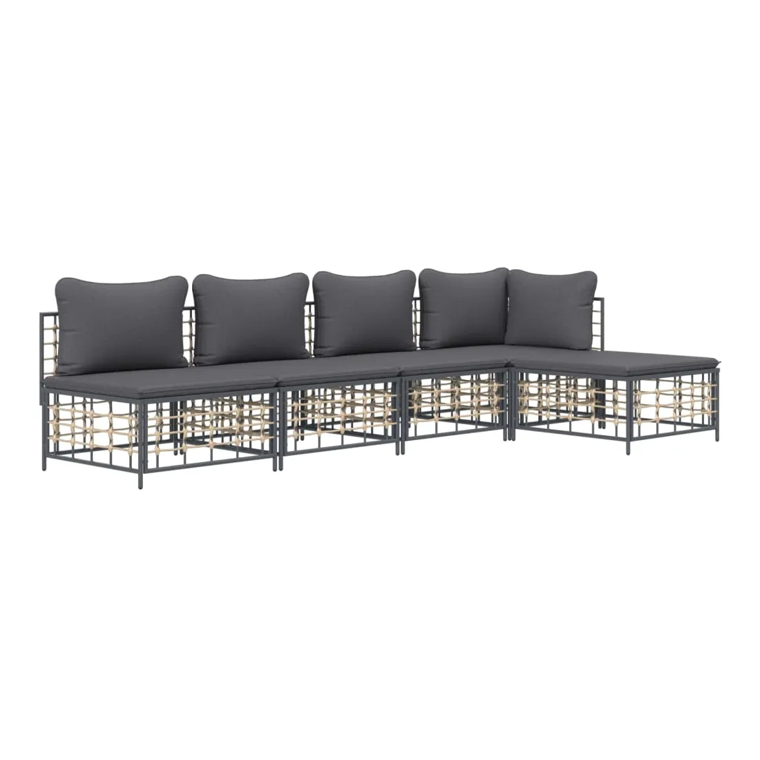 Profitez d'un moment de café confortable dans votre espace extérieur avec cet ensemble de salon de jardin ! C'est un complément parfait à votre jardin et à votre terrasse, créant une impression durable ! Matériau résistant aux intempéries : le poly rotin est résistant aux intempéries et facile à nettoyer. Il reste beau à l'extérieur pendant une longue période de temps. Il est plus économique que d'autres matériaux, tout en offrant une excellente qualité, une commodité et un aspect esthétique.Cadre robuste et stable : le cadre en acier de l'ensemble de salon assure robustesse et stabilité.Expérience d'assise confortable : le dossier ajoute un confort d'assise supplémentaire pour l'ensemble de salon. De plus, les coussins bien rembourrés offrent un confort pour votre temps d'assise.Conception modulaire : l'ensemble de salon de jardin est flexible et facile à déplacer, vous pouvez donc le combiner avec d'autres segments modulaires de la boutique en ligne pour créer vos propres configurations personnelles de salon de jardin ! Remarque :Pour que vos meubles d'extérieur restent beaux, nous vous recommandons de les protéger avec une housse imperméable.