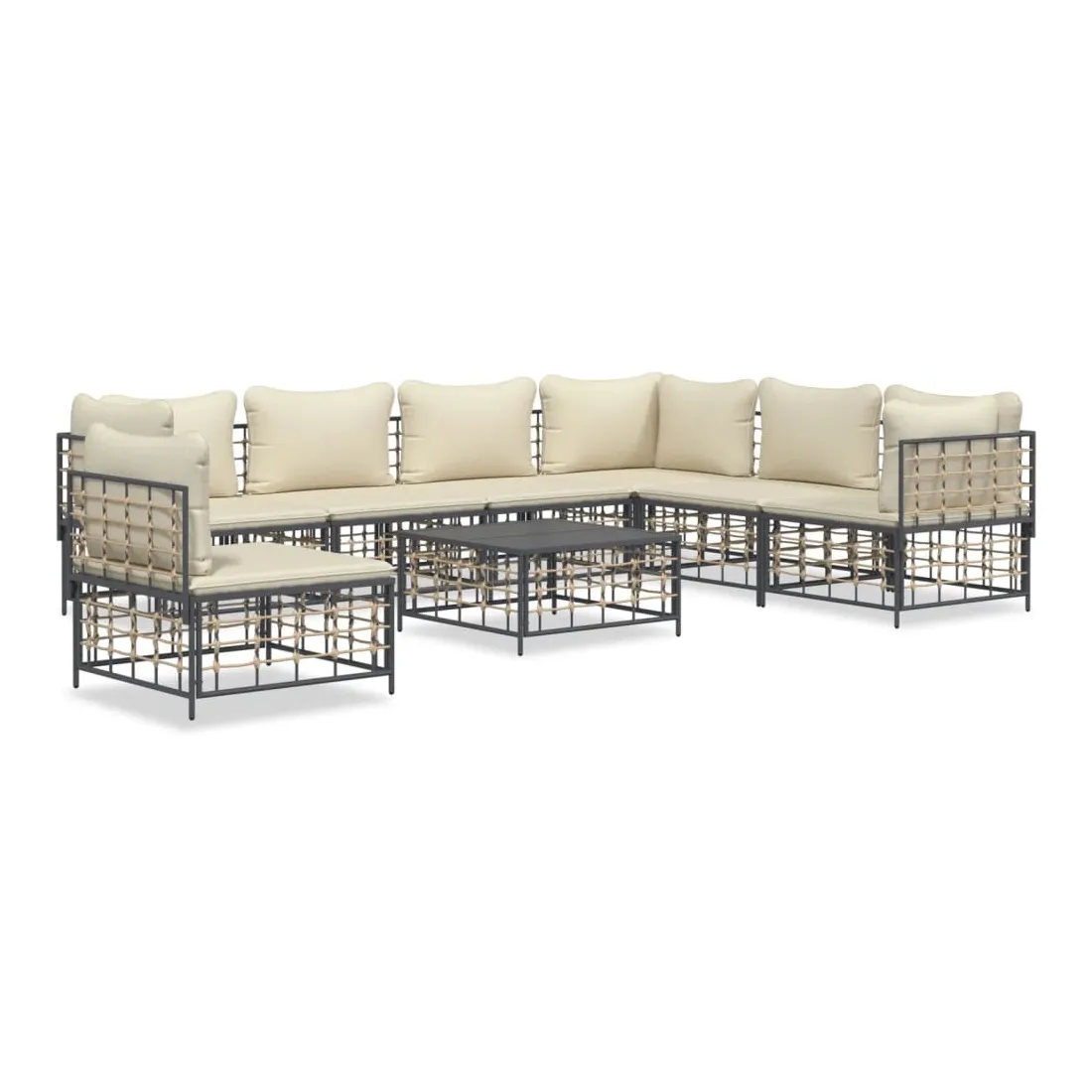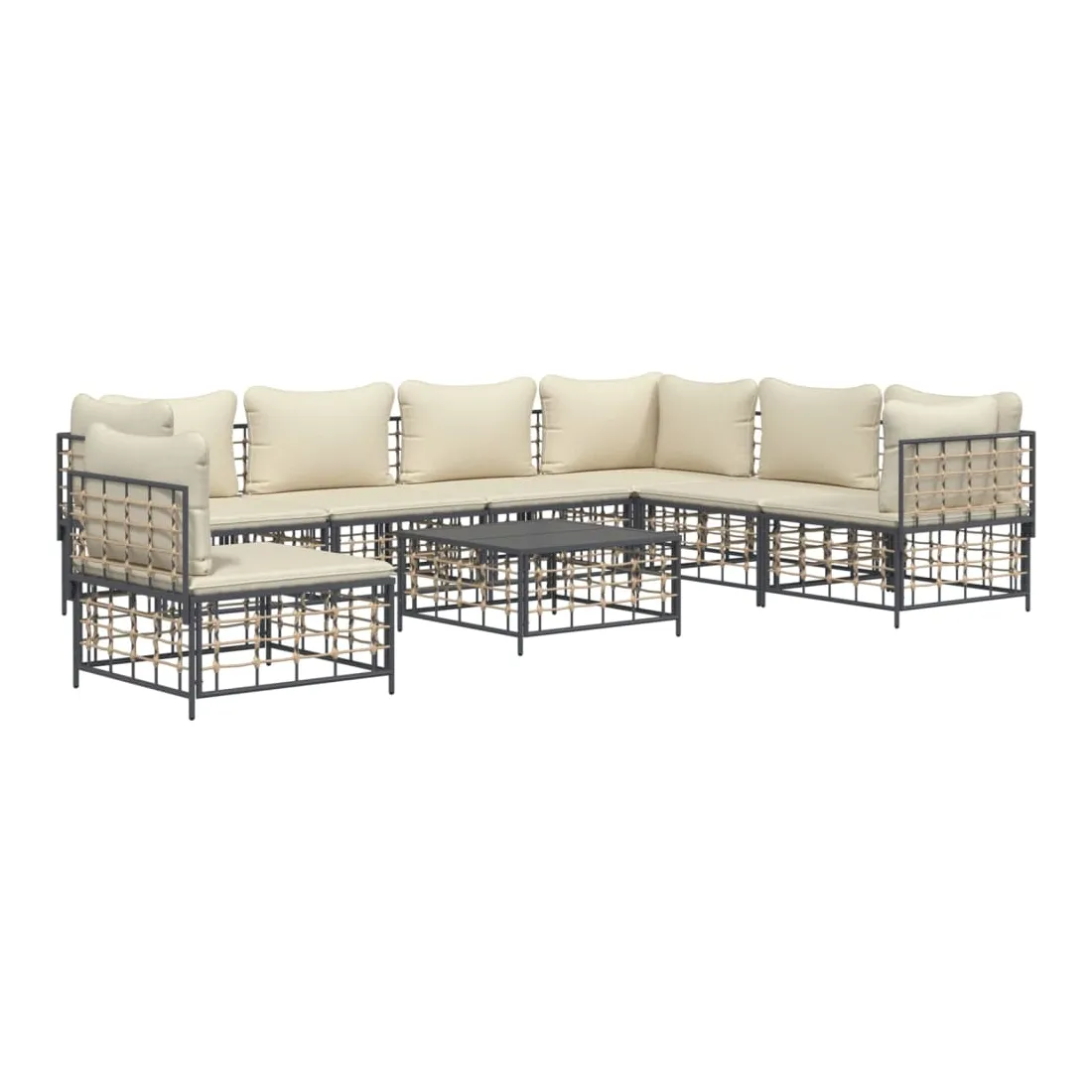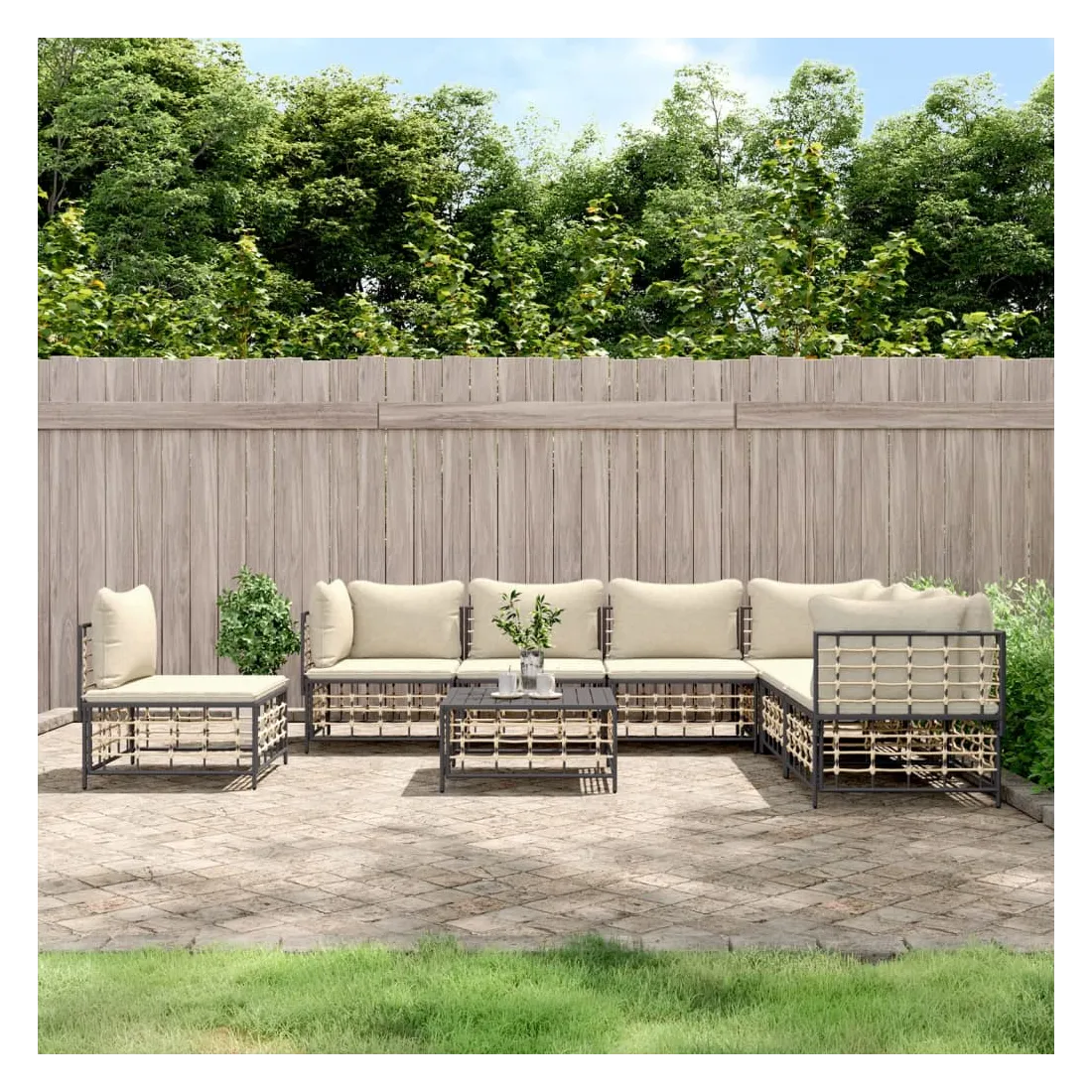 Salon de jardin 8 pcs avec coussins anthracite résine tressée