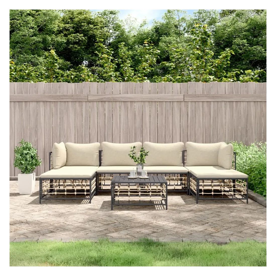 Profitez d'un moment de café confortable dans votre espace extérieur avec cet ensemble de salon de jardin ! C'est un complément parfait à votre jardin et à votre terrasse, créant une impression durable ! Matériau résistant aux intempéries : le poly rotin est résistant aux intempéries et facile à nettoyer. Il reste beau à l'extérieur pendant une longue période de temps. Il est plus économique que d'autres matériaux, tout en offrant une excellente qualité, une commodité et un aspect esthétique.Cadre robuste et stable : le cadre en acier de l'ensemble de salon assure robustesse et stabilité.Expérience d'assise confortable : le dossier ajoute un confort d'assise supplémentaire pour l'ensemble de salon. De plus, les coussins bien rembourrés offrent un confort pour votre temps d'assise.Dessus de table robuste : le dessus de table robuste de la table basse est parfait pour placer des repas, des boissons, des vases, des bols de fruits ou d'autres objets décoratifs.Conception modulaire : l'ensemble de salon de jardin est flexible et facile à déplacer, vous pouvez donc le combiner avec d'autres segments modulaires de la boutique en ligne pour créer vos propres configurations personnelles de salon de jardin ! Remarque :Pour que vos meubles d'extérieur restent beaux, nous vous recommandons de les protéger avec une housse imperméable.