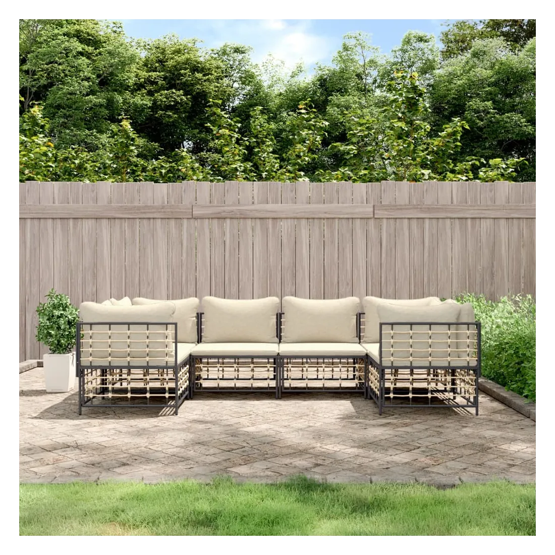 Profitez d'un moment de café confortable dans votre espace extérieur avec cet ensemble de salon de jardin ! C'est un complément parfait à votre jardin et à votre terrasse, créant une impression durable ! Matériau résistant aux intempéries : le poly rotin est résistant aux intempéries et facile à nettoyer. Il reste beau à l'extérieur pendant une longue période de temps. Il est plus économique que d'autres matériaux, tout en offrant une excellente qualité, une commodité et un aspect esthétique.Cadre robuste et stable : le cadre en acier de l'ensemble de salon assure robustesse et stabilité.Expérience d'assise confortable : le dossier ajoute un confort d'assise supplémentaire pour l'ensemble de salon. De plus, les coussins bien rembourrés offrent un confort pour votre temps d'assise.Conception modulaire : l'ensemble de salon de jardin est flexible et facile à déplacer, vous pouvez donc le combiner avec d'autres segments modulaires de la boutique en ligne pour créer vos propres configurations personnelles de salon de jardin ! Remarque :Pour que vos meubles d'extérieur restent beaux, nous vous recommandons de les protéger avec une housse imperméable.