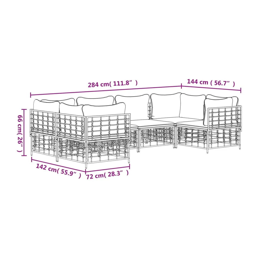 - Dimensions du coussin de siège : 70 x 70 x 5 cm (l x P x é)