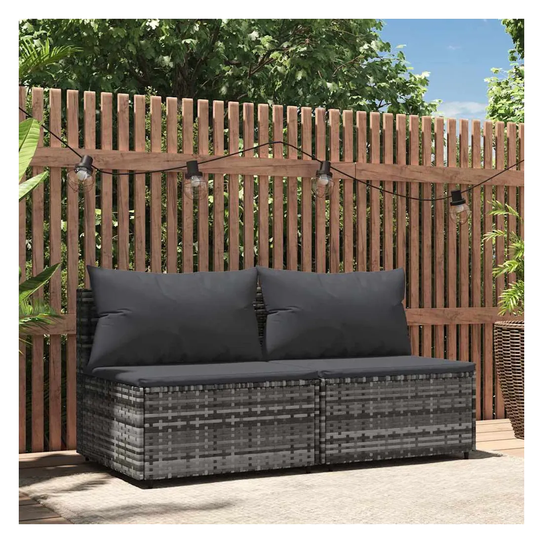 Ces canapés centraux de jardin tendances, au design élégant et contemporain, sont parfaits pour manger ou vous détendre dans votre jardin. Matériau résistant aux intempéries : la résine tressée, également connue sous le nom de rotin poly, résiste aux intempéries et est facile à nettoyer. Elle reste belle à l'extérieur pendant une longue période. Elle offre une excellente qualité, commodité et un aspect esthétique.Cadre robuste : le cadre en acier enduit de poudre rend le canapé robuste et stable pour une utilisation quotidienne à l'extérieur.Design modulaire : le canapé d'extérieur est flexible et facile à déplacer, vous pouvez donc le combiner avec d'autres segments modulaires de la boutique en ligne pour créer vos propres configurations de salon de jardin !Expérience d'assise confortable : le dossier ajoute un confort d'assise supplémentaire au canapé de jardin. De plus, les coussins bien rembourrés offrent du confort pendant votre temps d'assise. Bon à savoir :Pour faciliter au maximum le montage, chaque produit est livré avec des instructions. Remarque :Le produit est conçu pour une utilisation à l'extérieur uniquement. Ne le rangez pas à l'intérieur.Pour que vos meubles d'extérieur restent beaux, nous vous recommandons de les protéger avec une housse imperméable.