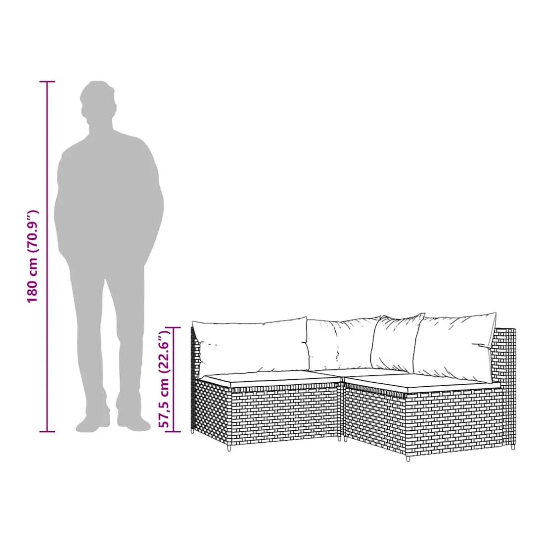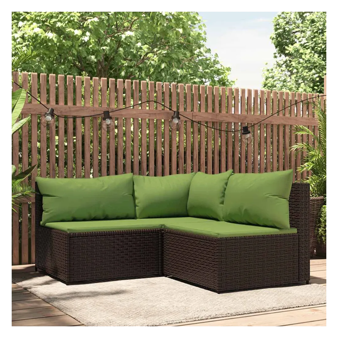 Cet ensemble de salon de jardin tendance, au design élégant et contemporain, est un excellent choix pour manger ou vous détendre dans votre jardin. Matériau résistant aux intempéries : la résine tressée, également connue sous le nom de rotin poly, résiste aux intempéries et est facile à nettoyer. Elle reste belle à l'extérieur pendant une longue période. Elle offre une excellente qualité, commodité et un aspect esthétique.Cadre robuste : les cadres en acier enduit de poudre rendent l'ensemble de salon d'extérieur robuste et stable pour une utilisation quotidienne à l'extérieur.Conception modulaire : l'ensemble de salon de jardin est flexible et facile à déplacer, vous pouvez donc le combiner avec d'autres segments modulaires dans la boutique en ligne pour créer vos propres configurations d'ensemble de salon de jardin !Expérience d'assise confortable : le dossier ajoute un confort d'assise supplémentaire au canapé de jardin. De plus, les coussins bien rembourrés offrent du confort pendant votre temps d'assise. Bon à savoir :Pour faciliter au maximum le montage, chaque produit est livré avec des instructions. Remarque :Le produit est conçu pour une utilisation à l'extérieur uniquement. Ne le rangez pas à l'intérieur.Pour que vos meubles d'extérieur restent beaux, nous vous recommandons de les protéger avec une housse imperméable.