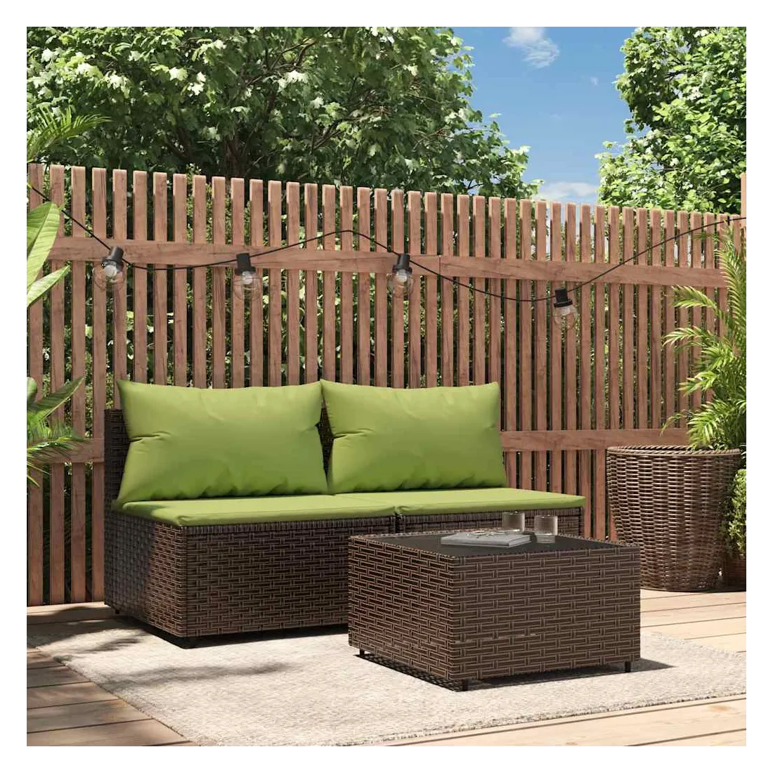 Cet ensemble de salon de jardin tendance, au design élégant et contemporain, est un excellent choix pour manger ou vous détendre dans votre jardin. Matériau résistant aux intempéries : la résine tressée, également connue sous le nom de rotin poly, résiste aux intempéries et est facile à nettoyer. Elle reste belle à l'extérieur pendant une longue période. Elle offre une excellente qualité, commodité et un aspect esthétique.Cadre robuste : les cadres en acier enduit de poudre rendent l'ensemble de salon d'extérieur robuste et stable pour une utilisation quotidienne à l'extérieur.Dessus de table pratique : le dessus lisse de la table de jardin est en verre trempé, facile à nettoyer avec un chiffon humide. De plus, le dessus robuste est parfait pour placer des repas, des boissons et d'autres objets décoratifs.Conception modulaire : l'ensemble de salon de jardin est flexible et facile à déplacer, vous pouvez donc le combiner avec d'autres segments modulaires dans la boutique en ligne pour créer vos propres configurations d'ensemble de salon de jardin !Expérience d'assise confortable : le dossier ajoute un confort d'assise supplémentaire au canapé de jardin. De plus, les coussins bien rembourrés offrent du confort pendant votre temps d'assise. Bon à savoir :Pour faciliter au maximum le montage, chaque produit est livré avec des instructions. Remarque :Le produit est conçu pour une utilisation à l'extérieur uniquement. Ne le rangez pas à l'intérieur.Pour que vos meubles d'extérieur restent beaux, nous vous recommandons de les protéger avec une housse imperméable.