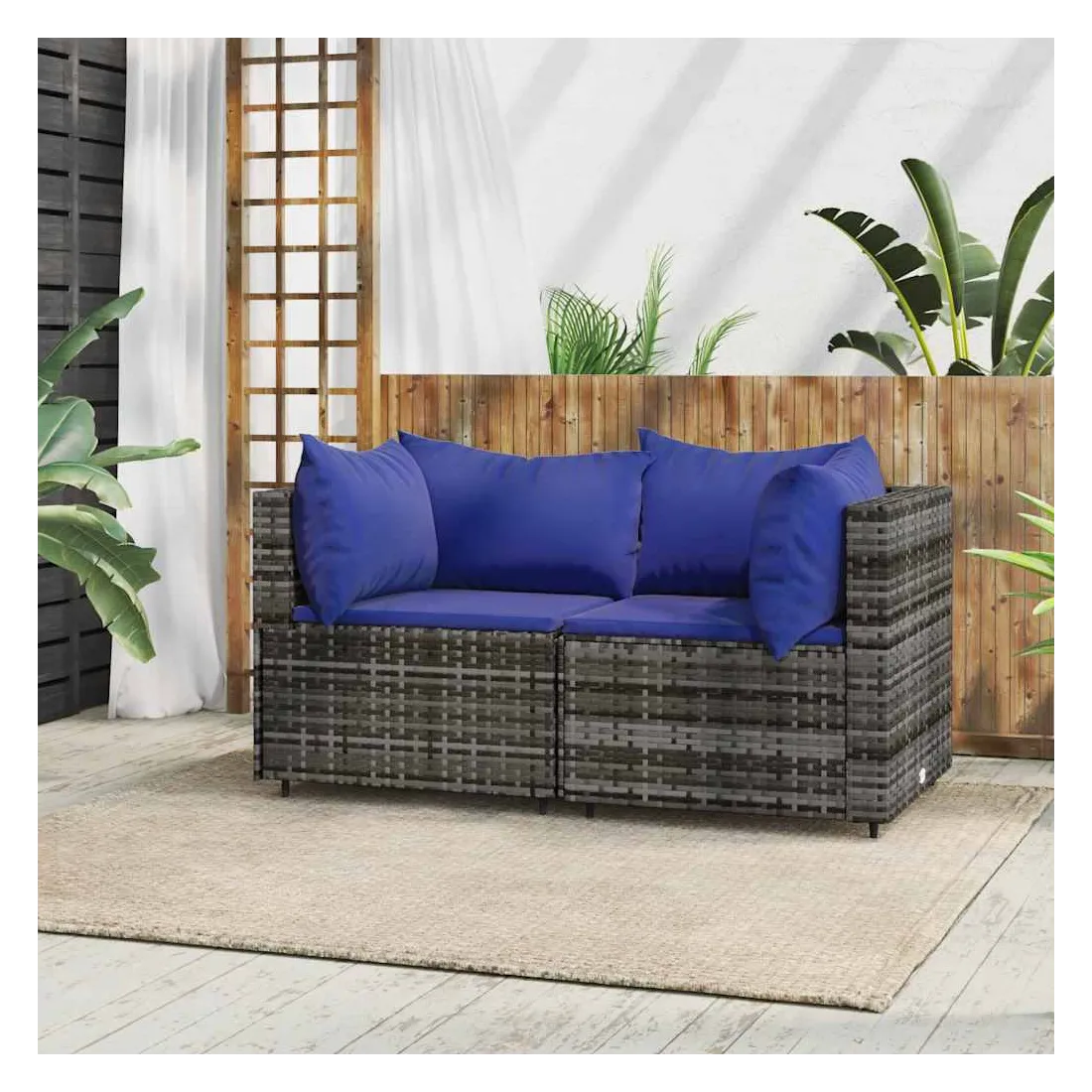Ces canapés d'angle de jardin tendances, au design élégant et contemporain, sont parfaits pour manger ou vous détendre dans votre jardin. Matériau résistant aux intempéries : la résine tressée, également connue sous le nom de rotin poly, résiste aux intempéries et est facile à nettoyer. Elle reste belle à l'extérieur pendant une longue période. Elle offre une excellente qualité, commodité et un aspect esthétique.Cadre robuste : le cadre en acier enduit de poudre rend le canapé robuste et stable pour une utilisation quotidienne à l'extérieur.Design modulaire : le canapé d'extérieur est flexible et facile à déplacer, vous pouvez donc le combiner avec d'autres segments modulaires de la boutique en ligne pour créer vos propres configurations de salon de jardin !Expérience d'assise confortable : le dossier ajoute un confort d'assise supplémentaire au canapé de jardin. De plus, les coussins bien rembourrés offrent du confort pendant votre temps d'assise. Bon à savoir :Pour faciliter au maximum le montage, chaque produit est livré avec des instructions. Remarque :Le produit est conçu pour une utilisation à l'extérieur uniquement. Ne le rangez pas à l'intérieur.Pour que vos meubles d'extérieur restent beaux, nous vous recommandons de les protéger avec une housse imperméable.