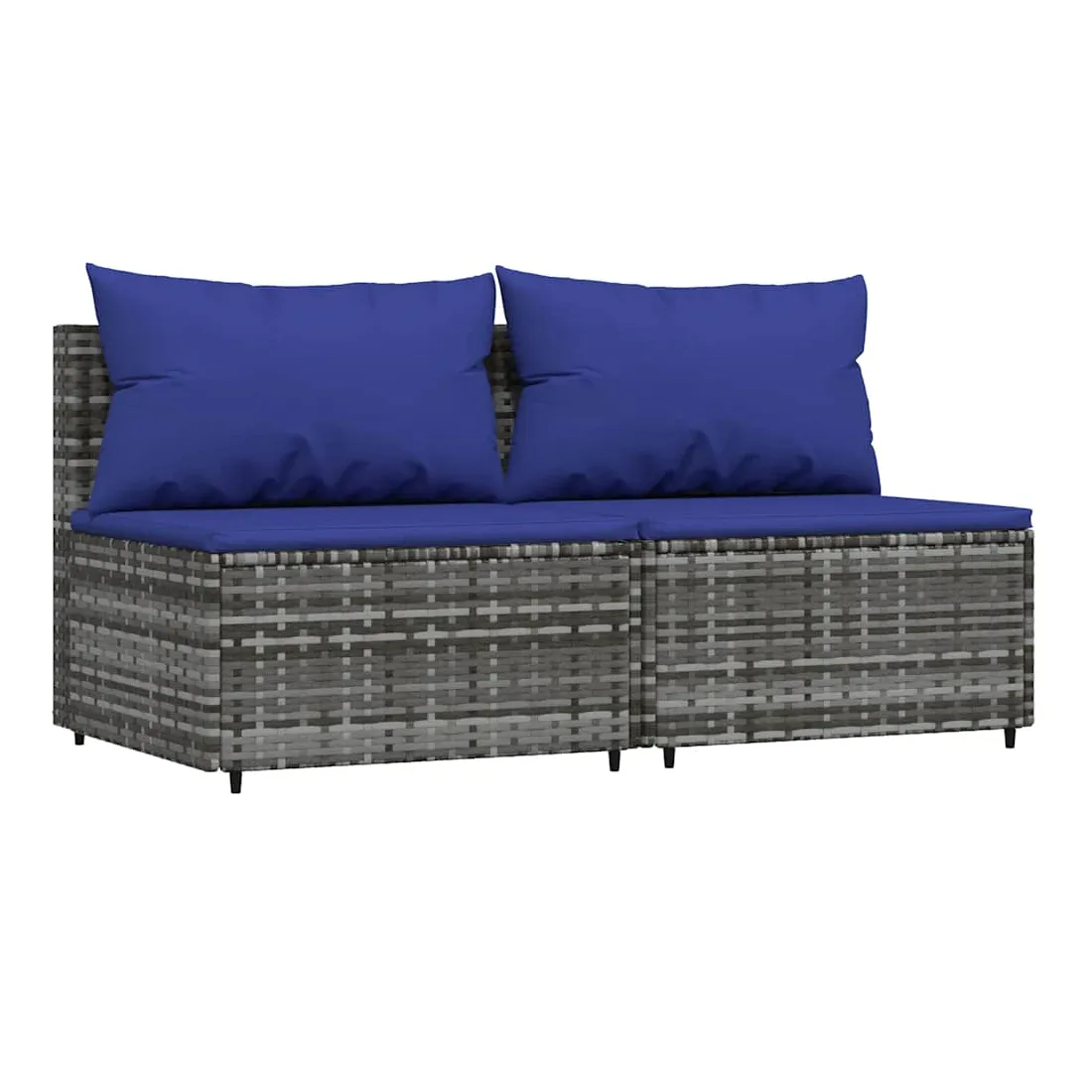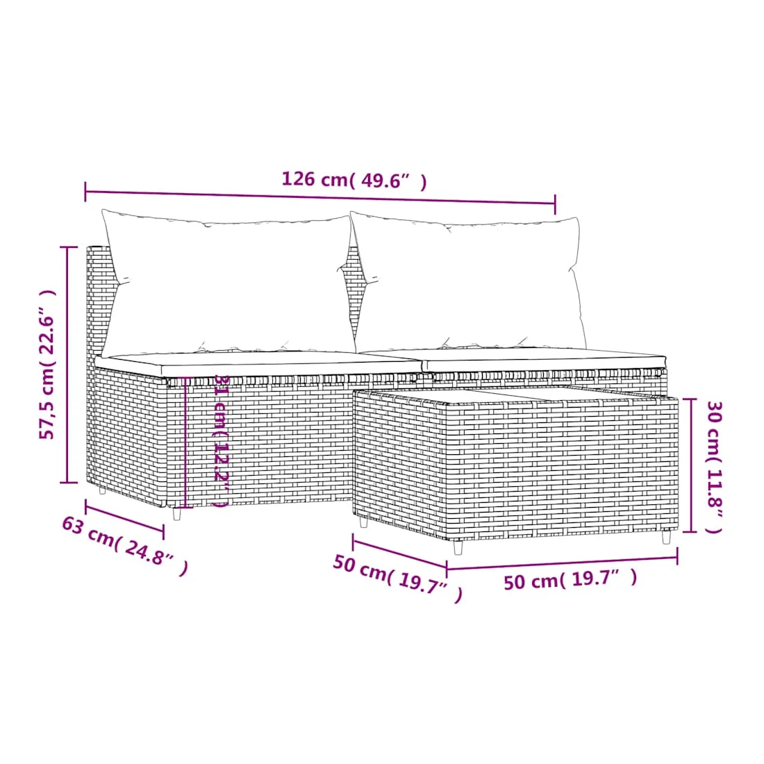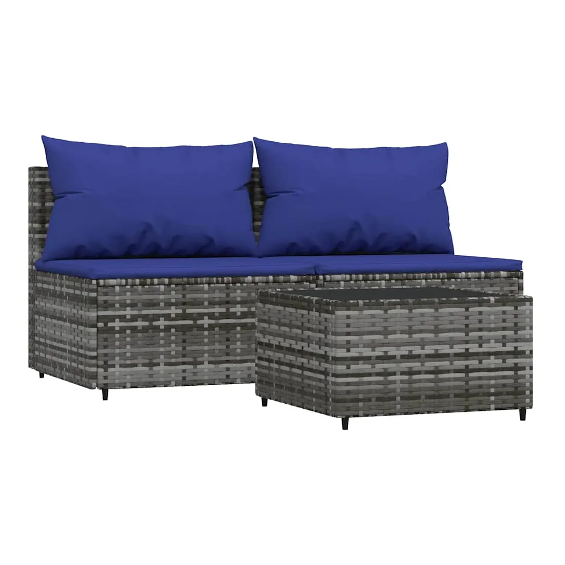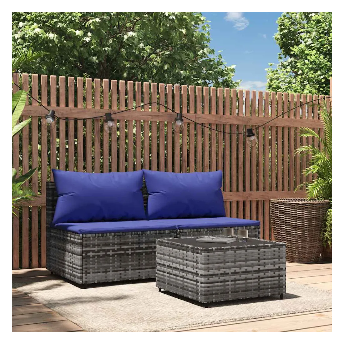 Salon de jardin 3 pcs avec coussins Gris Résine tressée