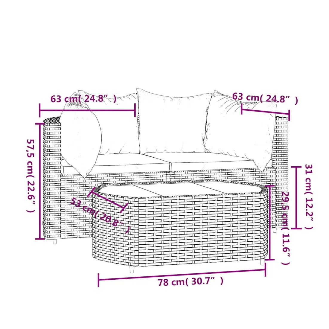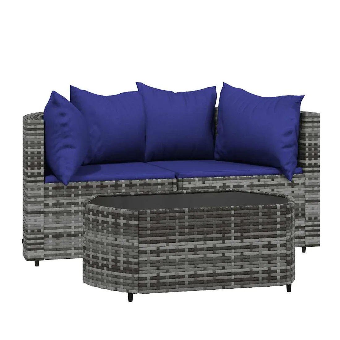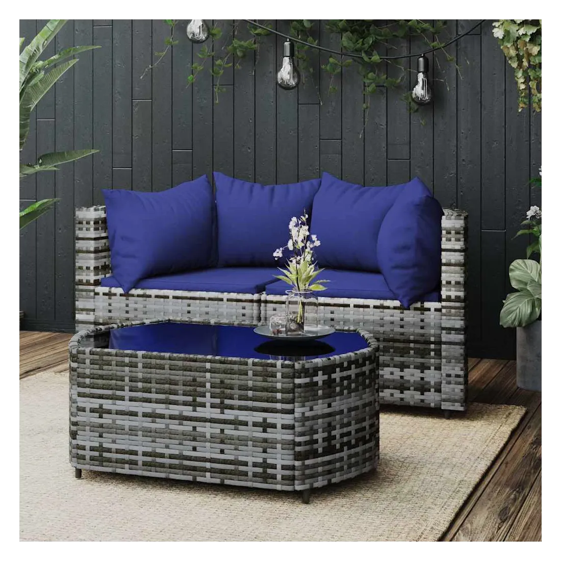 Cet ensemble de salon de jardin tendance, au design élégant et contemporain, est un excellent choix pour manger ou vous détendre dans votre jardin. Matériau résistant aux intempéries : la résine tressée, également connue sous le nom de rotin poly, résiste aux intempéries et est facile à nettoyer. Elle reste belle à l'extérieur pendant une longue période. Elle offre une excellente qualité, commodité et un aspect esthétique.Cadre robuste : les cadres en acier enduit de poudre rendent l'ensemble de salon d'extérieur robuste et stable pour une utilisation quotidienne à l'extérieur.Dessus de table pratique : le dessus lisse de la table de jardin est en verre trempé, facile à nettoyer avec un chiffon humide. De plus, le dessus robuste est parfait pour placer des repas, des boissons et d'autres objets décoratifs.Conception modulaire : l'ensemble de salon de jardin est flexible et facile à déplacer, vous pouvez donc le combiner avec d'autres segments modulaires dans la boutique en ligne pour créer vos propres configurations d'ensemble de salon de jardin !Expérience d'assise confortable : le dossier ajoute un confort d'assise supplémentaire au canapé de jardin. De plus, les coussins bien rembourrés offrent du confort pendant votre temps d'assise. Bon à savoir :Pour faciliter au maximum le montage, chaque produit est livré avec des instructions. Remarque :Le produit est conçu pour une utilisation à l'extérieur uniquement. Ne le rangez pas à l'intérieur.Pour que vos meubles d'extérieur restent beaux, nous vous recommandons de les protéger avec une housse imperméable.