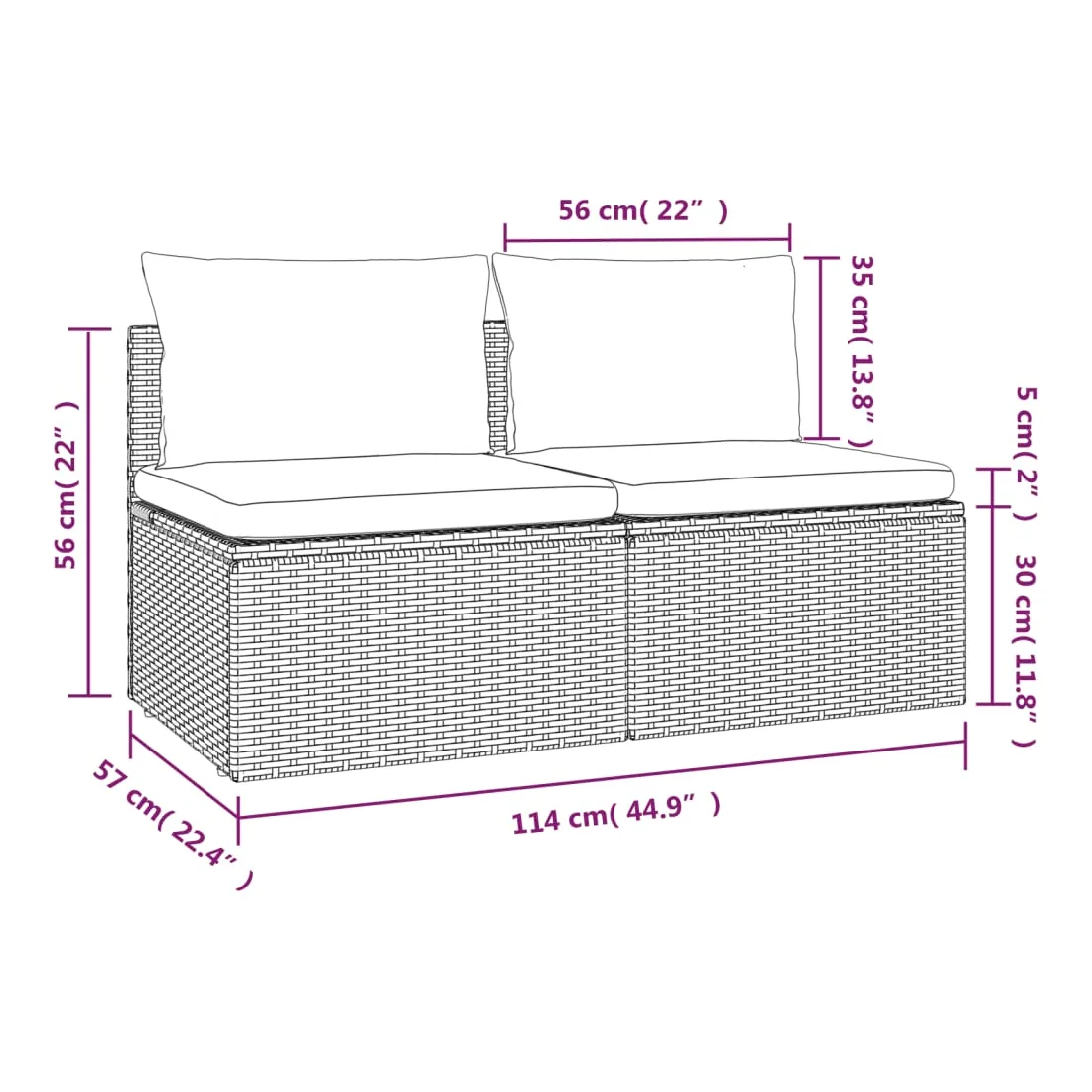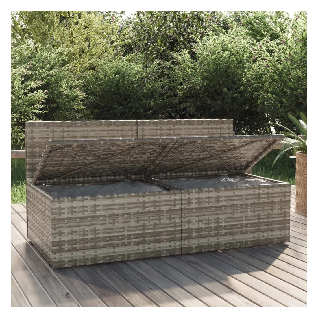 vidaXLCe canapé de jardin 2 places tendance, au design élégant et contemporain, est un excellent choix pour manger ou vous détendre dans votre jardin. Matériau durable : la résine tressée est un matériau de résistance exceptionnelle et durable dans différentes conditions météorologiques. Elle nécessite peu d'entretien. Le cadre en acier assure la solidité et la stabilité.Expérience de siège confortable : des coussins et des oreillers supplémentaires sont inclus pour votre confort.Grand espace de rangement : l'espace de rangement facilite l'organisation des articles. Il convient au rangement de vos coussins, oreillers, couvertures, jouets et autres objets.Sac imperméable : le sac imperméable doté d'une couverture, d'une fermeture à glissière et d'attaches auto-agrippantes peut garder vos affaires en sécurité et protéger vos articles de l'humidité. Remarque :Afin de prolonger la durée de vie de votre mobilier d'extérieur, nous vous recommandons de le protéger avec une housse imperméable.Chaque produit est livré avec un manuel de montage dans la boîte pour un montage facile.