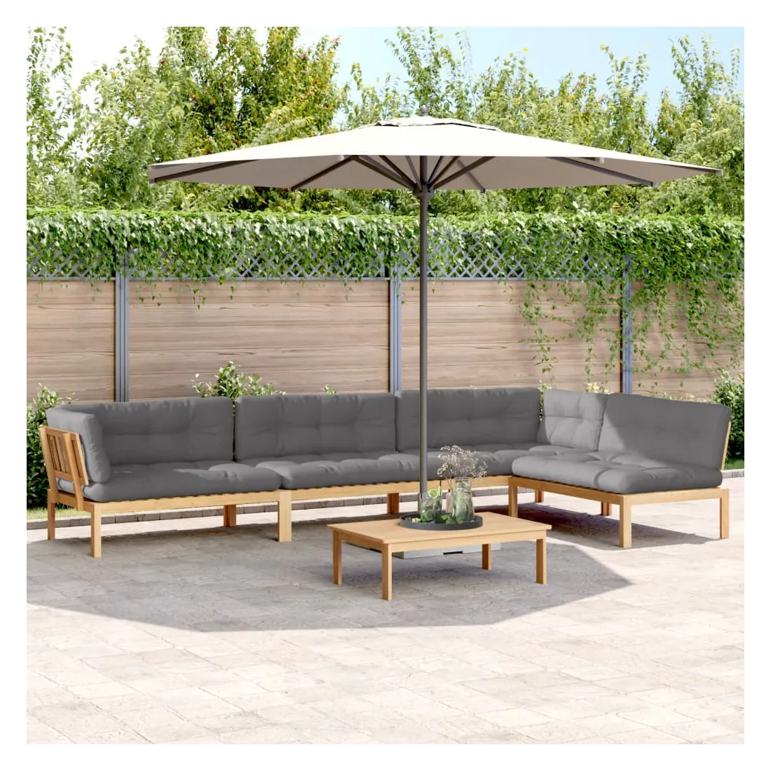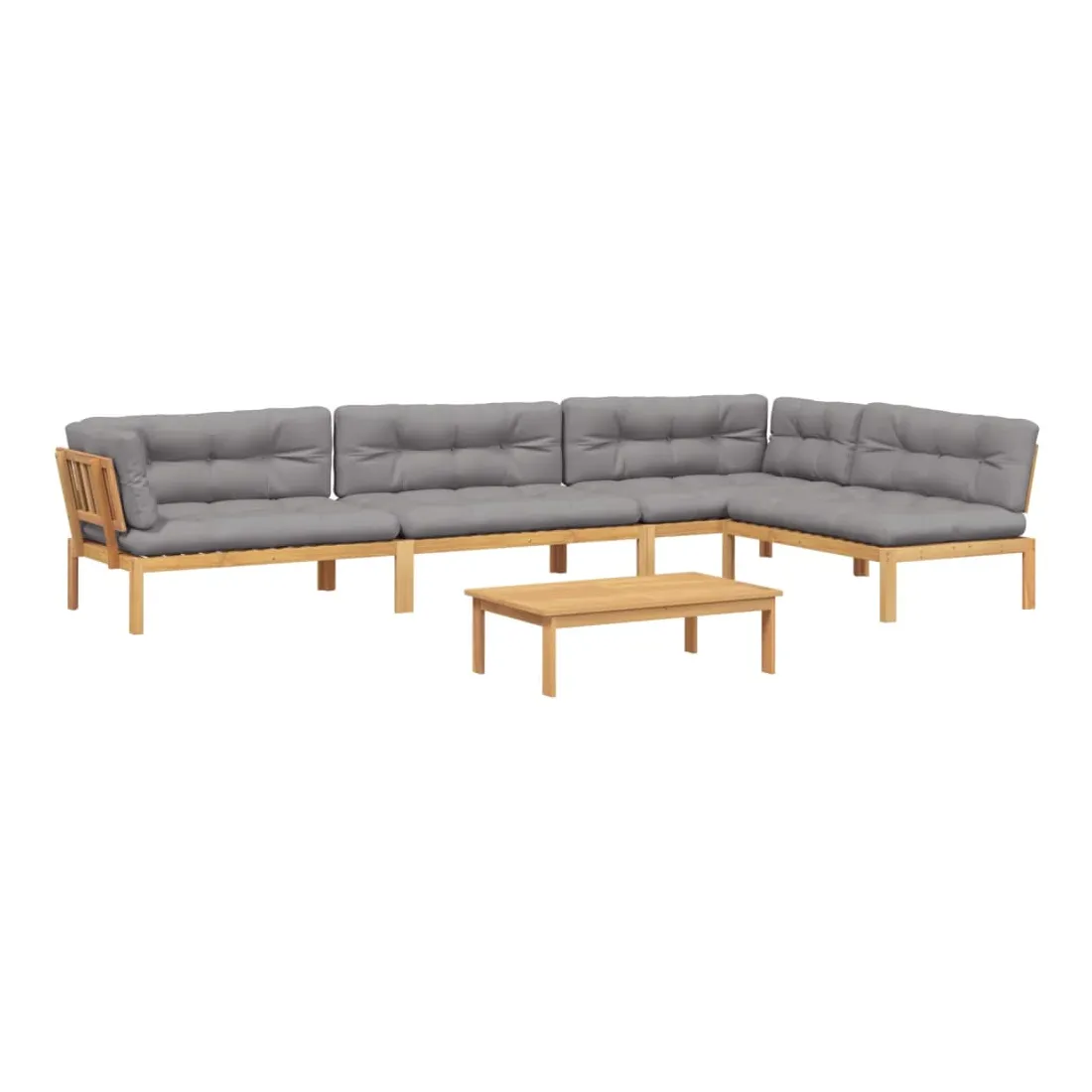vidaXLCet ensemble de canapés palette en bois comprend 1 table et 4 canapés. C'est un excellent choix pour une utilisation relaxante en extérieur. Matériau durable : le bois d'acacia massif est un matériau naturel magnifique. Le bois d'acacia est un bois dur tropical, qui est dense, robuste et durable. Sa finition à l'huile permet à cet ensemble de meubles d'être utilisée à l'extérieur.Expérience d'assise confortable : le dossier ajoute un confort d'assise supplémentaire pour le canapé d'extérieur. Ce mobilier d'extérieur, doté d'un coussin épais, offre une expérience d'assise confortable.Design modulaire : le canapé sectionnel est flexible et facile à déplacer. Vous pouvez le combiner avec d'autres segments modulaires disponibles dans le menu déroulant pour créer vos propres configurations de salon de jardin ! Bon à savoir :Pour que vos meubles d'extérieur restent beaux, nous vous recommandons de les protéger avec une housse imperméable.