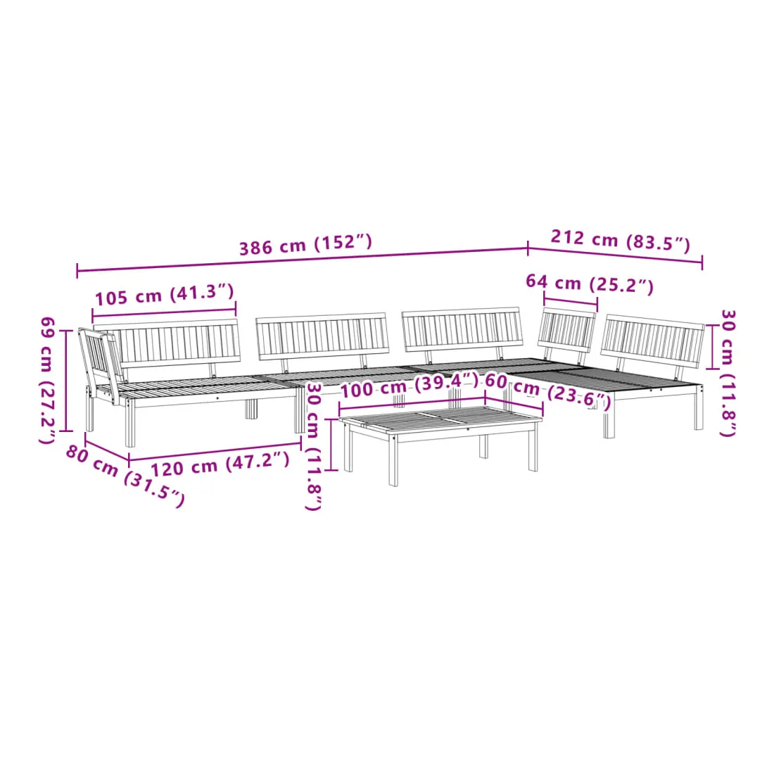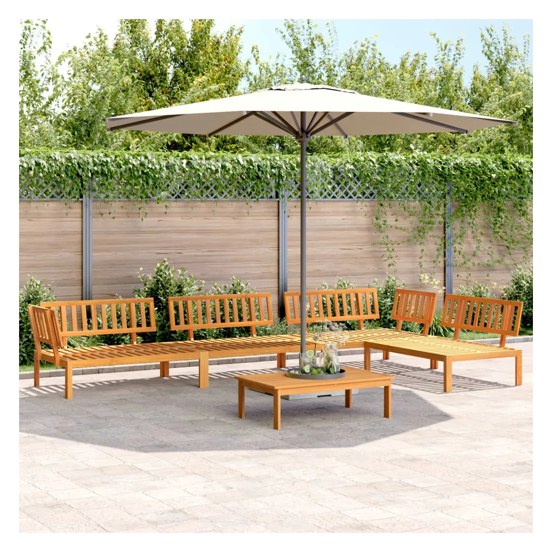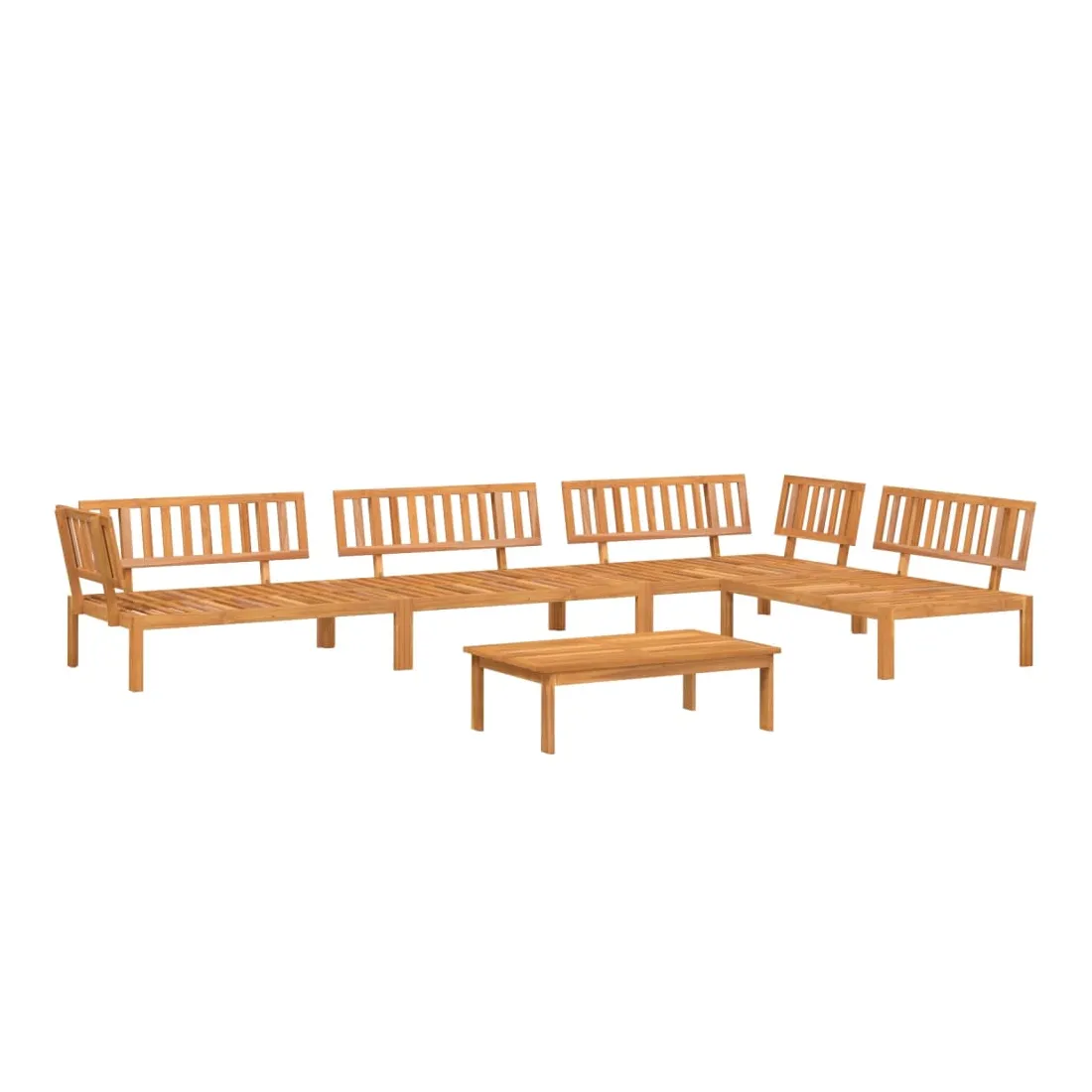 Cet ensemble de canapés en palettes en bois au design à lattes sera un excellent ajout à votre jardin, patio ou terrasse pour profiter d’un moment agréable en famille ou entre amis. Matériau durable : le bois d'acacia massif est un matériau naturel magnifique. Le bois d'acacia un bois dur tropical, qui est dense, robuste et durable.Dessus stable et facile à nettoyer : cette table de jardin a un dessus en bois d'acacia robuste, durable et facile à nettoyer avec un chiffon humide.Bonne ventilation et prévention de l'accumulation d'eau : la conception à lattes favorise une circulation optimale de l'air et empêche efficacement l'accumulation d'eau, assurant ainsi une assise sèche et confortable.Conception modulaire : cet ensemble de meubles d'extérieur a une conception modulaire, ce qui le rend complètement flexible et facile à déplacer, afin que vous puissiez créer un agencement de meubles d'extérieur personnalisé. Bon à savoir :Pour que vos meubles d'extérieur restent beaux, nous vous recommandons de les protéger avec une housse imperméable.Le coussin n'est pas inclus avec ce canapé palette. Nous offrons un coussin de palette standard de 120x80 cm. Vous pouvez consulter notre boutique pour trouver un coussin assorti.