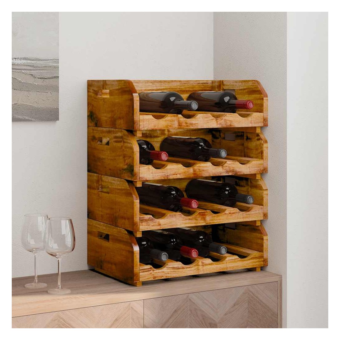 Cet ensemble de 4 casiers à bouteilles est parfait pour les amateurs de vin et ajoutera une touche de charme rustique à tout intérieur. Chaque casier peut contenir 4 bouteilles. Fabriquée en bois d'acajou massif, cet ensemble de casiers à bouteilles en bois massif est extrêmement durable et robuste. L'acajou est un bois dur tropical qui se distingue par sa beauté, sa durabilité et sa couleur. Un savoir-faire spécial a été utilisé pour donner à cet article un aspect vintage, chaleureux et authentique. L'ensemble de casiers à bouteilles a un design simple mais intemporel. Grâce aux poignées intégrées, ces porte-bouteilles sont faciles à déplacer. Ils peuvent être utilisés séparément ou empilés pour former un casier à bouteille à plusieurs niveaux. Cet ensemble de casiers à bouteilles est fait à la main avec le plus grand soin. La livraison inclut 4 casiers à bouteilles. Remarque importante : la couleur peut varier d'une pièce à l'autre, ce qui rend chacun de nos casiers à bouteilles unique. La livraison est aléatoire, ce qui garantit l'exclusivité et l'individualité de votre produit.