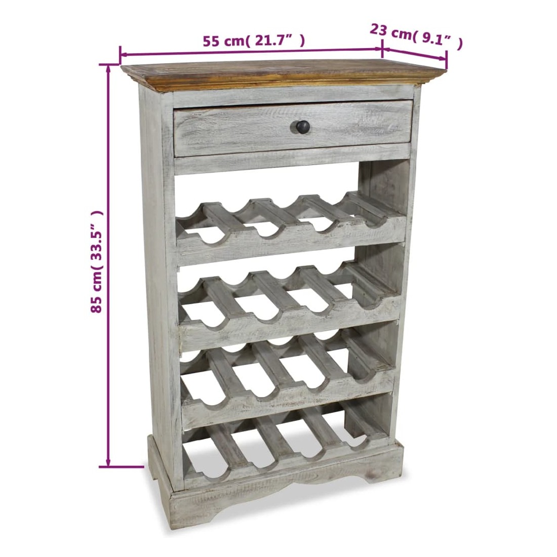 Ce casier à bouteilles en bois de style antique sera un accessoire intemporel pour votre maison et parfait pour les collectionneurs de vin. Fabriquée en bois d'acajou massif, ce casier à bouteilles en bois massif est extrêmement durable et robuste. L'acajou est un bois dur tropical qui se distingue par sa beauté, sa durabilité et sa couleur. Un savoir-faire spécial a été utilisé pour donner à cet article un aspect vintage, chaleureux et authentique. Chaque pièce de ce meuble est unique et légèrement différente de la suivante. Les signes d'usure et l'artisanat de cette cave à vin entièrement fait à la main donnent à chaque pièce un look unique et ajouter à son style vintage spectaculaire. Chaque étape du processus est réalisée avec le plus grand soin. Son design classique sera attrayant dans n'importe quelle pièce. Remarque importante : les couleurs peuvent varier d'une pièce à l'autre, rendant chacun de nos casiers à bouteilles uniques. La livraison est aléatoire, ce qui garantit l'exclusivité et l'individualité de votre produit.