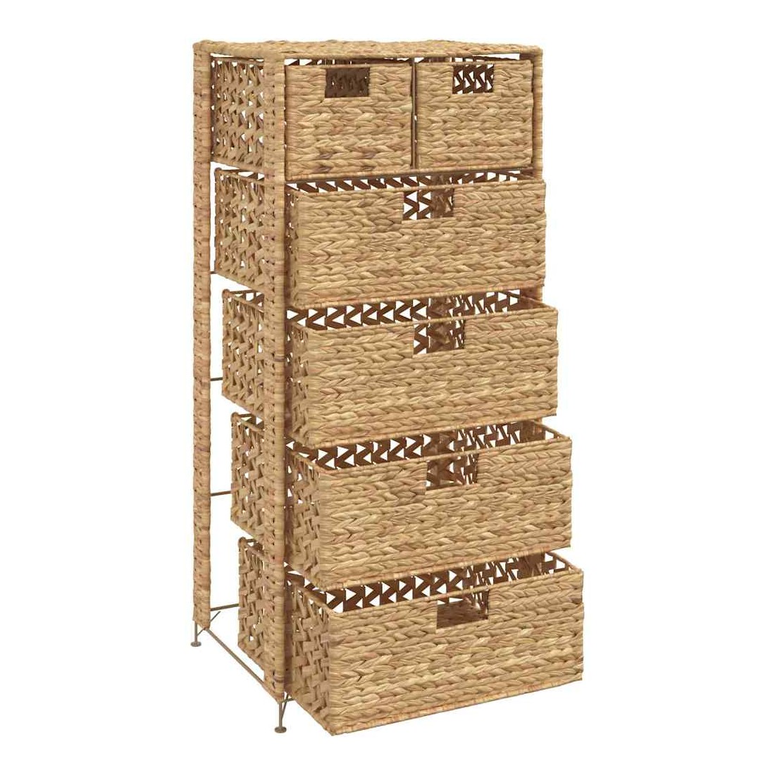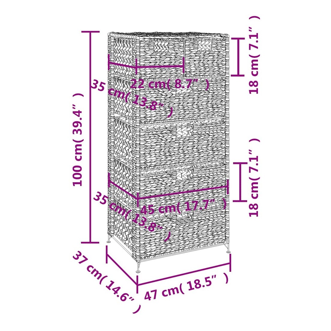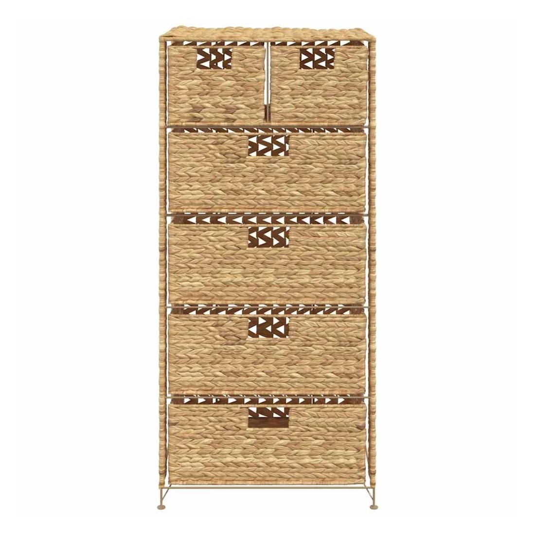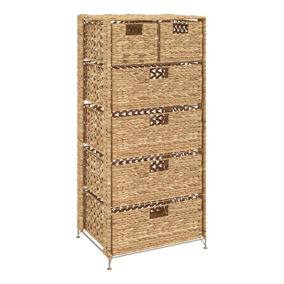 Cette armoire à tiroirs pratique est une solution de rangement parfaite qui ne prend pas trop de place. Elle a 6 tiroirs pour fournir un grand espace de stockage pour toutes sortes d'objets. L'unité de stockage se compose d'un cadre en métal et de jacinthe d'eau, qui la rendent vigoureuse et durable. Le style tissé attrayant ajoute au charme rustique de l'armoire.
