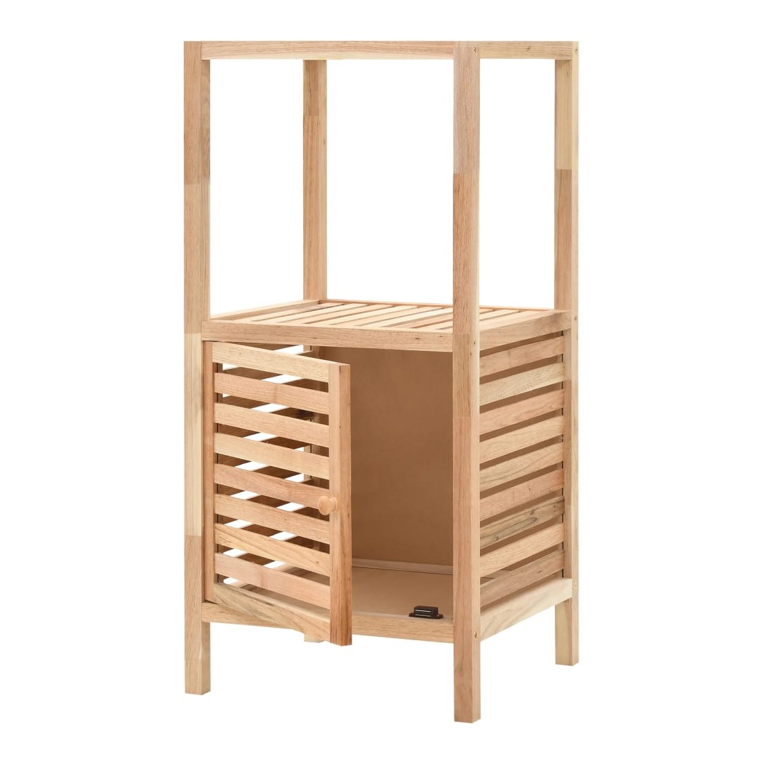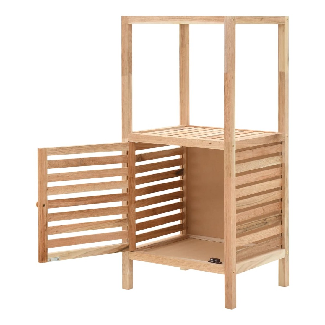 Apportez une touche de style naturel à votre salle de bain ou à d'autres pièces avec notre armoire de rangement en bois ! L'armoire de rangement, en bois de noyer massif et contreplaqué, est stable, durable et esthétique. L'étagère de rangement à 2 niveaux est équipée d'une armoire avec porte en lattes pour ranger et aérer vos objets. Cette armoire de rangement en bois pour salle de bain s'adapte parfaitement à votre décoration intérieure et constitue une solution de rangement pratique. L'armoire de rangement est facile à assembler. Remarque : le bois est un produit naturel, les couleurs peuvent donc varier d'un lot à l'autre ; la livraison est aléatoire.