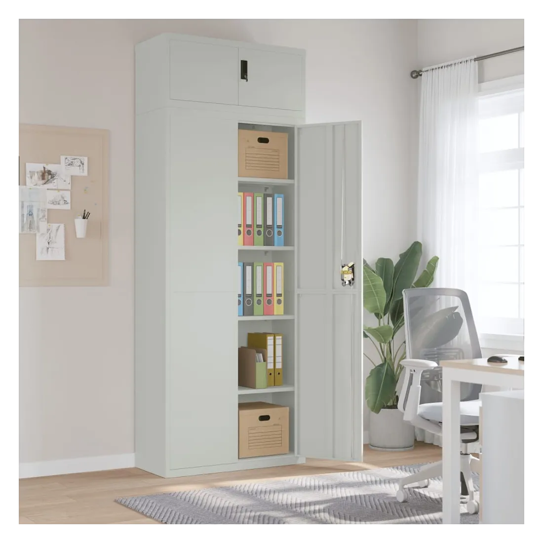 Ce classeur, au design simple mais élégant, sera un excellent choix pour garder vos dossiers et autres fournitures de bureau bien organisés. Matériau durable : l’acier est un matériau exceptionnellement dur et résistant. Il offre robustesse et stabilité. Le revêtement en poudre sur la surface de l'acier crée une couche protectrice contre la rouille, la corrosion et l'usure. Fabriqué en acier enduit de poudre, le classeur est également facile à nettoyer et à entretenir.Étagères réglables : l'armoire de rangement comprend 4 étagères réglables, vous permettant de trier soigneusement vos fichiers en différentes catégories.Grand espace de rangement : l'unité de rangement offre suffisamment d'espace pour stocker vos fichiers et autres fournitures de bureau.Système verrouillable : la conception verrouillable garantit la sécurité des fichiers et des documents essentiels. Attention :Pour éviter qu'il ne soit renversé, ce produit doit être utilisé avec le dispositif de fixation au mur fourni.