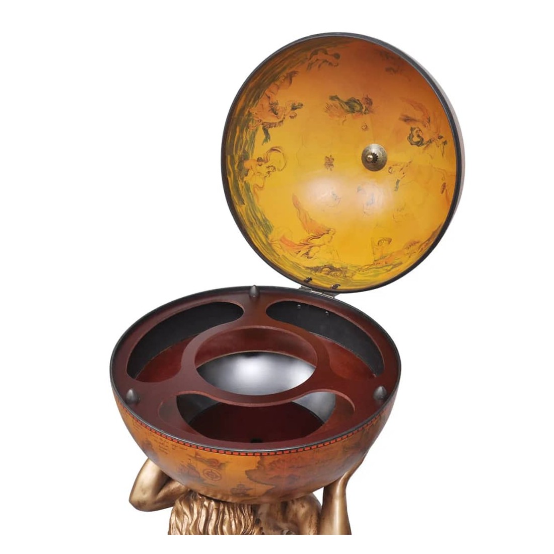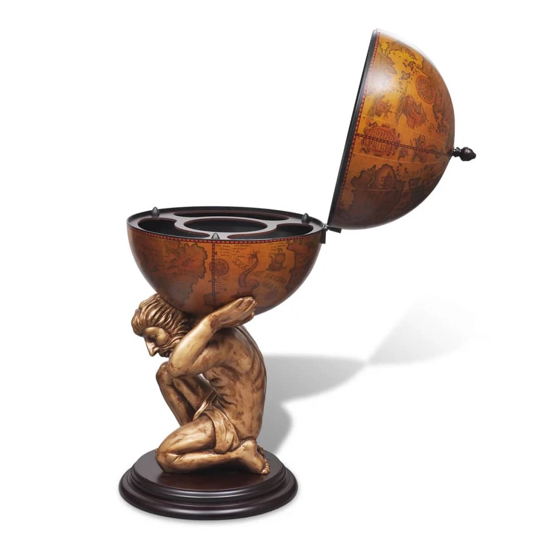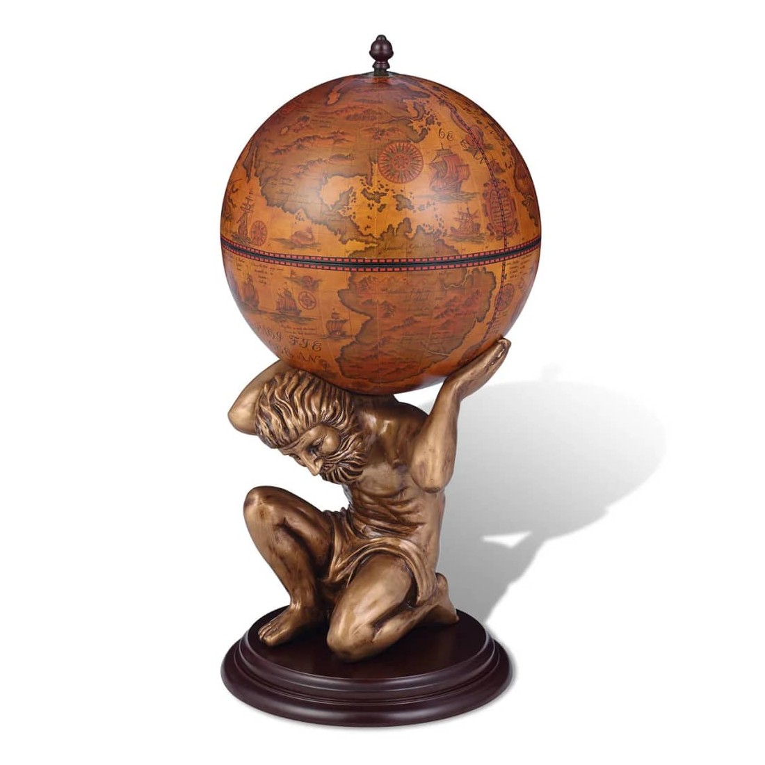 - Avec motif de carte ancienne et support sous la forme de la figure mythologique Atlas