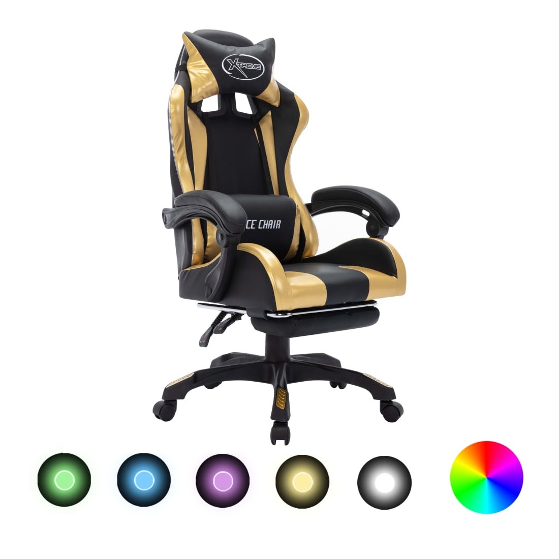 Fauteuil de jeux vidéo avec LED RVB Doré et noir Similicuir