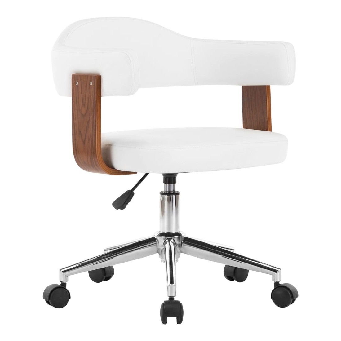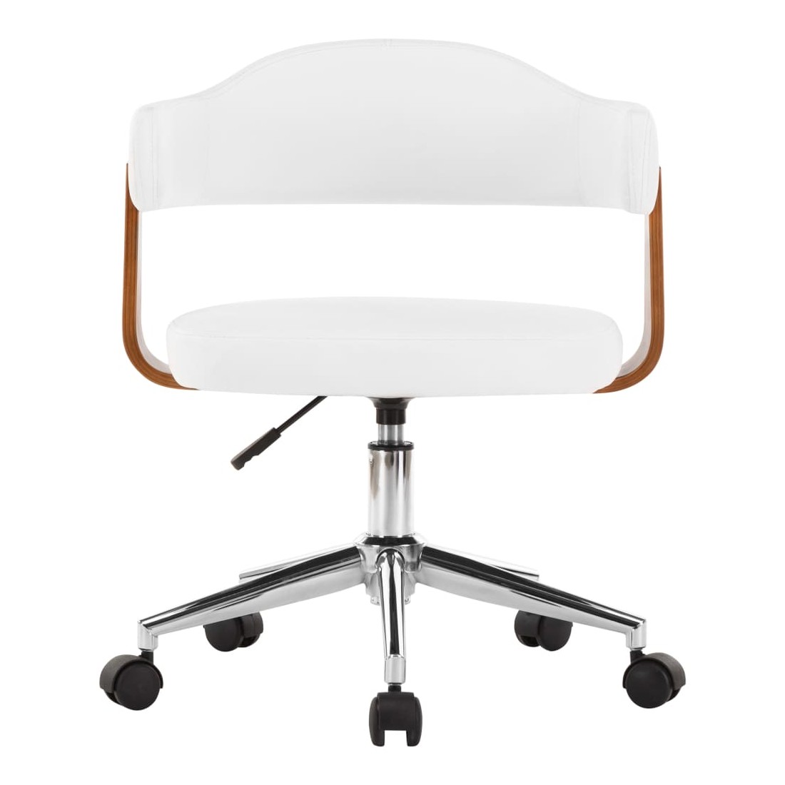 Chaise pivotante de bureau Blanc Bois courbé et similicuir